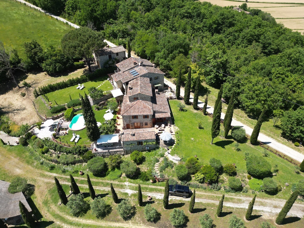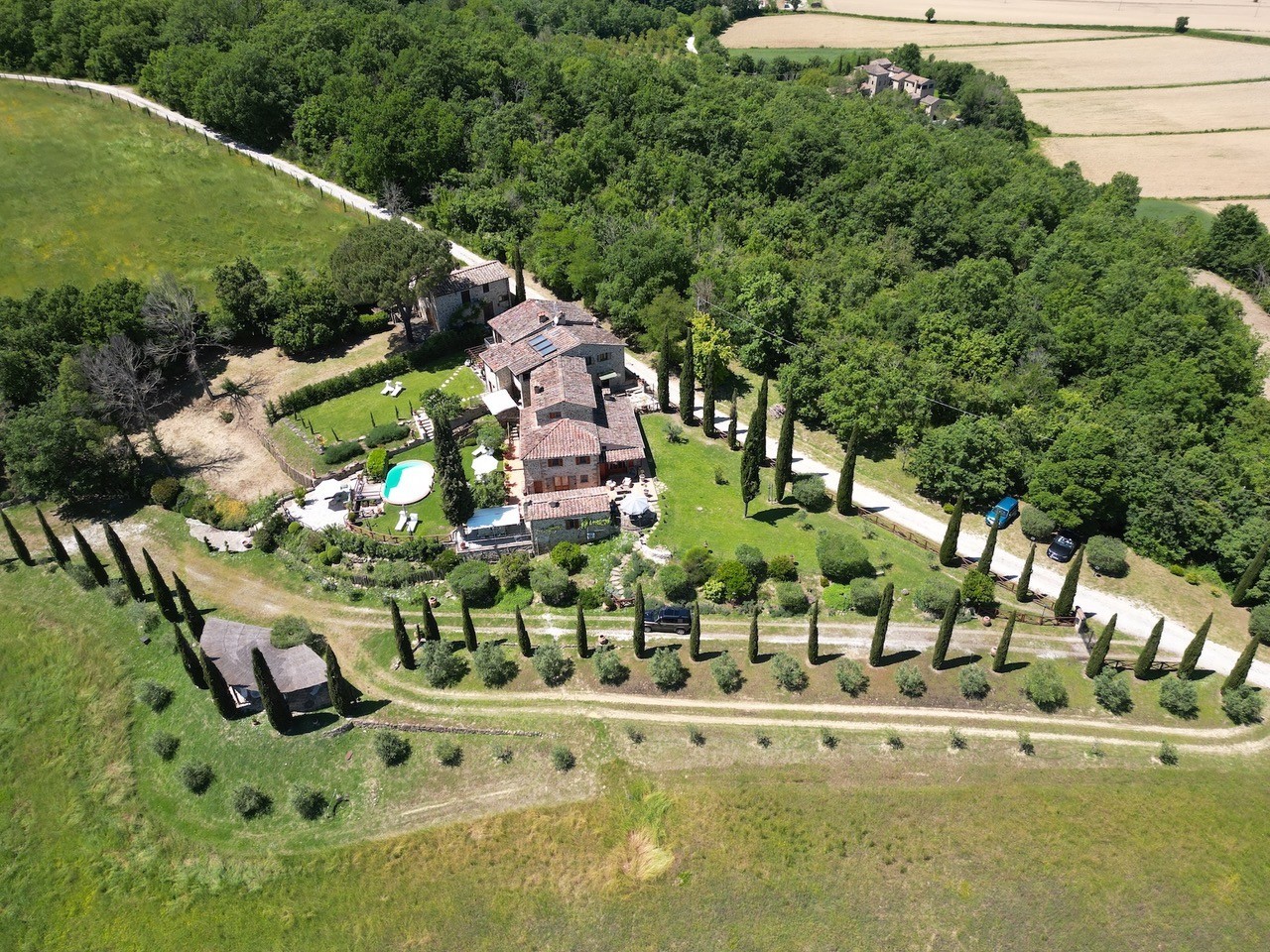 Propriedade panorâmica de luxo na Úmbria com villa, casas de hóspedes e olival