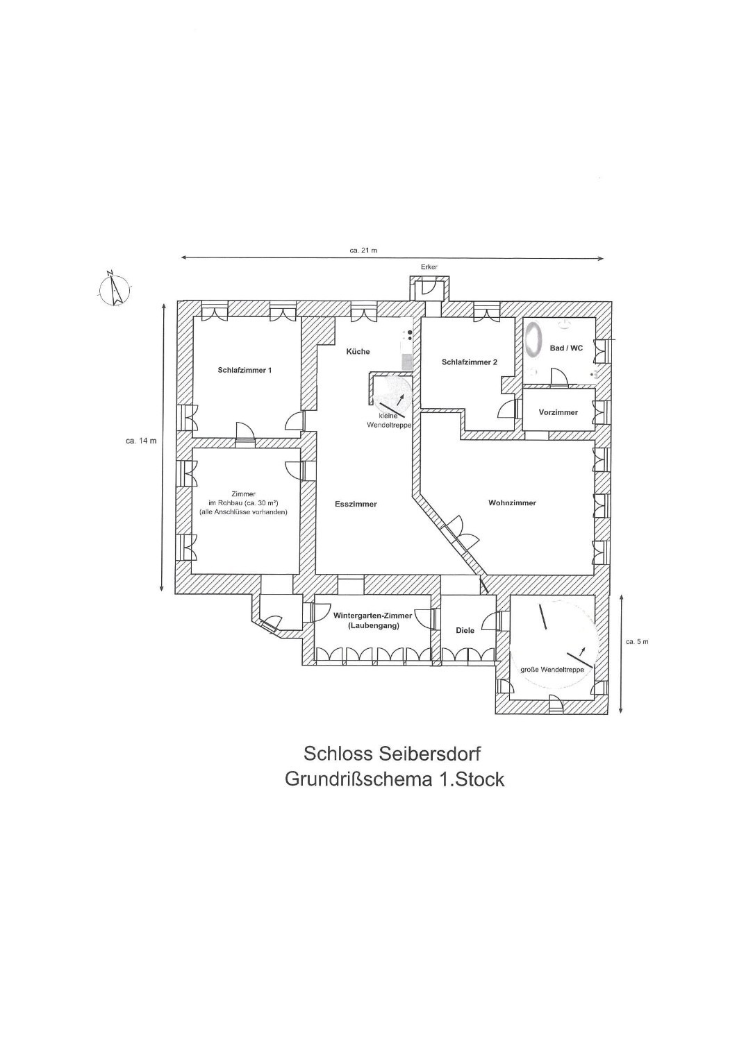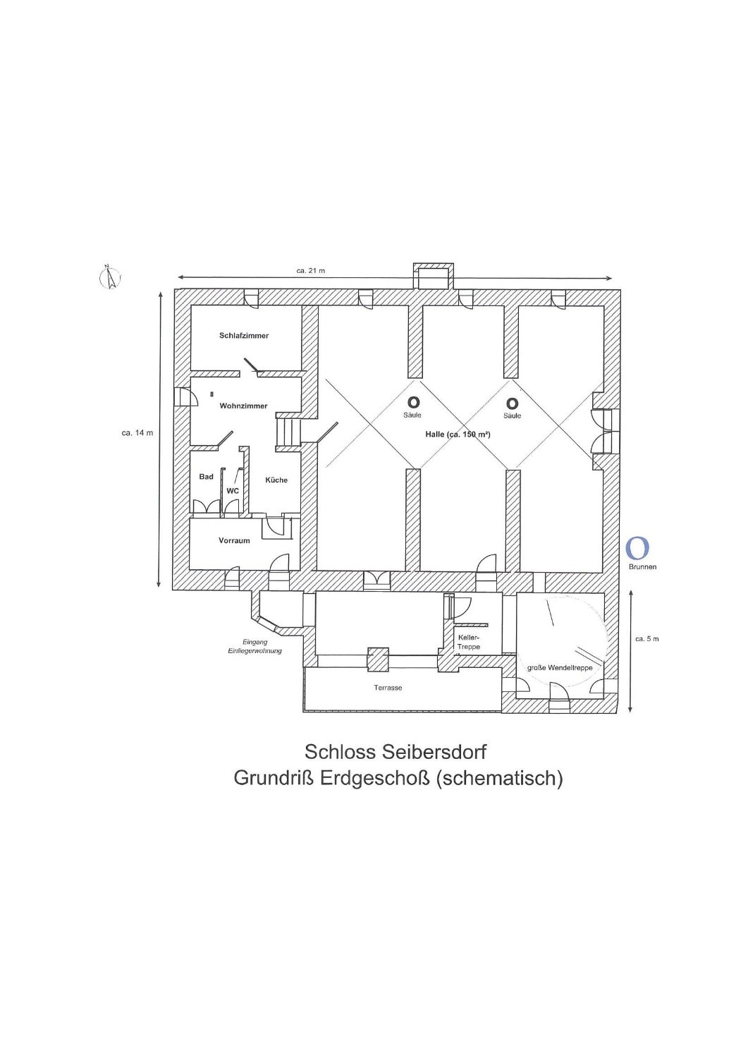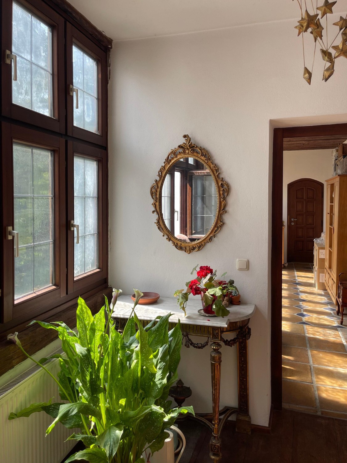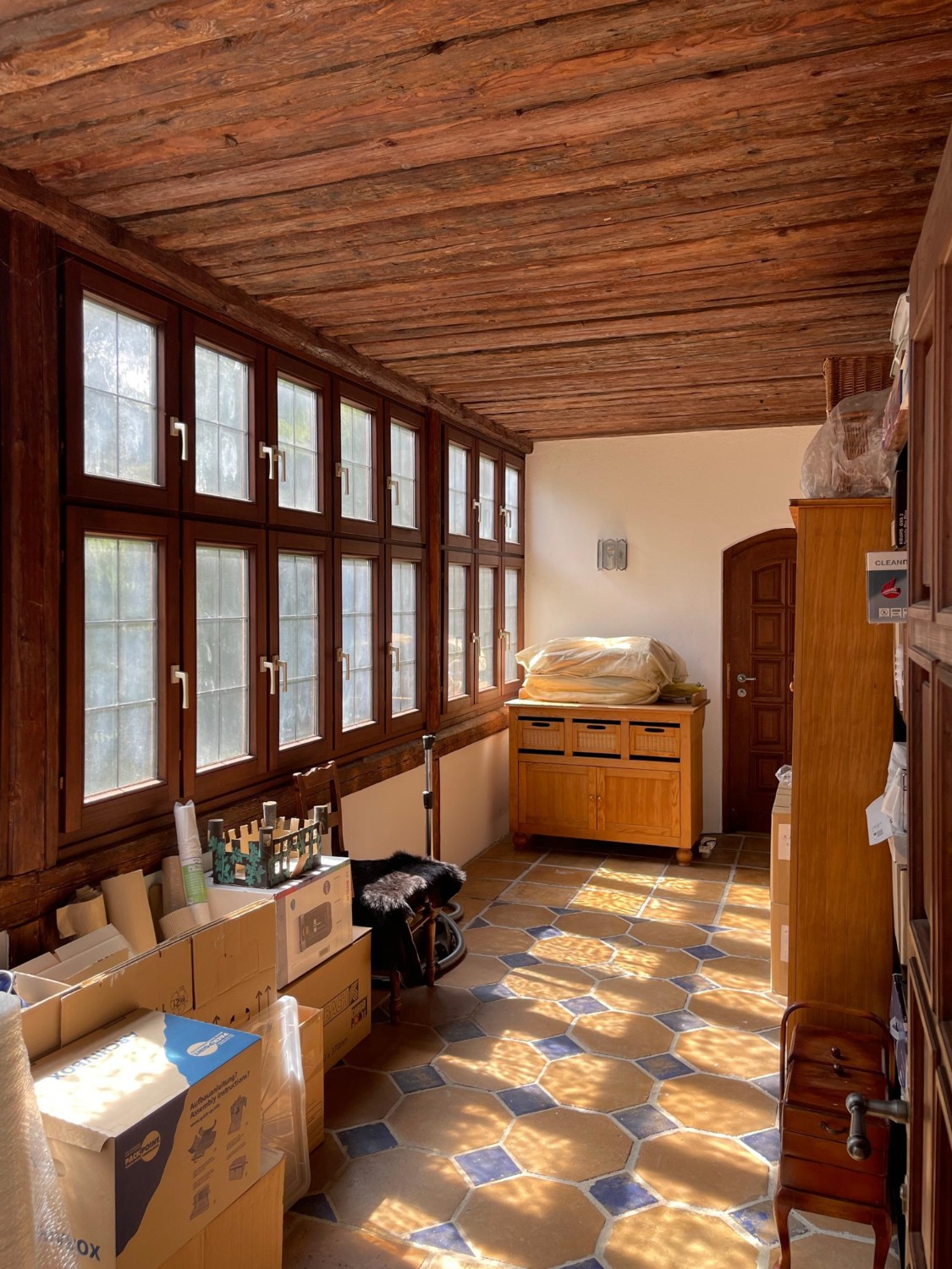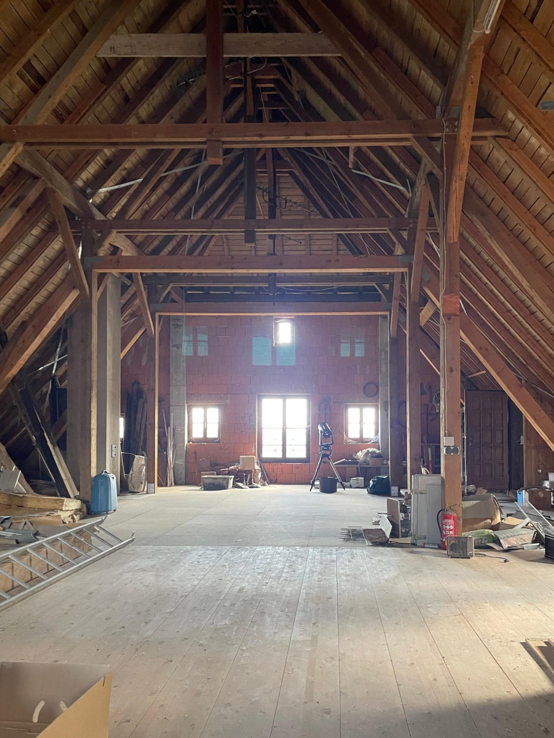 O edifício sólido e bem conservado, com paredes de até 1 m de espessura e tetos com vigas de madeira maciça e abóbadas, foi completamente renovado nos anos 1990. Restaurado segundo as plantas históricas, parcialmente reconstruído e estruturalmente reforçado, oferece hoje conforto moderno e de alto padrão: aquecimento central e por piso radiante, casas de banho, instalações elétricas, pisos, rebocos, telhado, escadas e garagem – tudo novo.