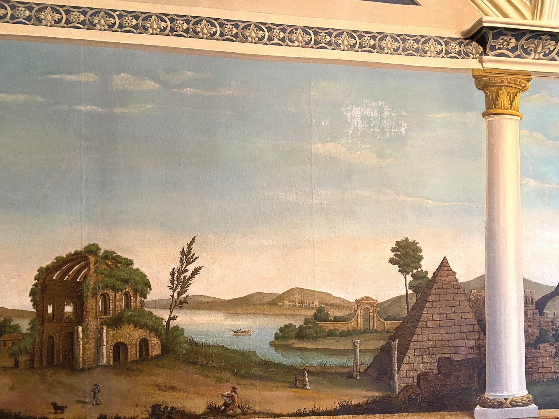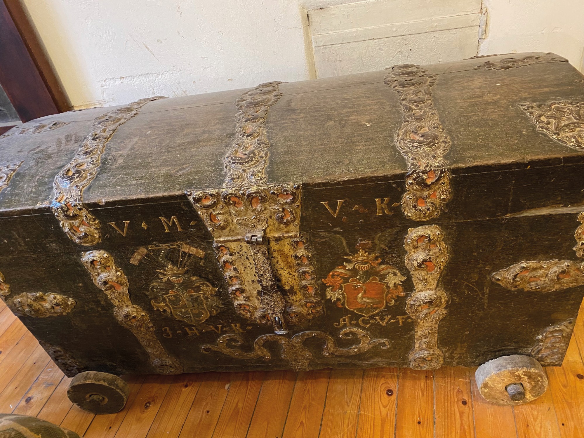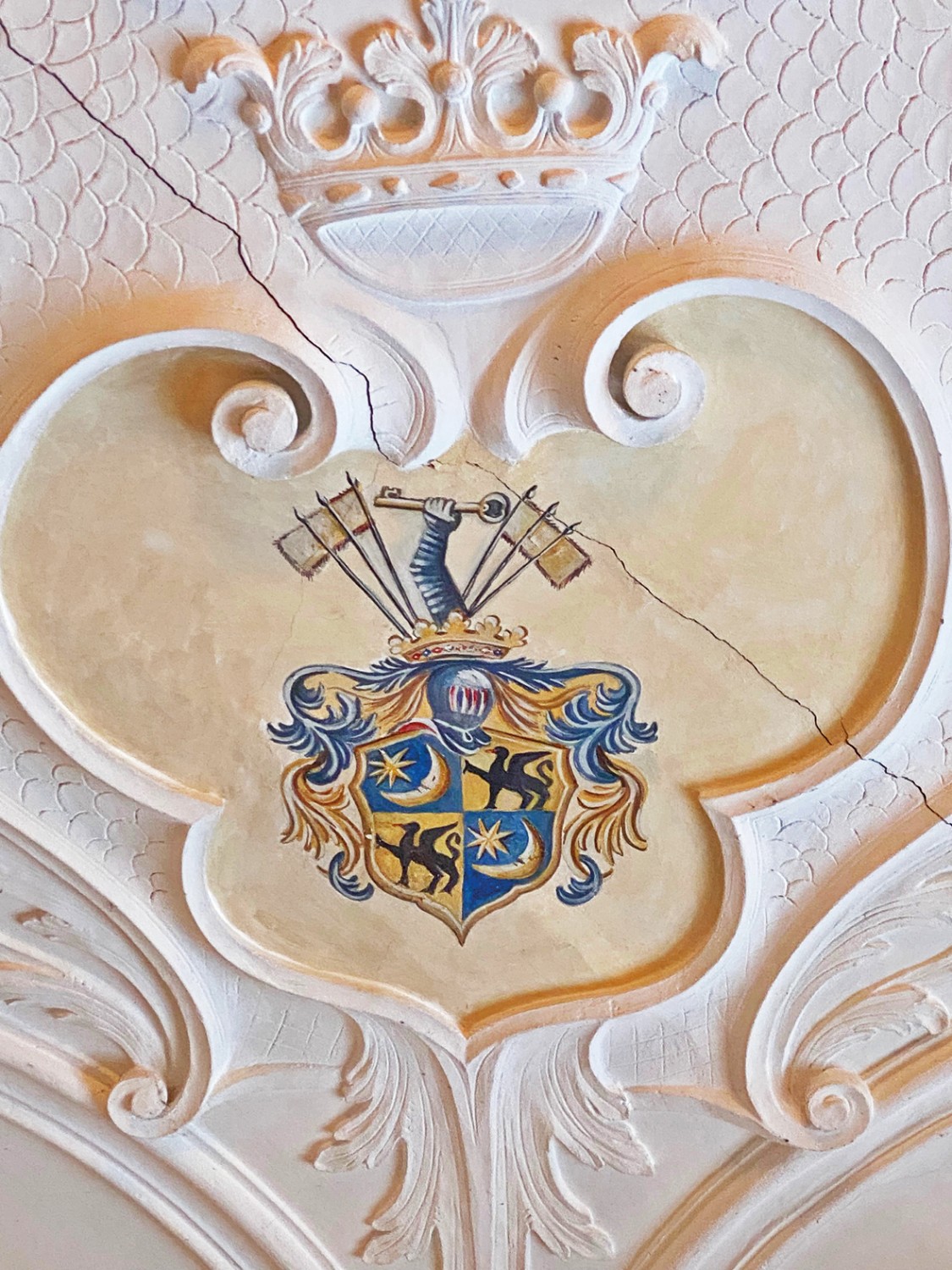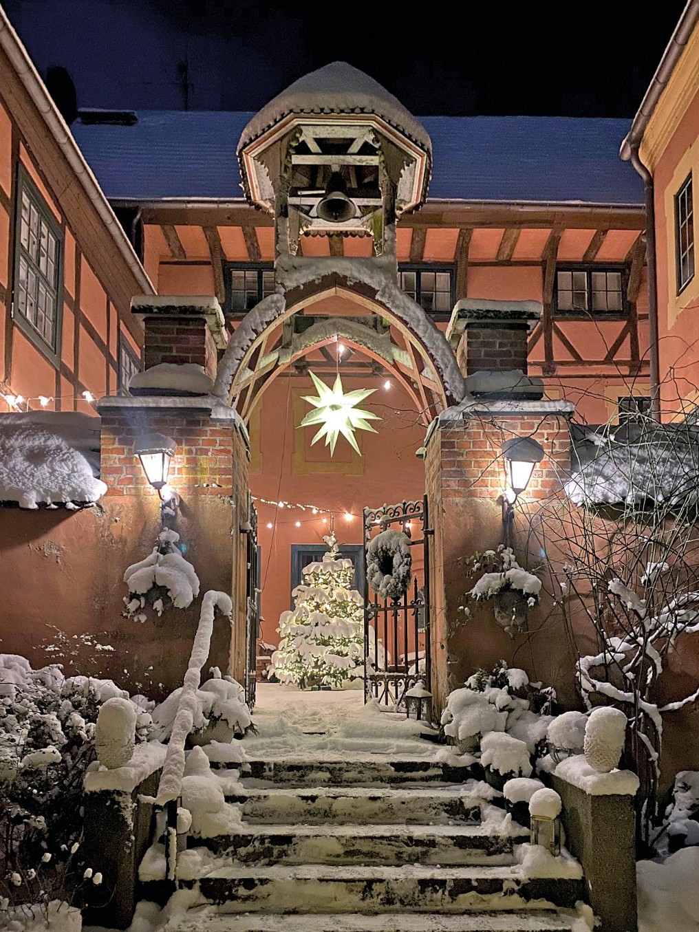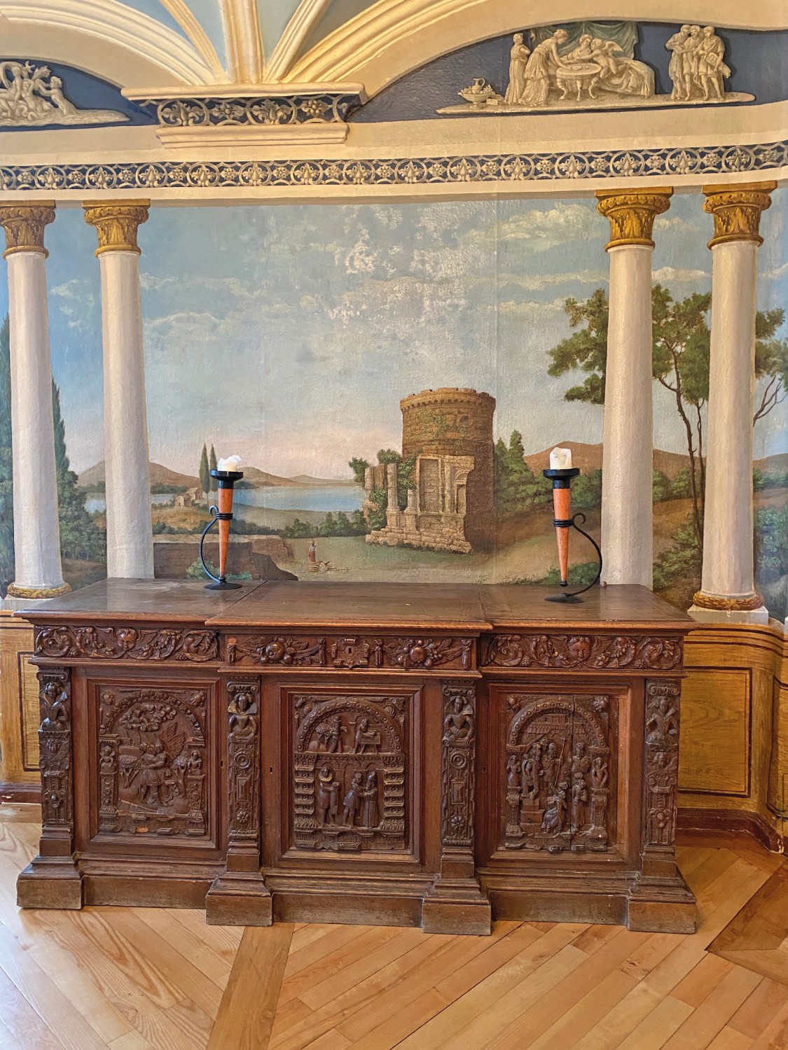 O edifício de tijolo com três pisos, assente sobre uma base de pedra de campo, alberga no rés do chão um salão histórico com teto em estuque do Renascimento italiano e pavimento em parquet de carvalho, uma capela com pinturas murais de paisagens arcádicas do século XVIII, uma sala dos cavaleiros, vários salões e uma cozinha profissional.