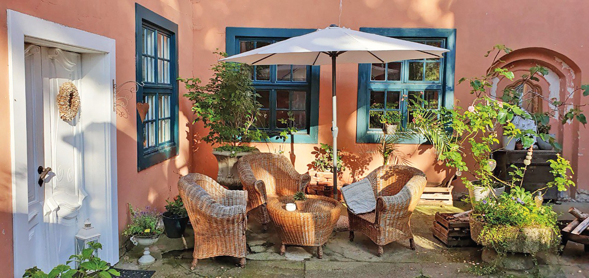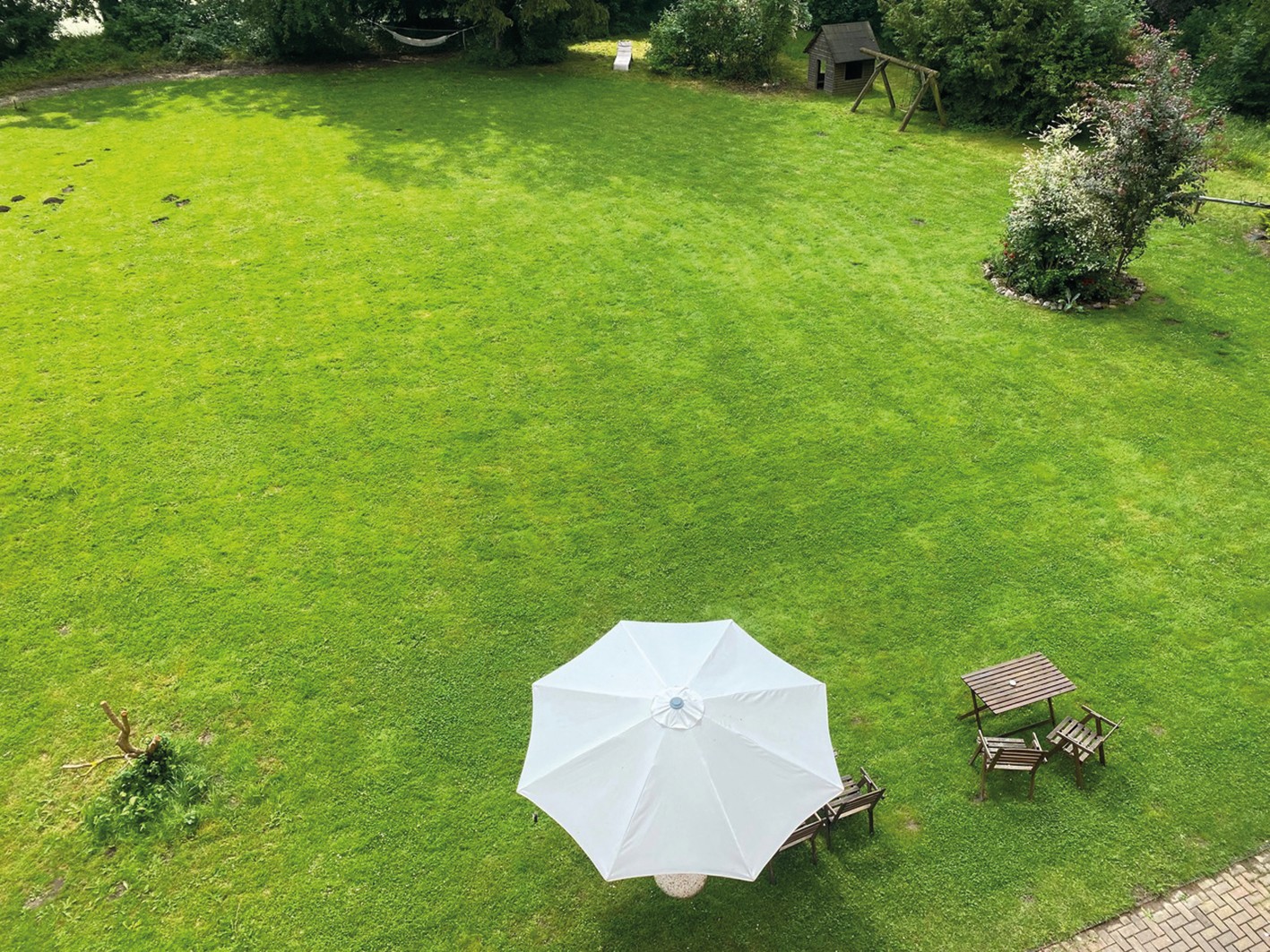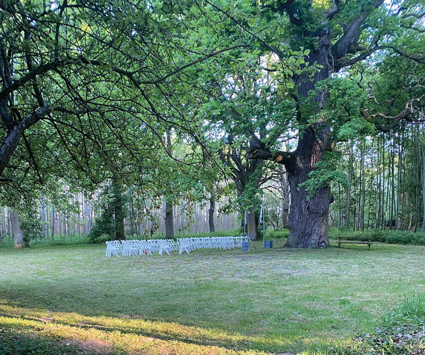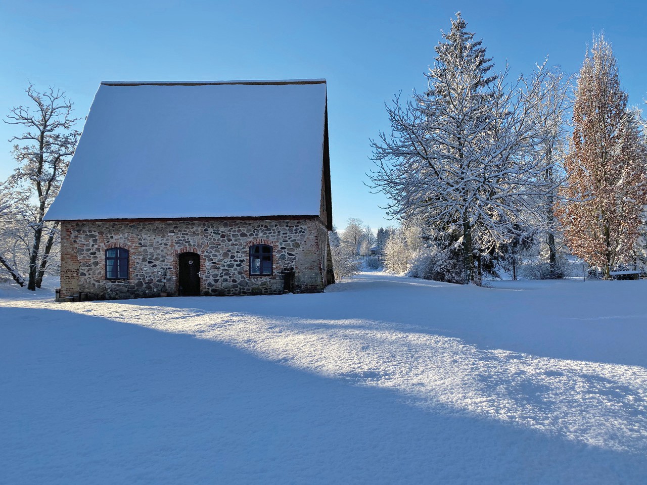 O celeiro de grãos com cobertura de colmo (aprox. 120 m² no rés do chão, sótão com possibilidade de conversão) é utilizado como espaço para eventos.
