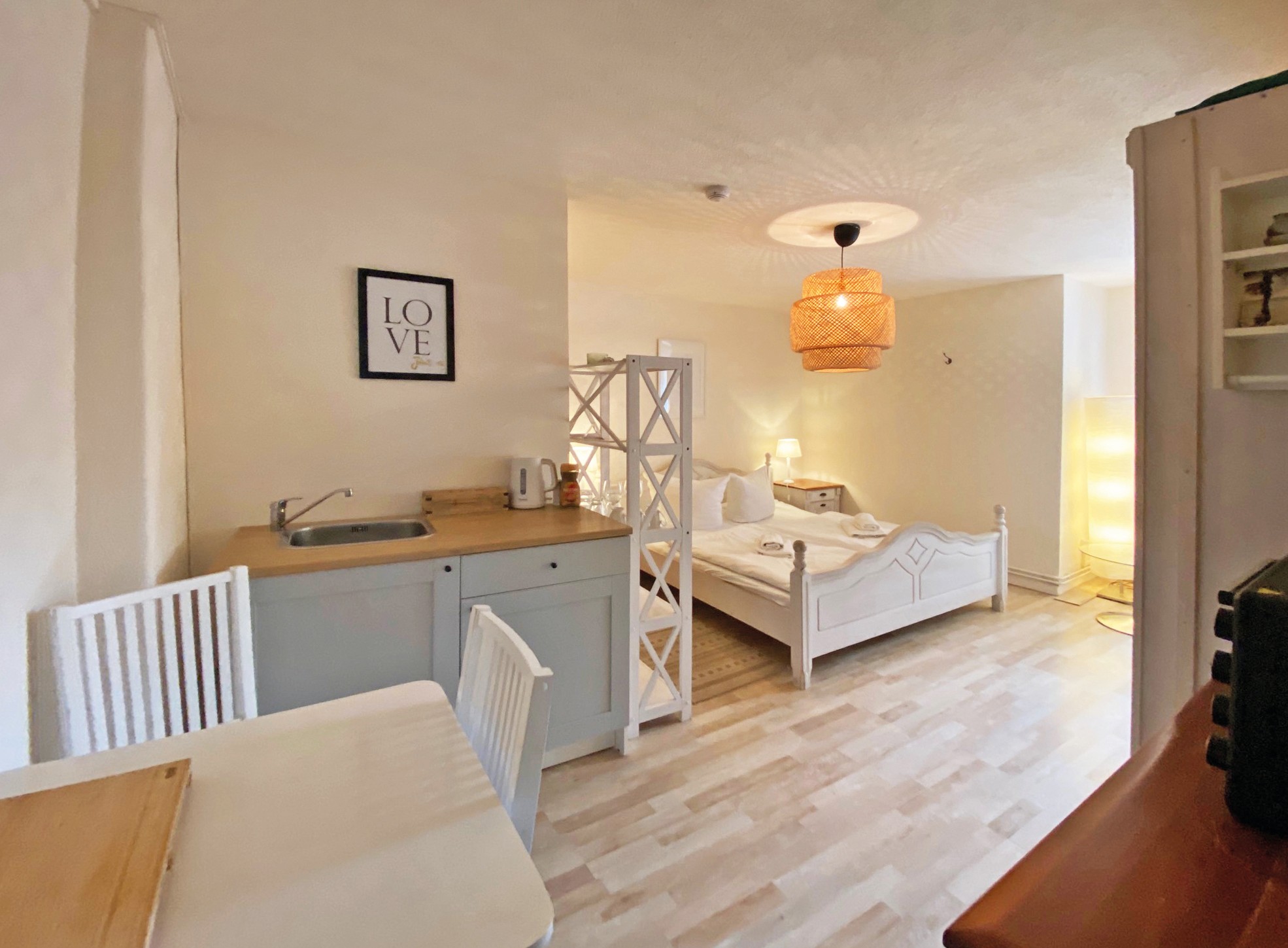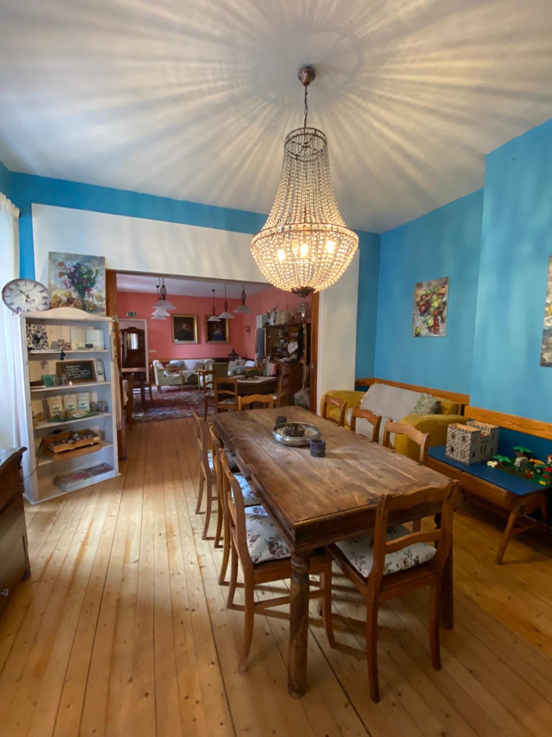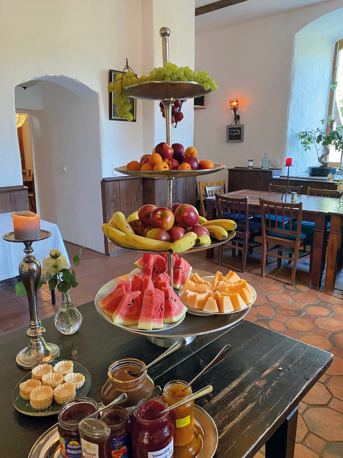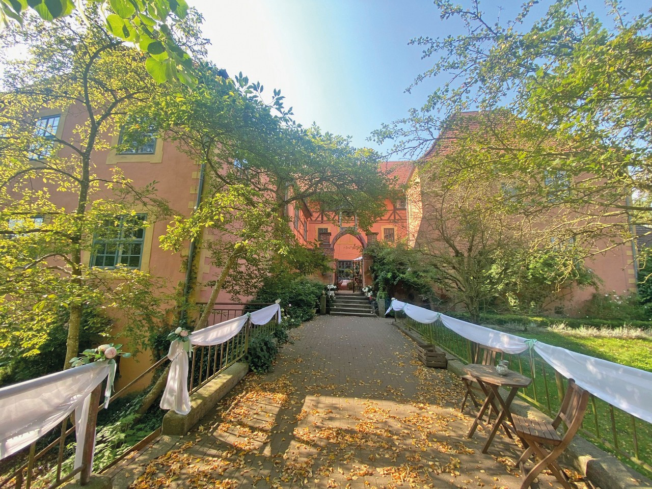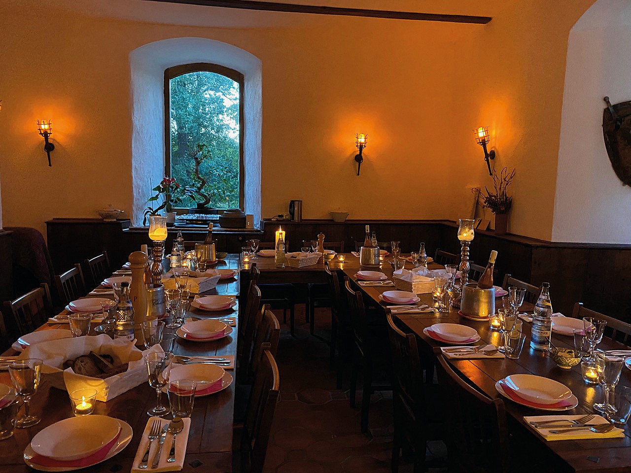 Nos dois pisos superiores e na torre encontram-se 15 quartos de hóspedes, dos quais 12 foram renovados, com um total de 36 camas. O sótão oferece cerca de 420 m² com potencial de ampliação. As caves abobadadas são adequadas para utilizações adicionais.