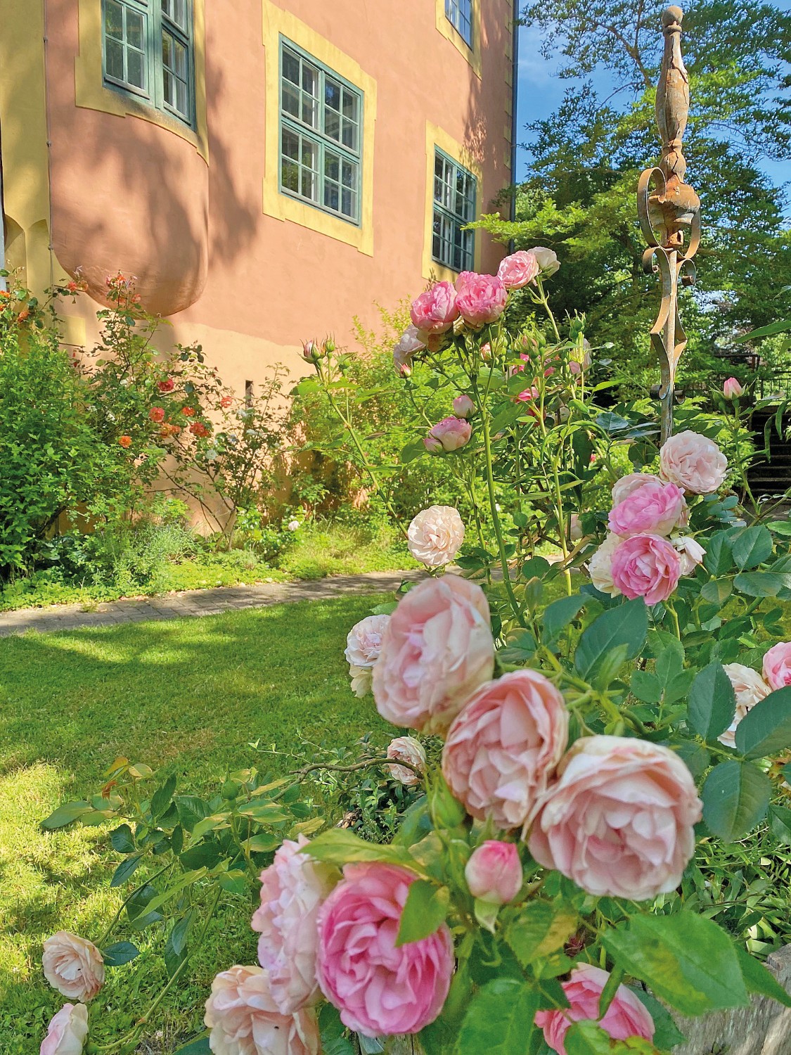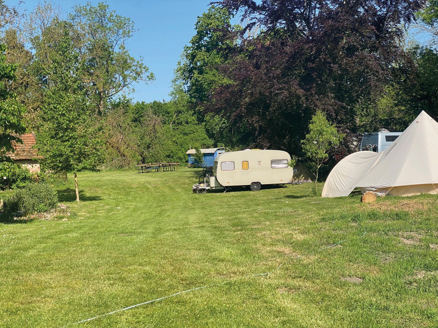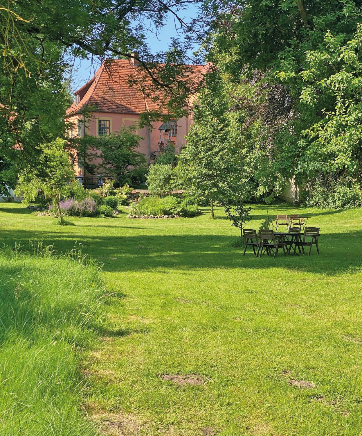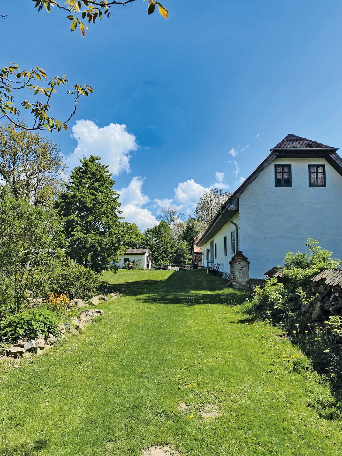 O pomar apresenta variedades históricas de macieiras, bem como cerejeiras, ameixeiras mirabel, ameixeiras, pereiras, pessegueiros e árvores de frutos secos, complementadas por arbustos de bagas e ervas culinárias. As terras agrícolas têm sido cultivadas de forma biológica nos últimos anos. Extensas áreas de pastagem permitem a criação de animais.