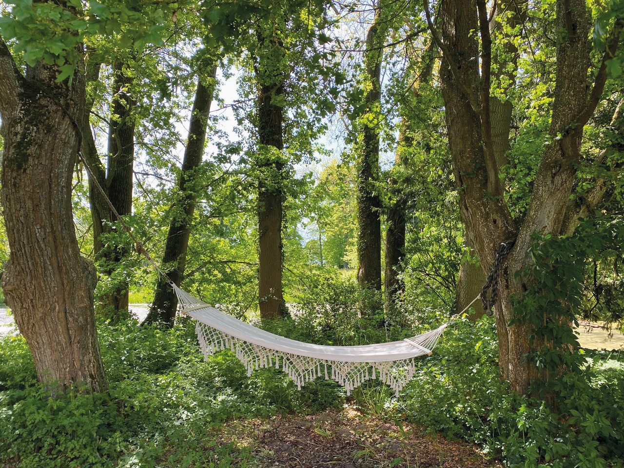 O parque em estilo inglês, com árvores maduras, inclui amplas áreas relvadas, um pavilhão com cobertura de colmo e uma alameda de tílias. O conjunto inclui um lago do castelo com uma ponte a necessitar de reabilitação. Na floresta da propriedade encontra-se um carvalho com cerca de 800 anos, classificado como monumento natural.
