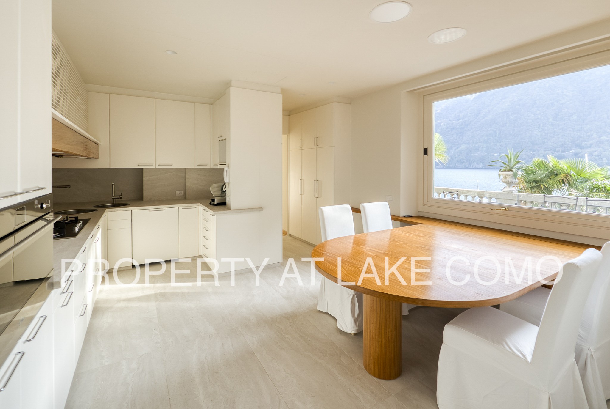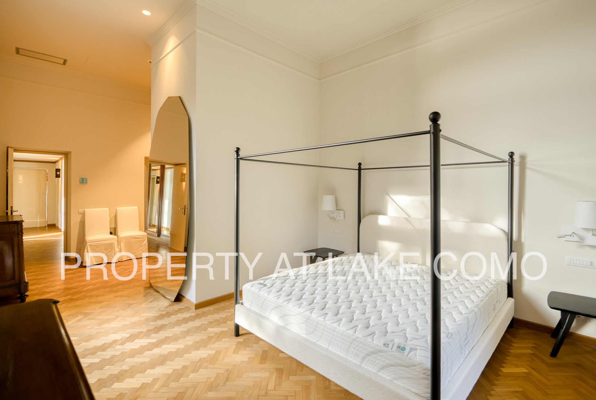 O apartamento é composto por hall de entrada, sala de estar com teto decorado com frescos e lareira em mármore, escritório, sala de jantar e cozinha com zona de refeições, bem como quarto principal com casa de banho privativa e closet, dois quartos adicionais e duas casas de banho suplementares. A área habitável total é de cerca de 330 m². As divisões principais dão acesso a terraços que totalizam mais de 150 m². Todas as divisões e terraços têm vista para o lago. Pavimentos em madeira e mármore em todo o apartamento. Existem amplos espaços de arrumação.