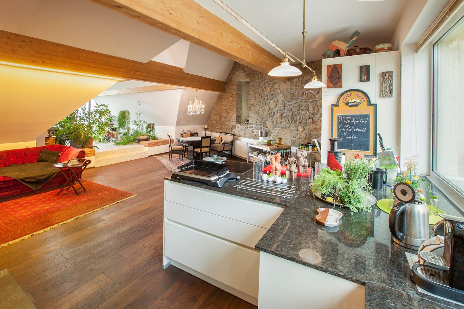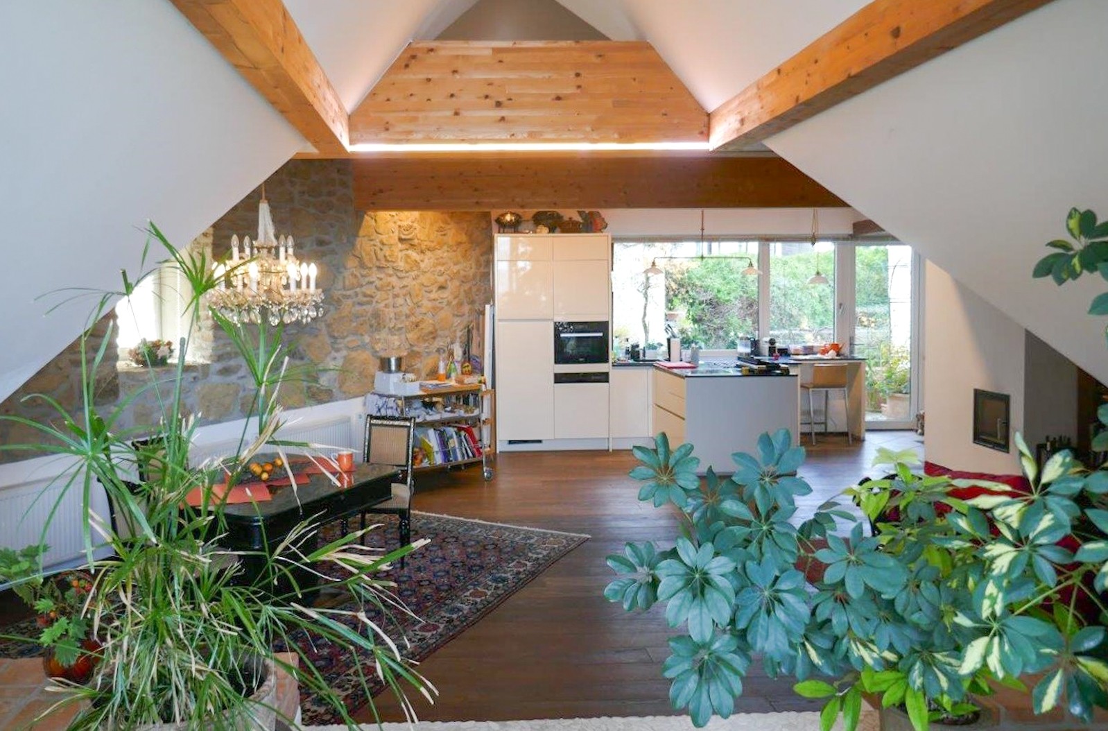 O resultado são aproximadamente 250 m² de área habitável distribuídos por vários níveis, ligados por um elevador acessível. As paredes Biedermeier no rés-do-chão proporcionam massa térmica e tranquilidade acústica; os sinos da basílica vizinha mal se ouvem no interior. Uma estufa panorâmica na ampliação moderna oferece vistas desimpedidas sobre Linz e a região do Mühlviertel.