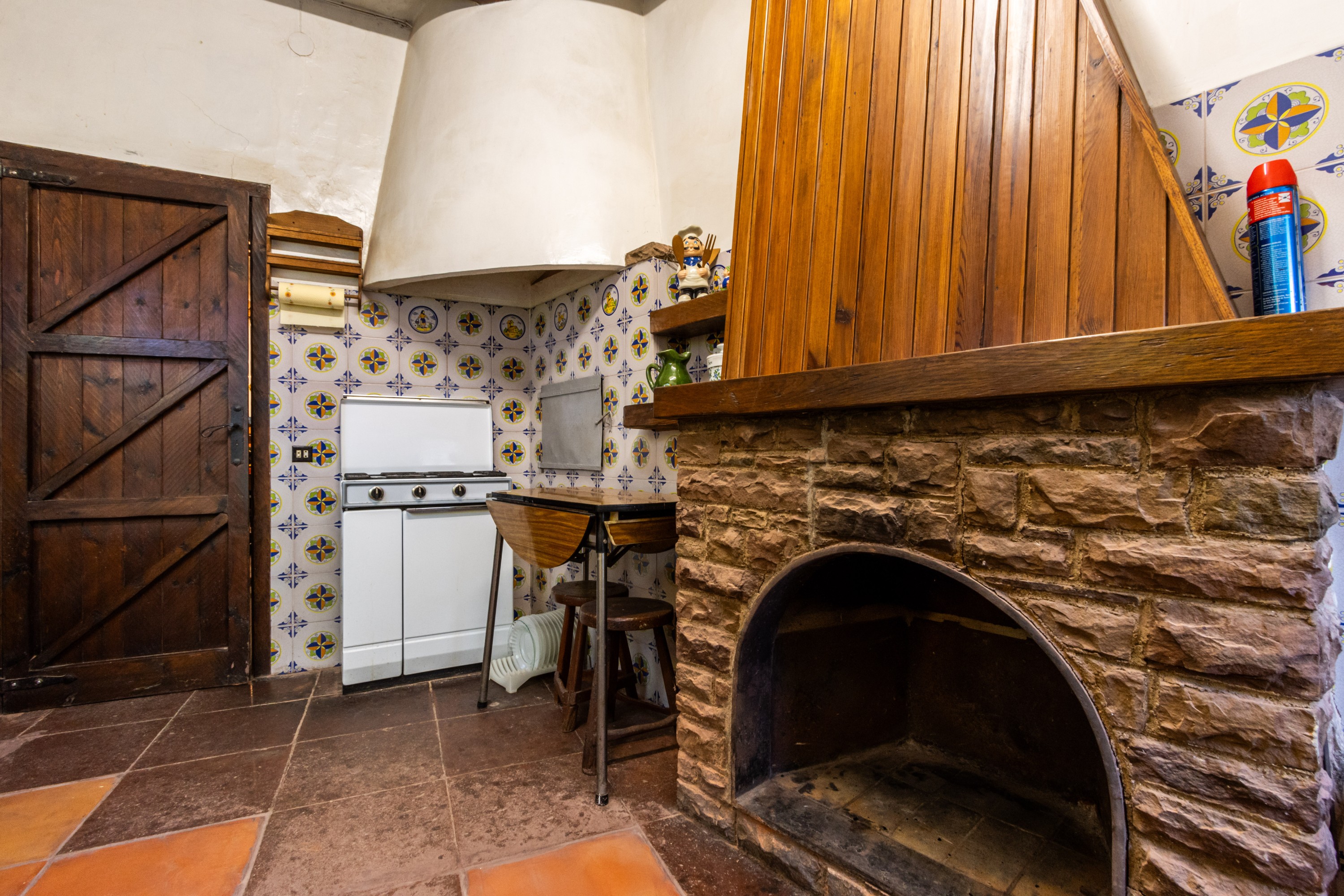 O rés do chão é dominado pela sala de estar e jantar, com 32,5 m², ideal para encontros familiares e momentos de convívio. A cozinha, com 10,10 m², está equipada com uma lareira aberta e um forno tradicional a lenha, adequado para cozinhar segundo métodos ancestrais. Um quarto de banho com duche (3,80 m²) completa este piso.