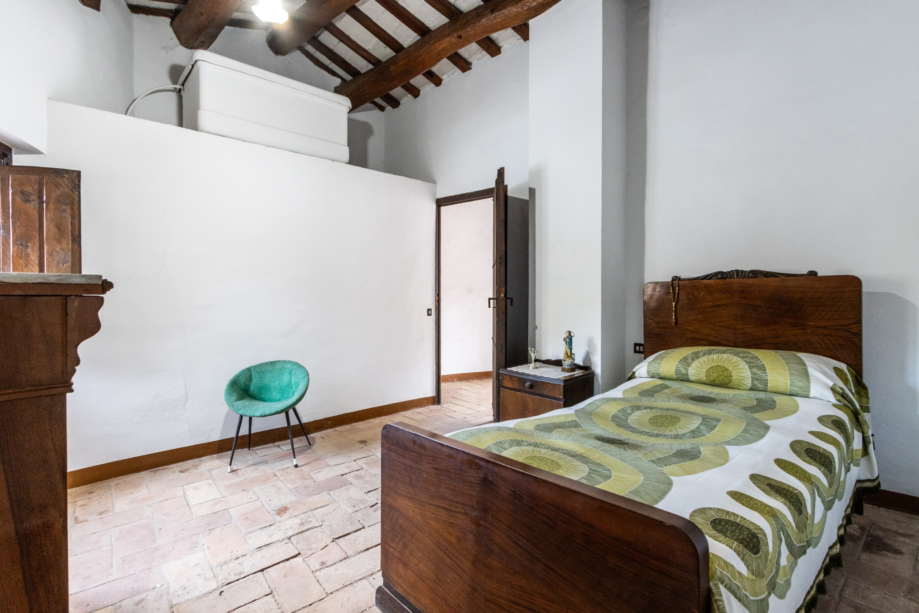 Uma escada cuidadosamente preservada em carvalho maciço conduz ao piso superior, onde se encontram quatro amplos quartos duplos. Os quartos são luminosos e oferecem vistas desafogadas sobre a natureza envolvente.
