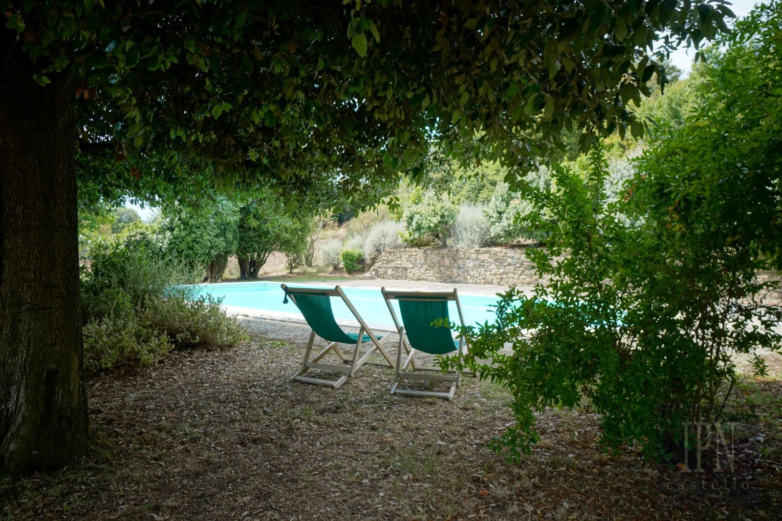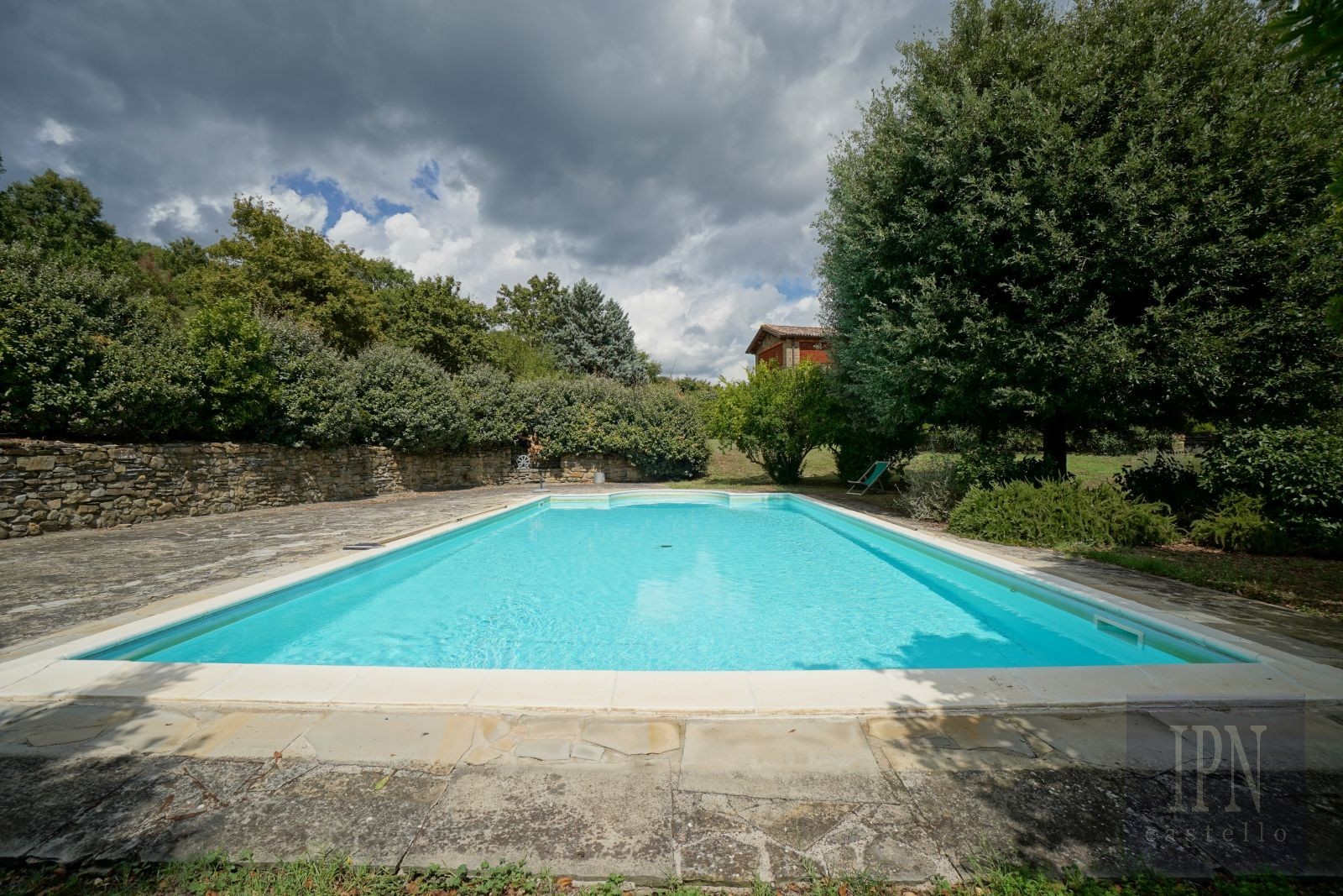 La proprietà comprende vari ripostigli e una cantina, ideale per essere trasformata in una bella cantina. All'esterno, il giardino ben curato si estende per circa 3000 mq, completato da una piscina privata con vista mozzafiato sulla campagna.