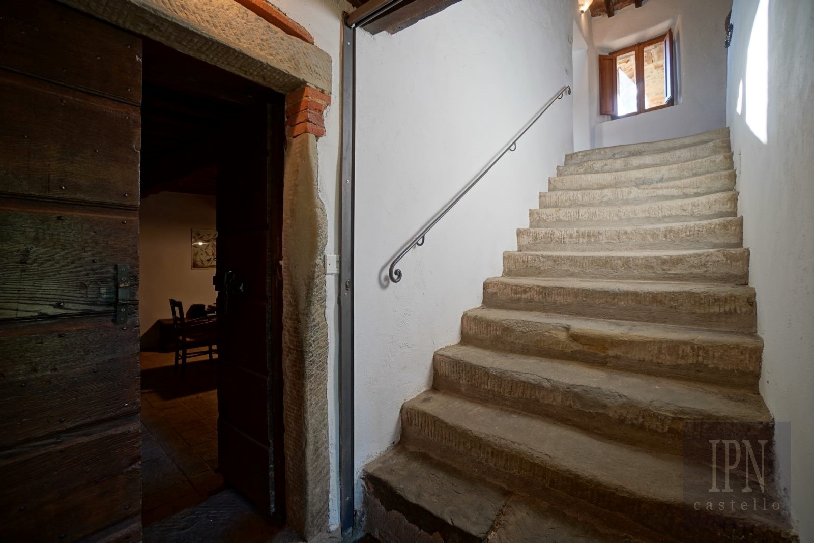 Il primo piano ospita l'ampia terza unità, uno spazio di 155 mq accessibile tramite una scala interna in pietra o una scala esterna che conduce a una terrazza. Questa unità offre un ampio soggiorno con camino e un lavandino originale in pietra, una cucina/zona pranzo di 38 mq collegata a una terrazza panoramica perfetta per le cene estive, tre camere da letto (una con bagno privato) e due ulteriori bagni.