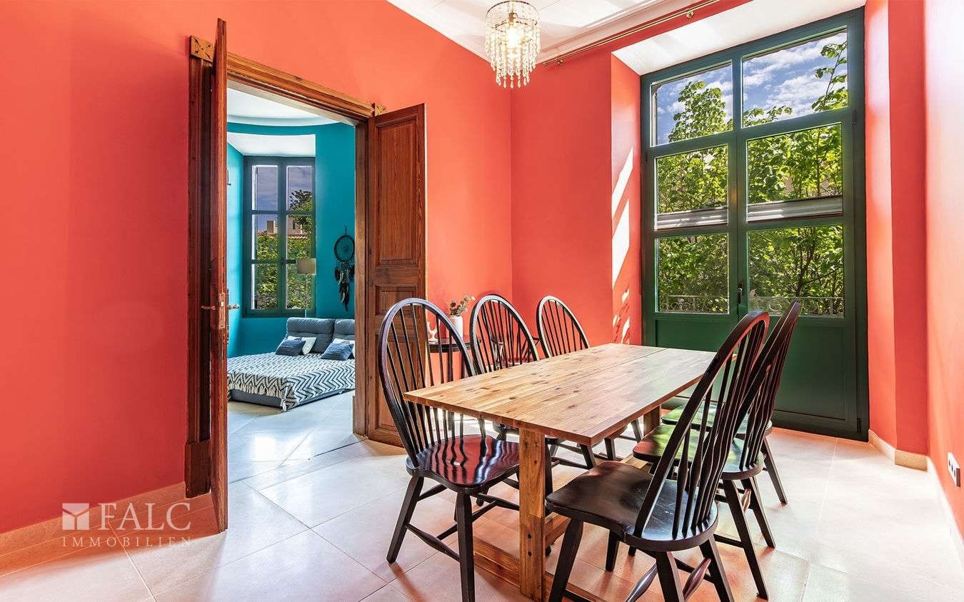 Esta casa senhorial em Sóller está muito próxima do centro da vila. A propriedade, distribuída em dois pisos mais cave, oferece cerca de 280 m² de área habitável, incluindo um hall de entrada amplo com colunas de mármore, uma grande sala de estar e uma casa de banho no rés-do-chão.