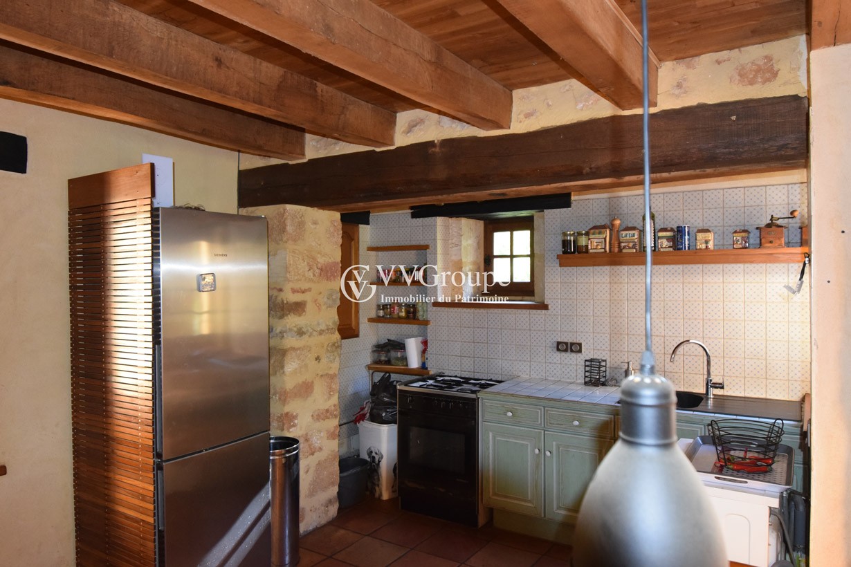 À venda: uma casa de campo do século XVII renovada, com cerca de 97 m² de área habitável, situada em posição elevada sobre 2,43 hectares. A propriedade inclui garagem, bosque privado e um poço. Conhecida como “Ostal”, a casa está isolada na Bouriane, a 6 km de Gourdon, na fronteira entre Lot e Périgord.