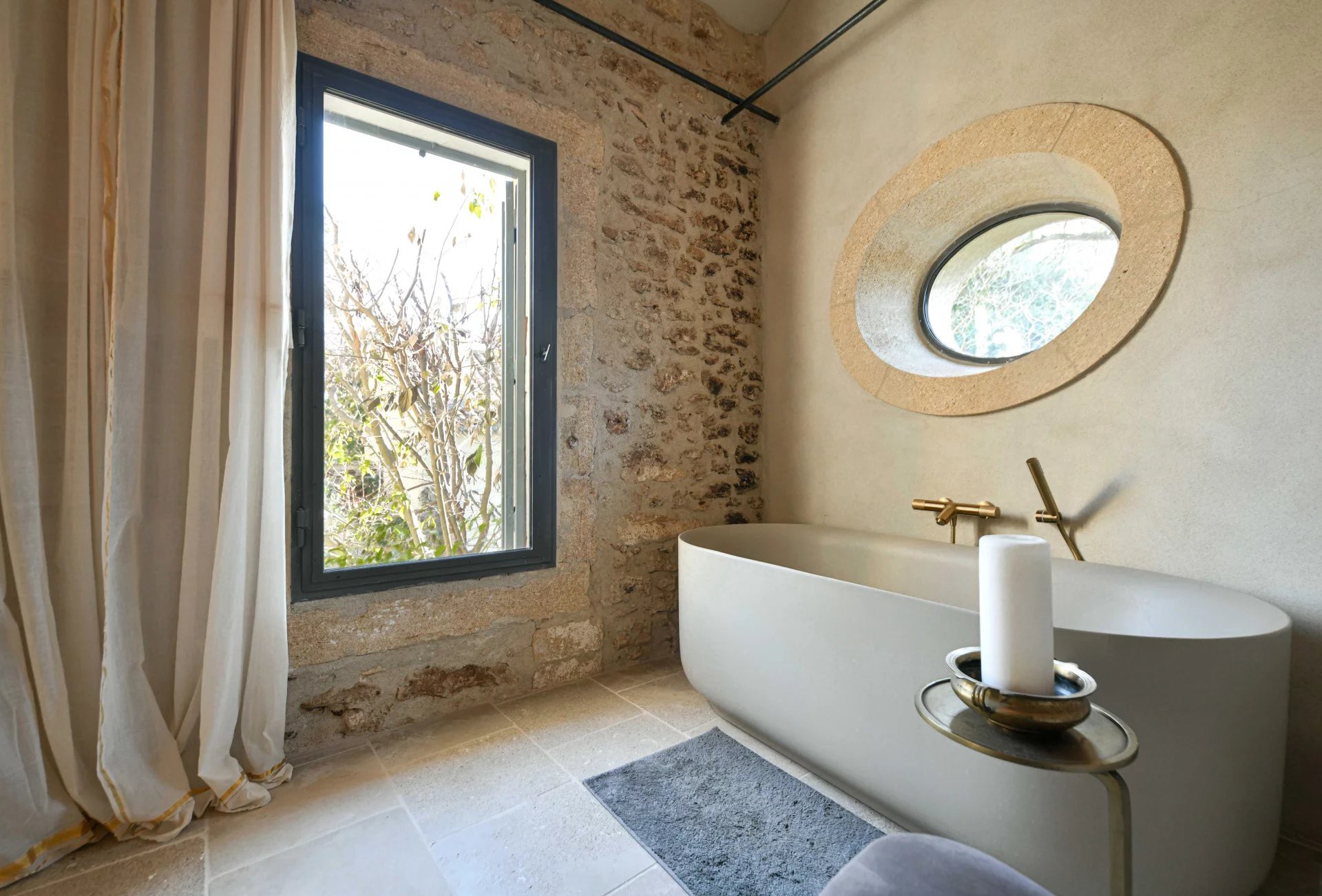 A piscina está idealmente posicionada, diretamente junto à casa de hóspedes. O jardim, delimitado por muros de pedra seca, integra-se harmoniosamente na vegetação mediterrânica. Um segundo salão de verão coberto, junto à casa de hóspedes, garante privacidade adicional.