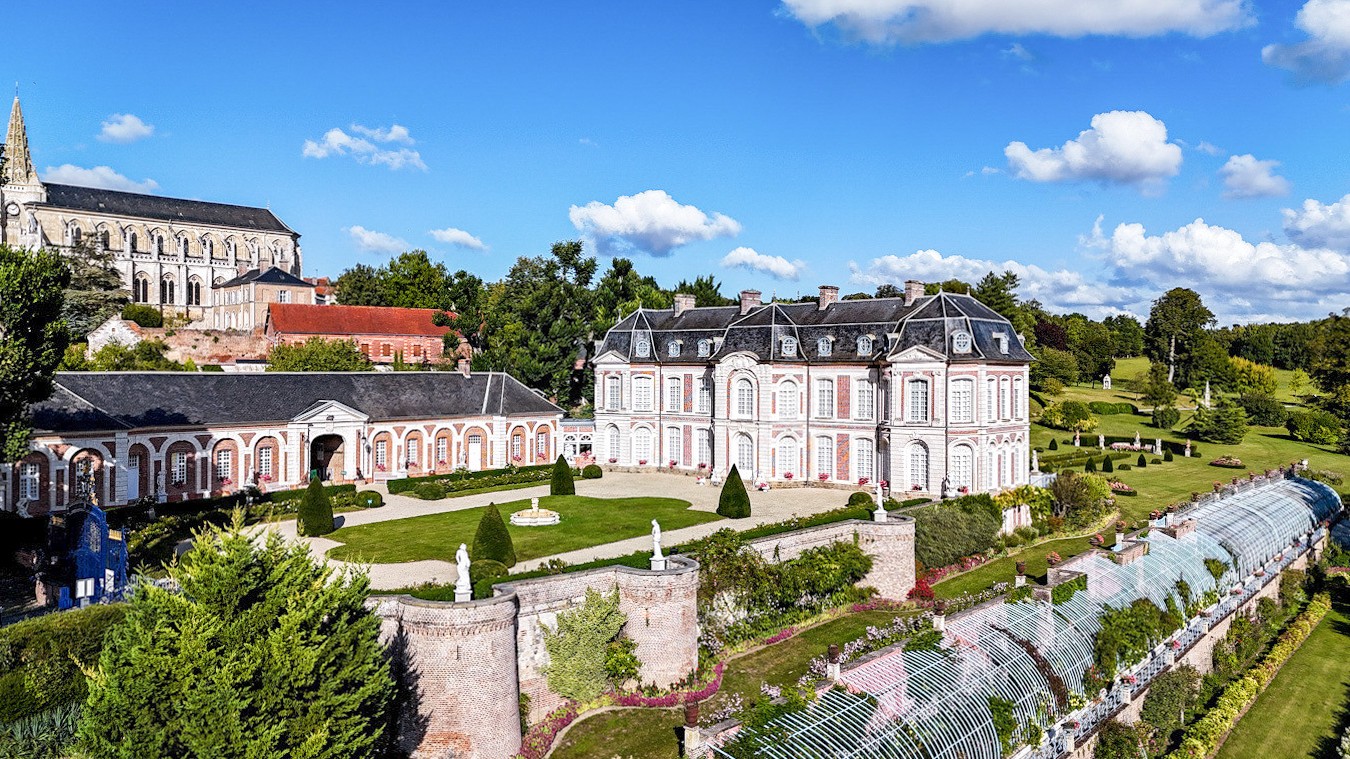 Castelo com estufas monumentais e parque privado no Vale do Somme