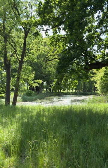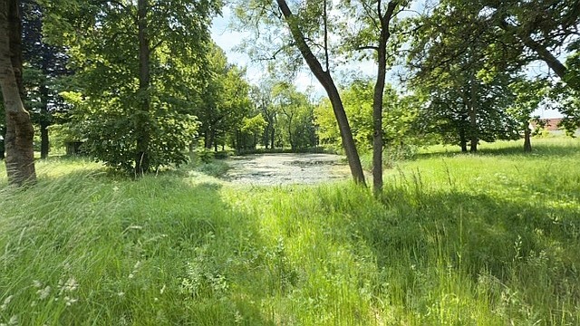 O parque de 2,8 ha inclui dois lagos limpos. A propriedade está, na sua maioria, vedada e encerrada com um portão imponente.