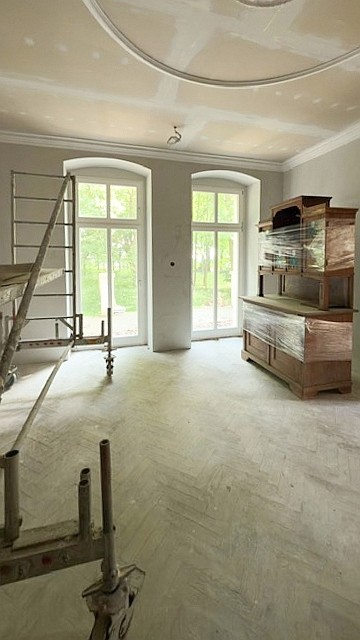 No rés-do-chão, além do hall de entrada e das áreas de estar, existe uma casa de banho. Elementos de estuque, bem como portas históricas e pavimentos em madeira, foram restaurados de forma fiel ao original.
