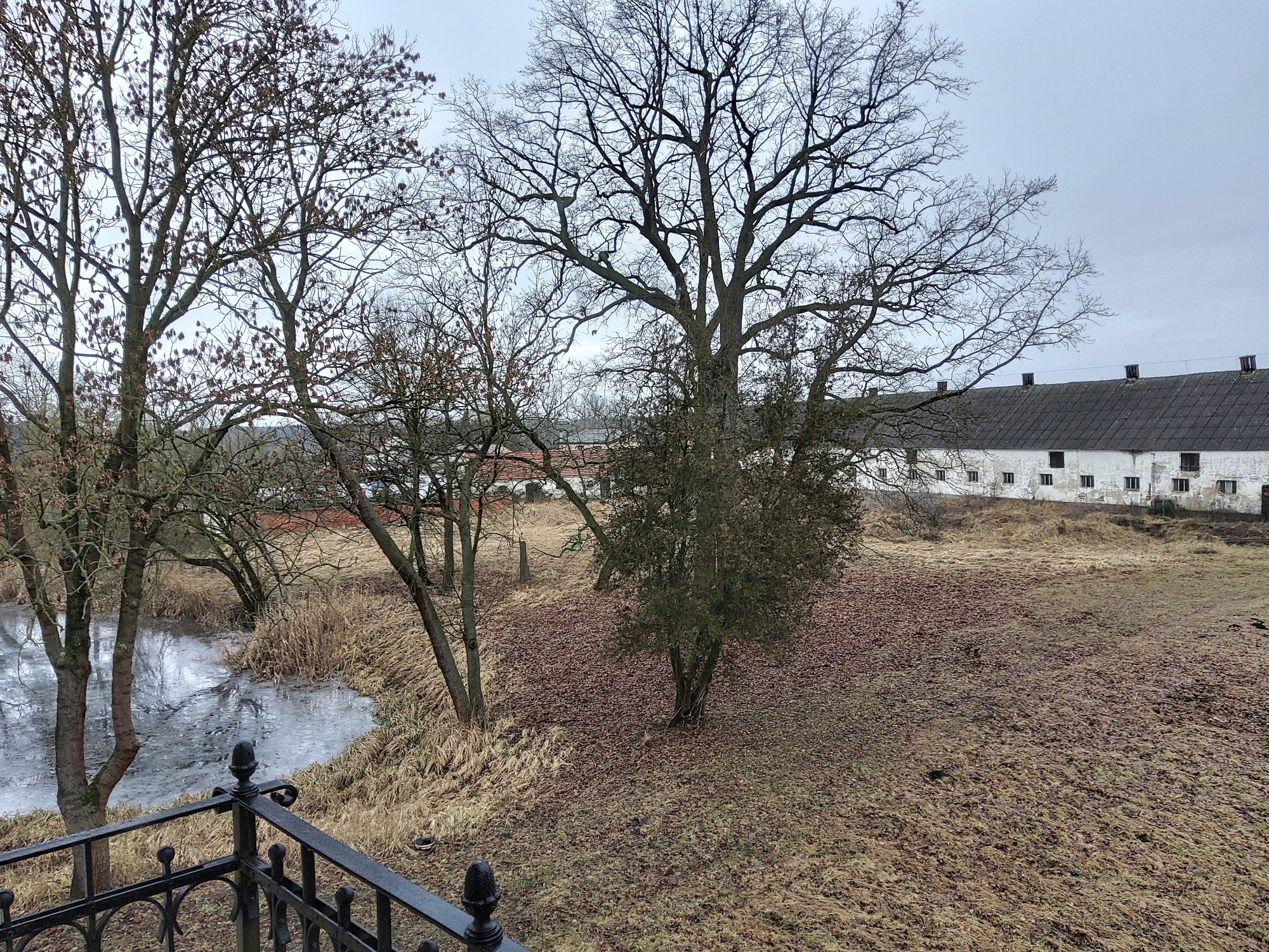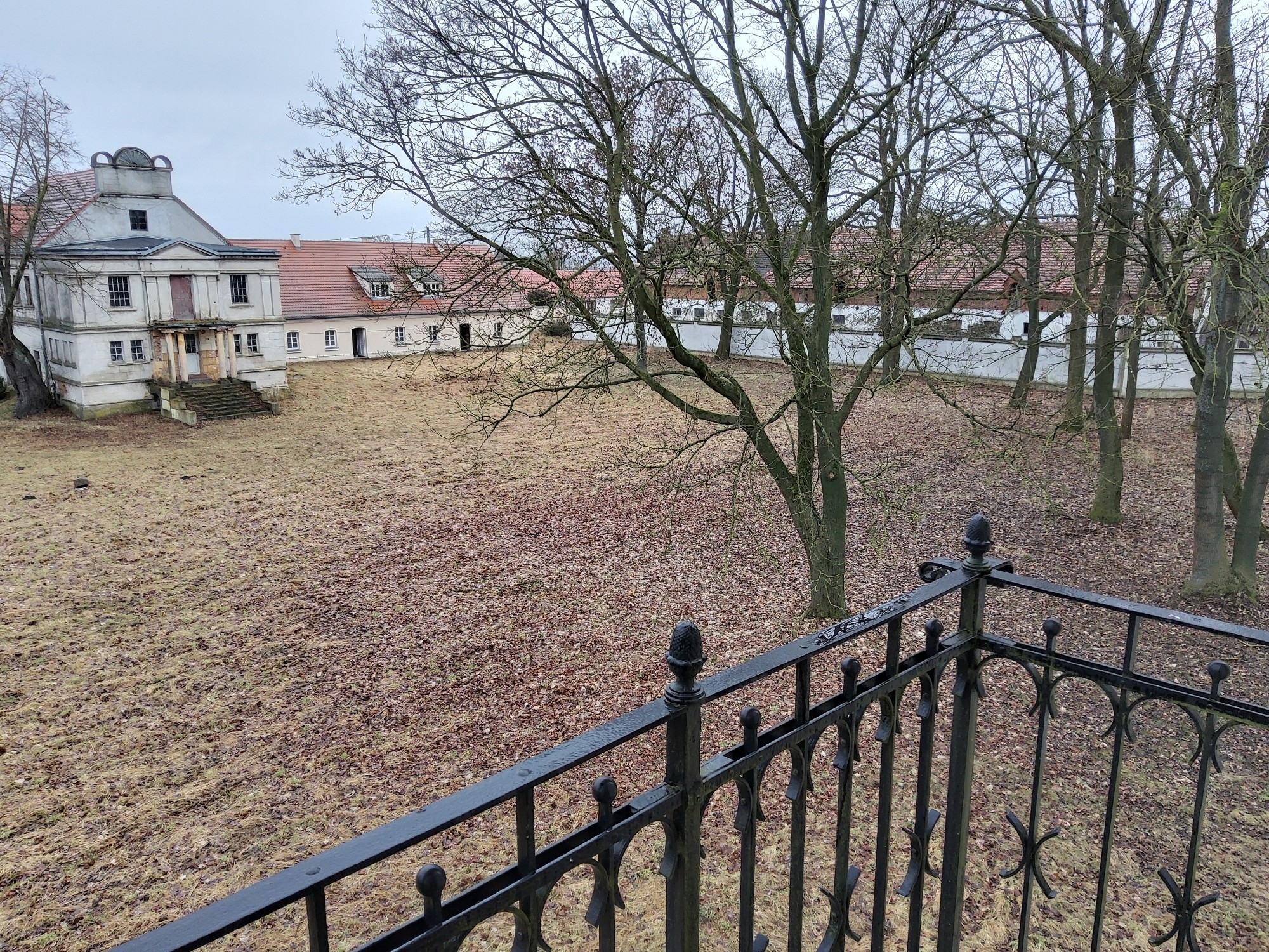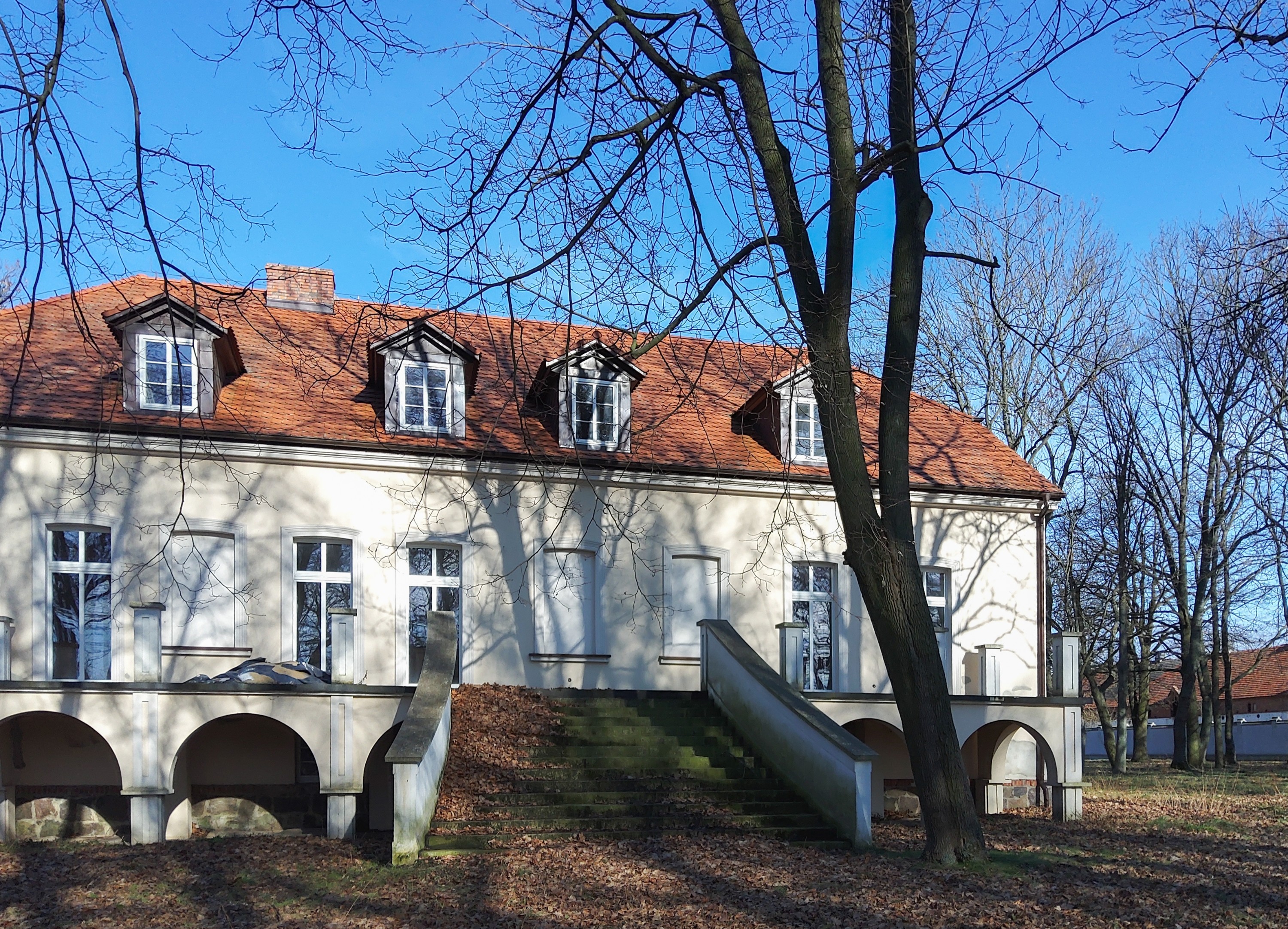 Destaca-se um grande edifício anexo (Ofycyna) de estilo senhorial situado na entrada. Outras construções incluem uma ferraria e diversos estábulos.
