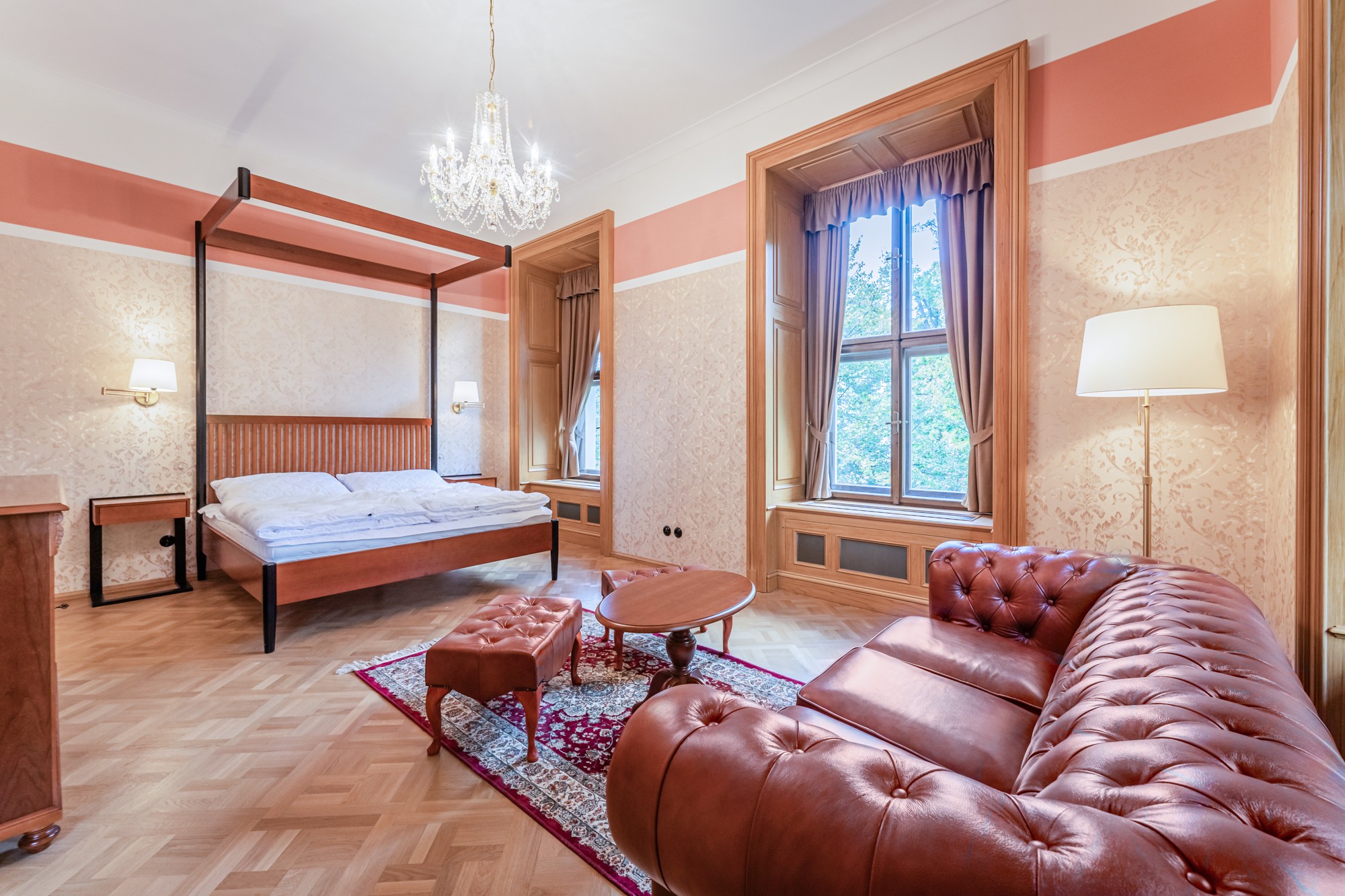 Um refinado palácio barroco construído entre 1719 e 1723 no local de um antigo castelo renascentista, rodeado por um jardim inglês e totalmente cercado por muros históricos. O palácio, os jardins e os caminhos encontram-se impecavelmente conservados.