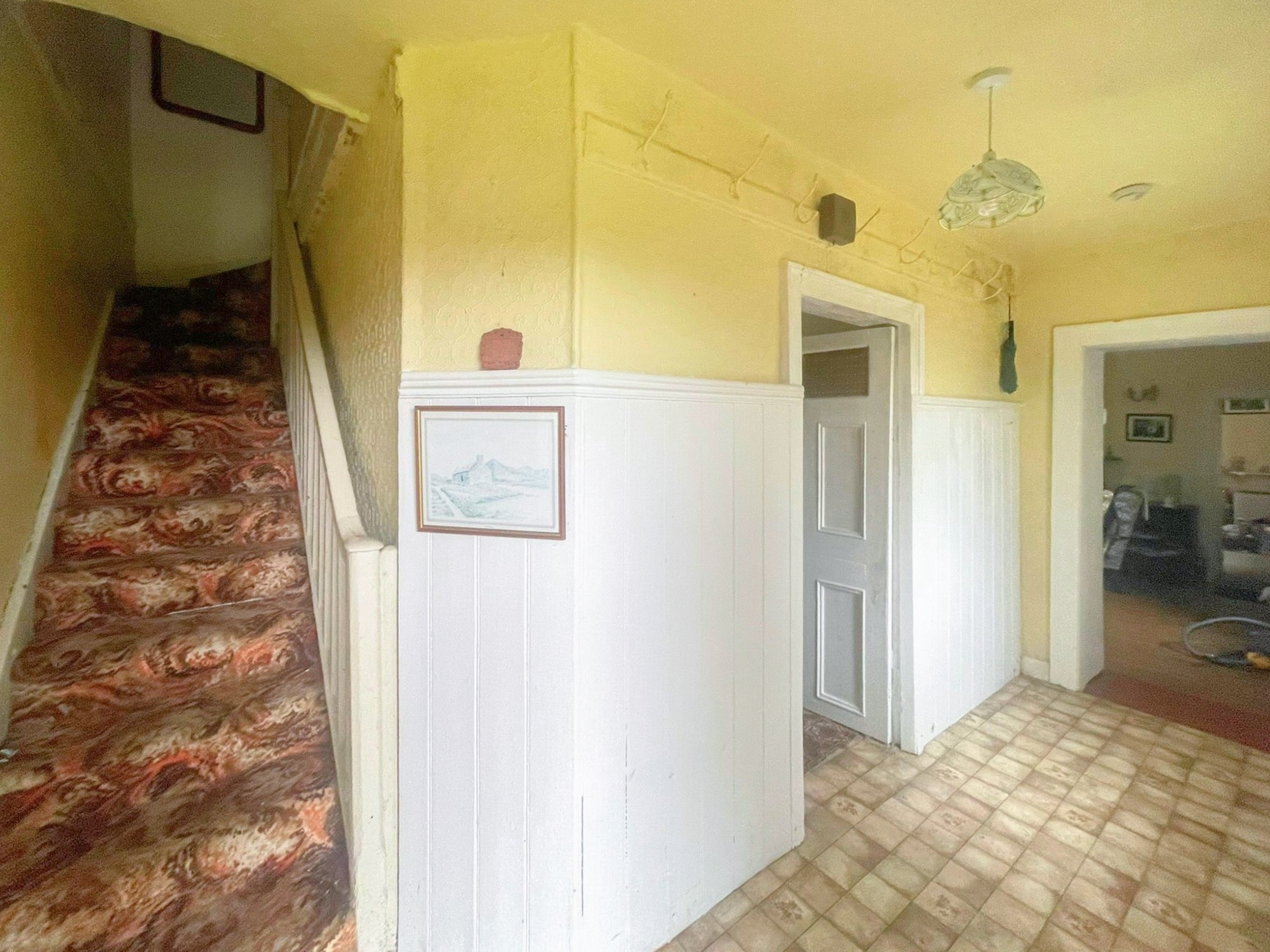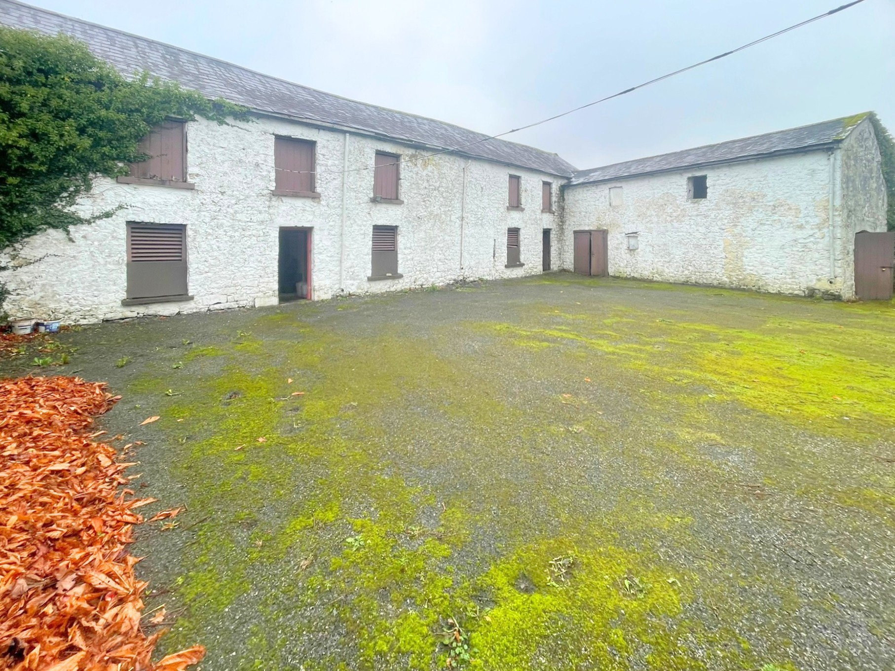 O terreno, com cerca de 0,8 hectares, inclui uma residência de dois pisos da época de construção e vários edifícios anexos em pedra com telhados de ardósia natural, formando um pátio protegido. A propriedade possui acesso por duas ruas, com um total de três entradas, e está situada na zona residencial de Ballyleague.