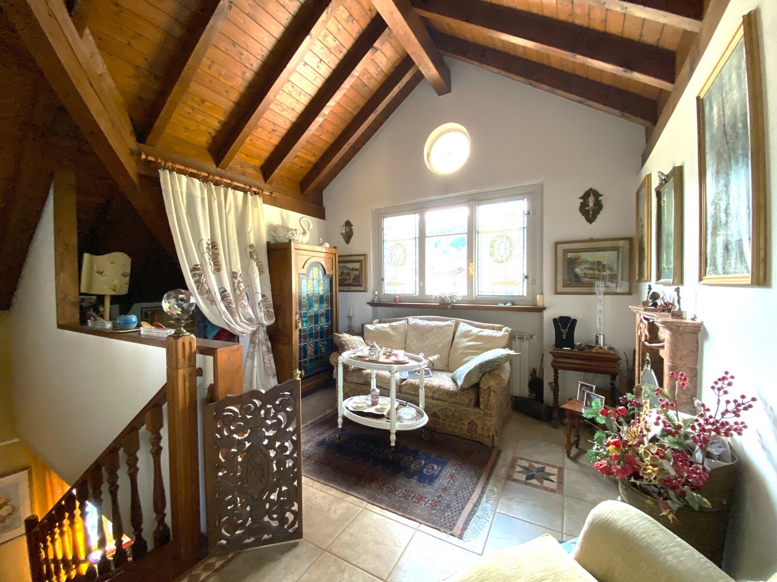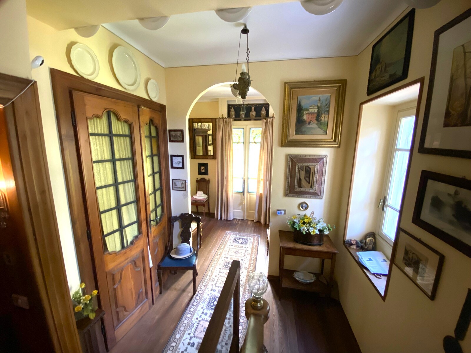 Esta villa em Stresa, construída em 1930 e ampliada em 1997 com um piso superior panorâmico, combina o estilo clássico com o conforto moderno. A propriedade tem aproximadamente 307 m² distribuídos por quatro pisos, com espaços luminosos e detalhes históricos, orientados a sudeste-oeste para garantir luz natural ao longo do dia.