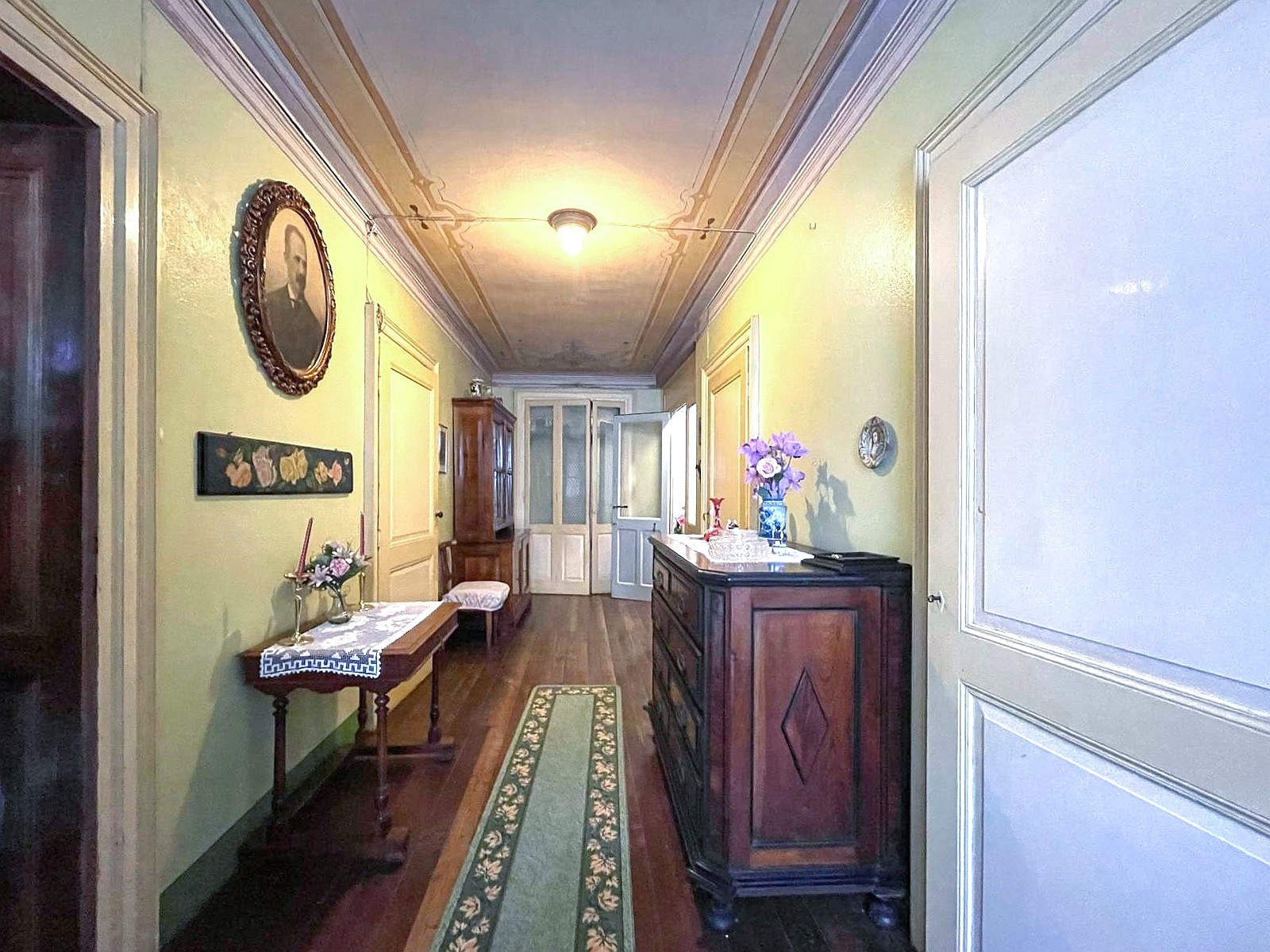 Está à venda uma residência histórica de quatro pisos com características construtivas típicas da época. O edifício preserva elementos originais como painéis de parede, frescos e pavimentos em pedra, oferecendo espaços generosos com uma estrutura clara e funcional.