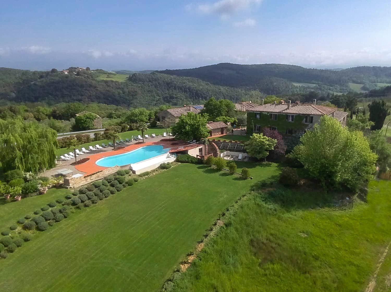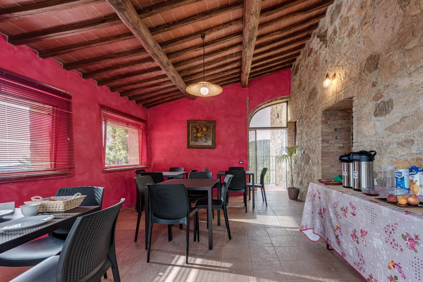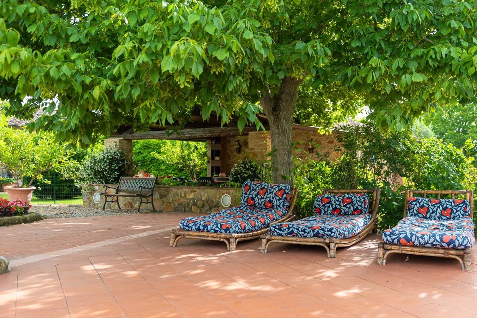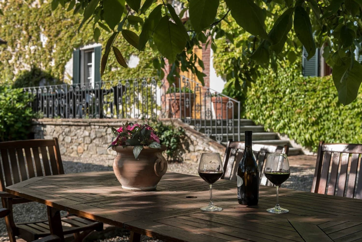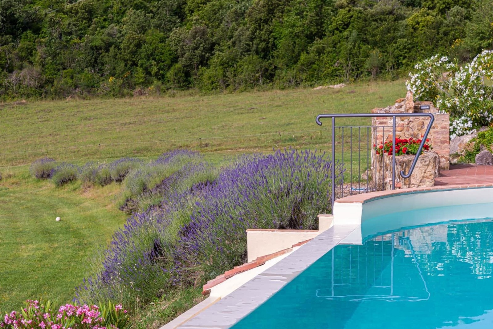 A villa principal tem acesso direto à piscina panorâmica rodeada por vegetação, e inclui cinco apartamentos luxuosos, projetados para garantir privacidade e conforto. Os apartamentos podem ser mantidos separados ou unidos para formar uma residência ampla, contando com oito quartos espaçosos e cinco banheiros com acabamentos de alta qualidade. As áreas de estar apresentam lareiras originais, pisos de terracota e vigas de madeira expostas, preservando o estilo tradicional toscano.