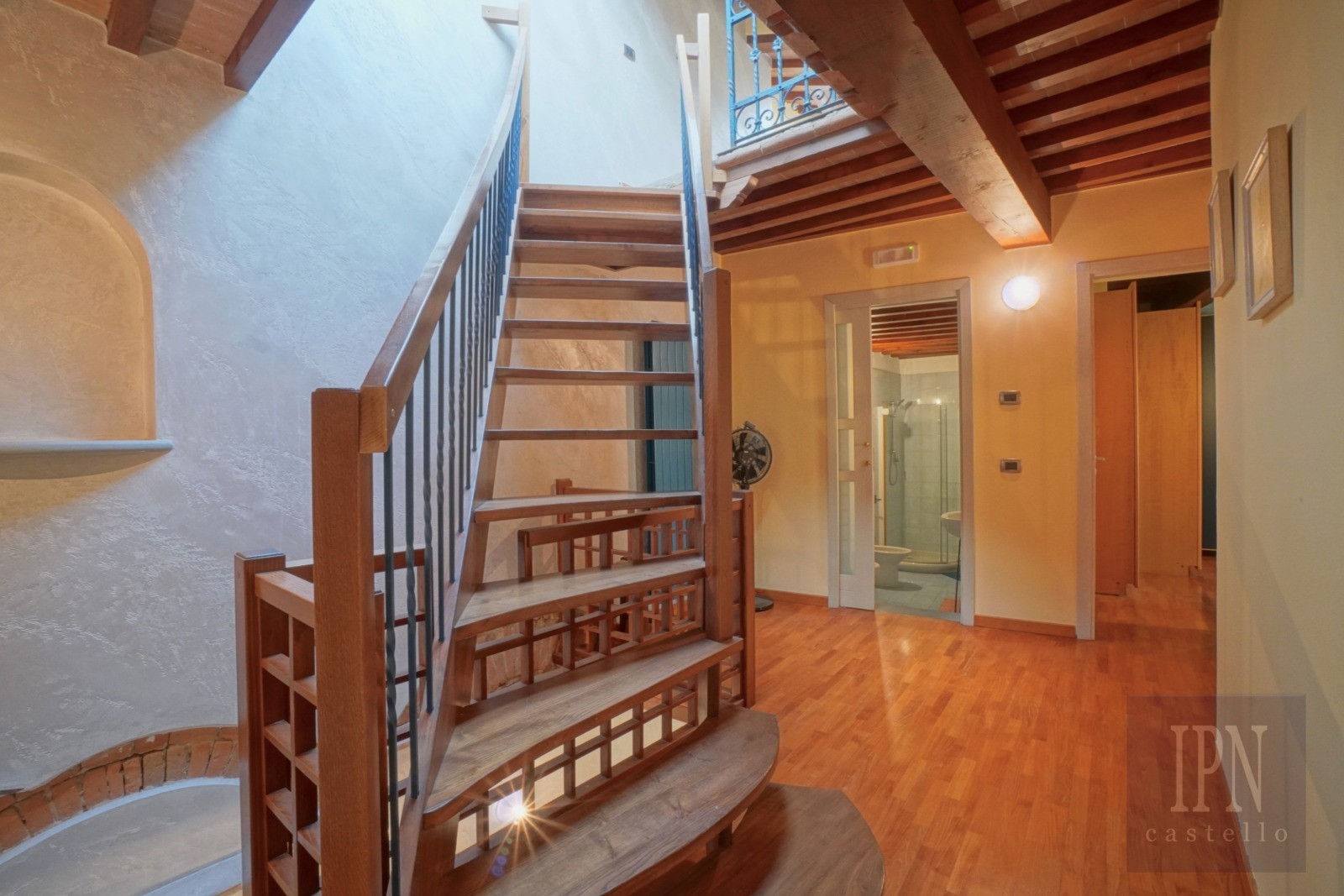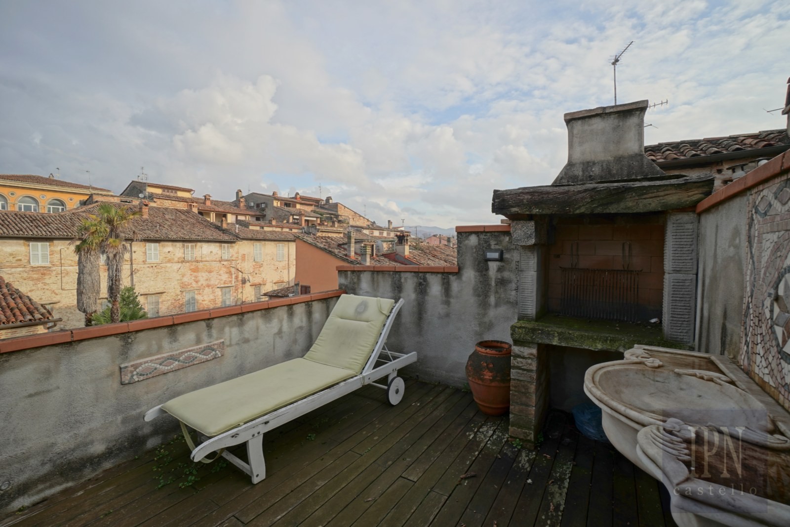 Uma escada com detalhes originais em ferro forjado conduz ao último piso onde se situam a lavandaria e a área técnica assim como o acesso a um terraço privativo na cobertura com cerca de 10 m². O terraço está equipado com churrasqueira e lava-loiça em mármore e oferece vistas sobre as ruas históricas e a paisagem envolvente.