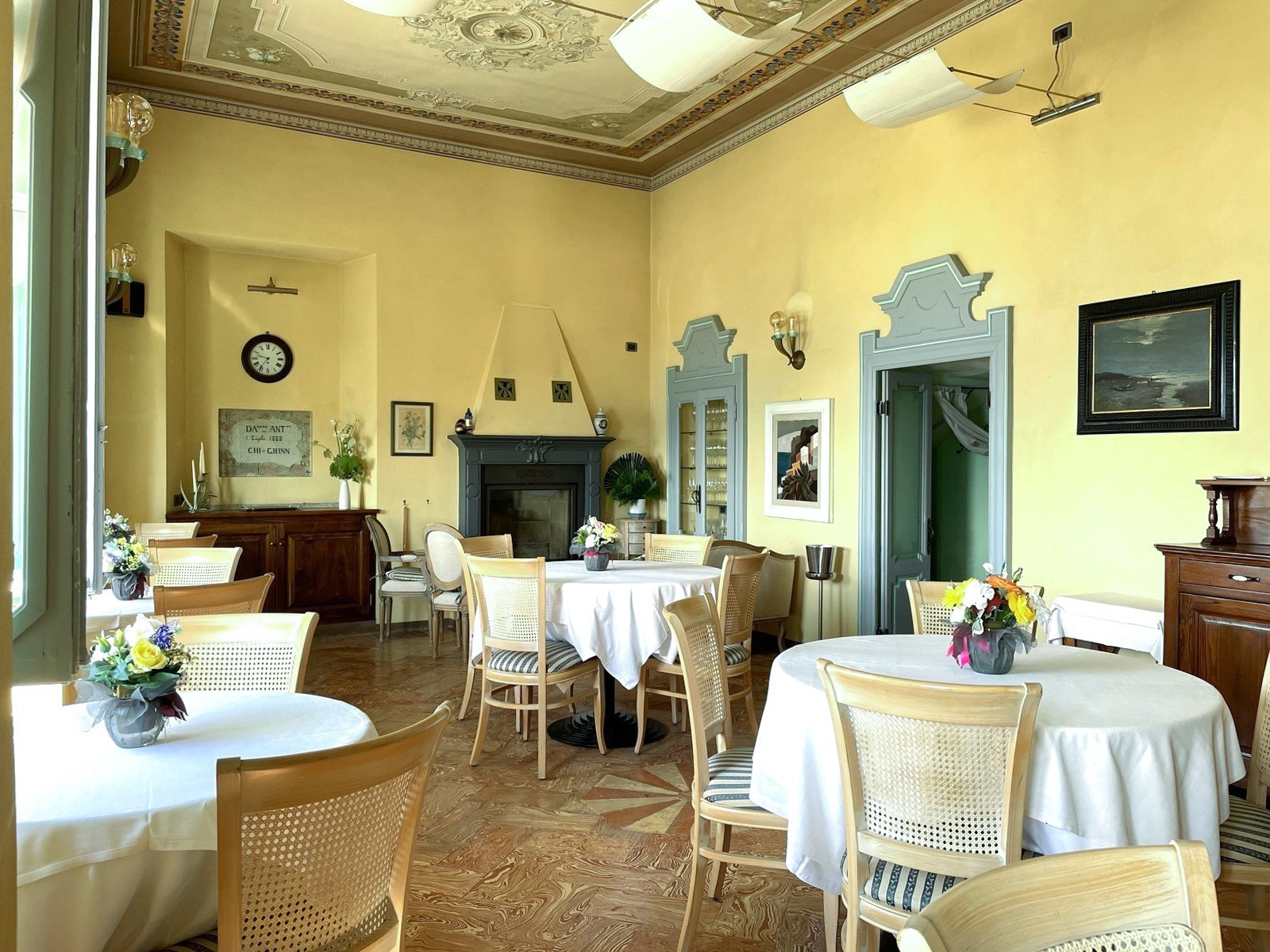 Hall de entrada Lareira Varanda Frescos Terraço Decoração de estuque Pátio