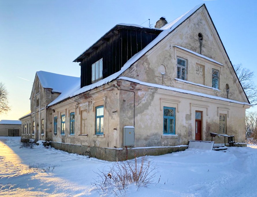 A casa principal foi construída em 1870 segundo os planos de Theodor Heinrich Seyler. Trata-se de um edifício longo de um só piso, com telhado a duas águas. Ambas as fachadas longitudinais estão decoradas com pilastras, e a propriedade apresenta também elementos neogóticos, presumivelmente adicionados durante renovações posteriores. Após a Segunda Guerra Mundial, a casa serviu primeiro como centro cultural e posteriormente como residência.