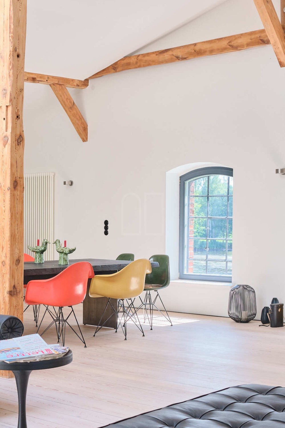 De moinho a monumento de design: este antigo moinho classificado, renovado com gosto, oferece amplos espaços para sonhar. Em três pisos, as divisões únicas combinam tijolos históricos, elementos de aço modernos e mobiliário personalizado em carvalho e betão aparente.