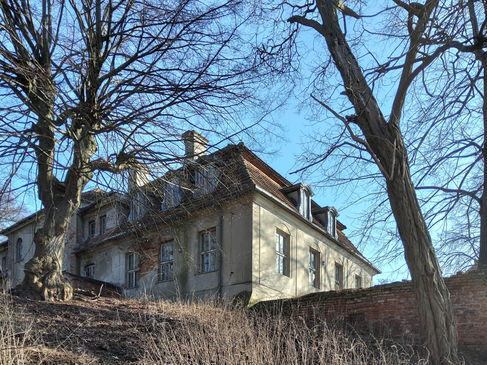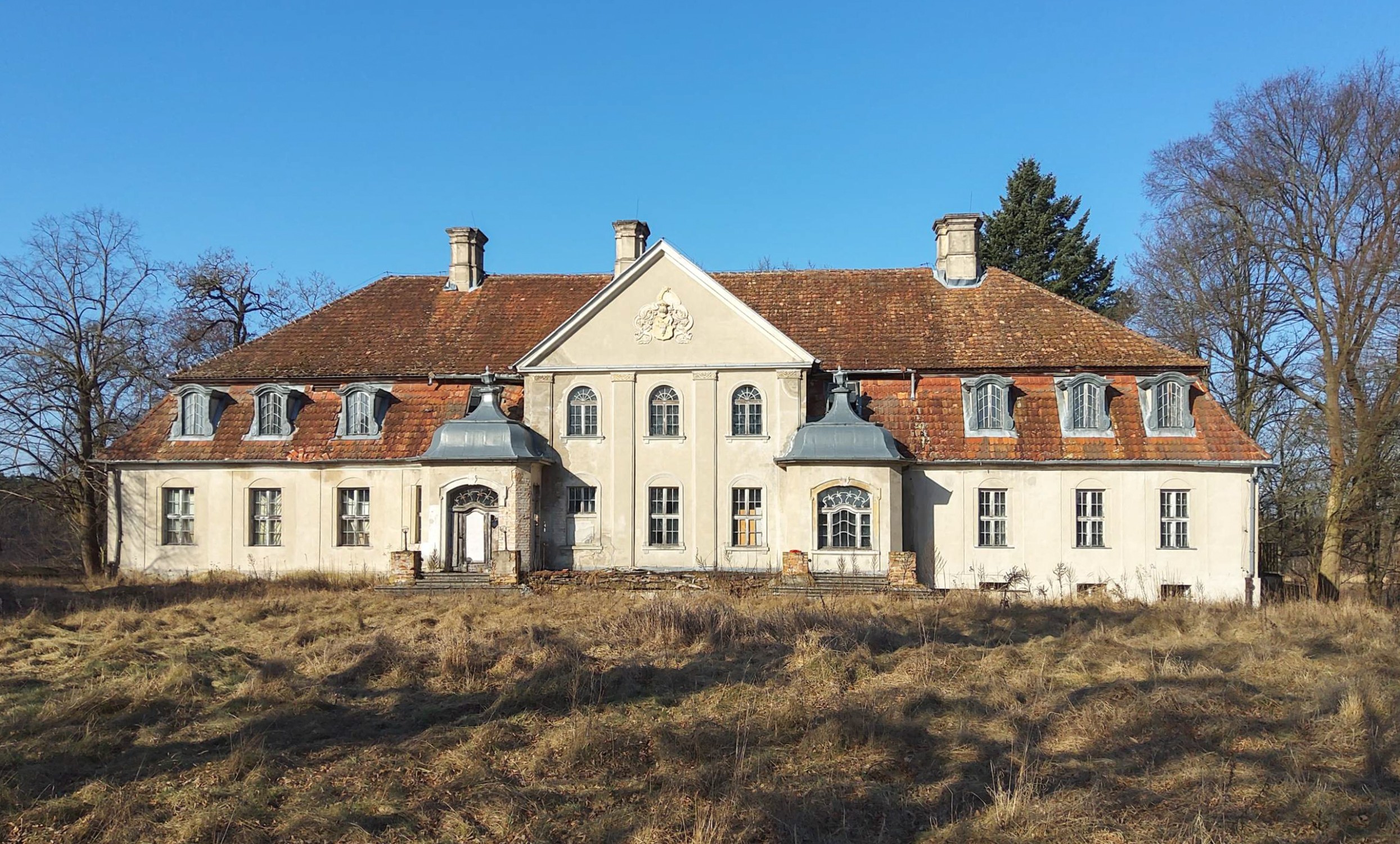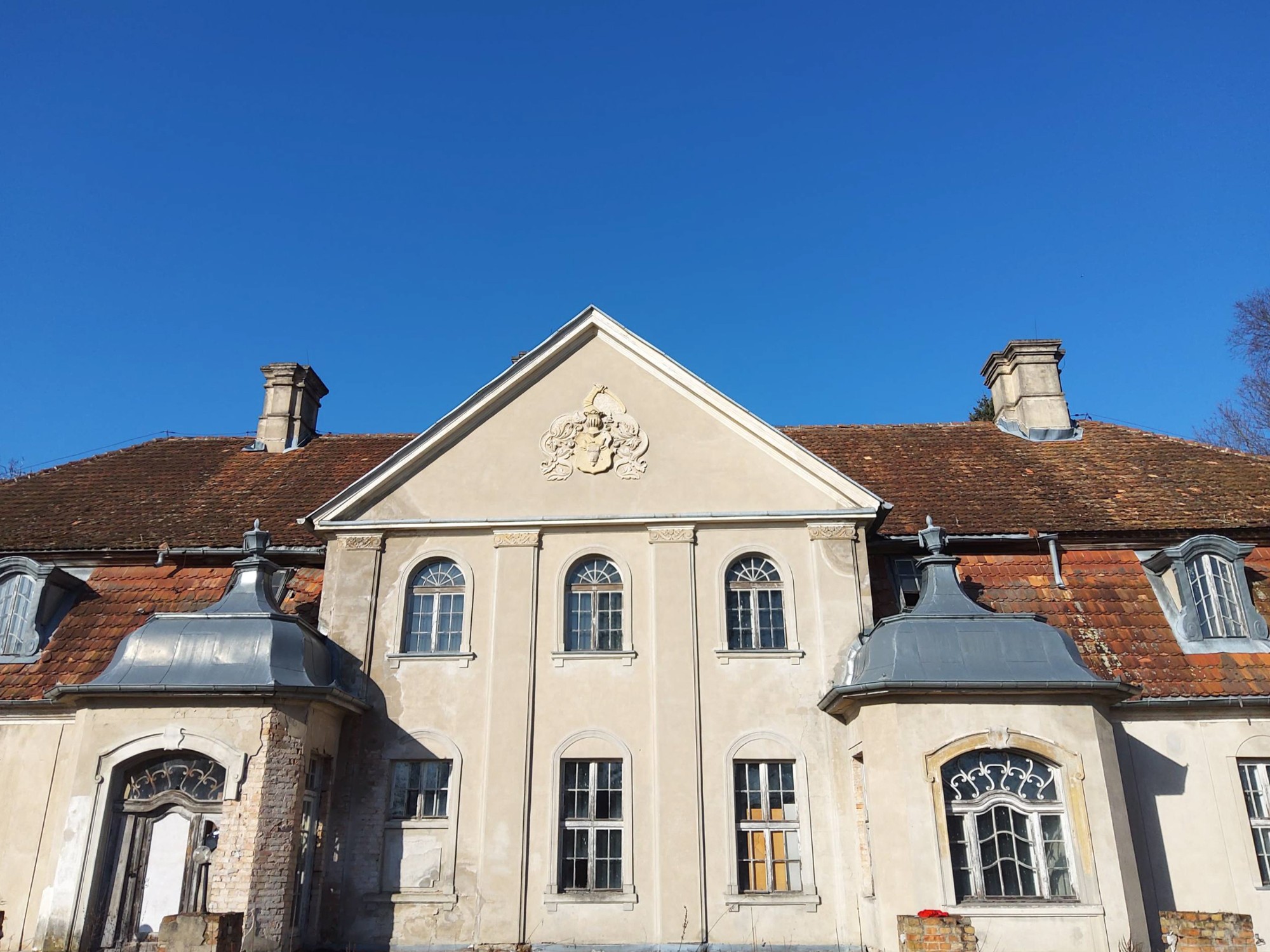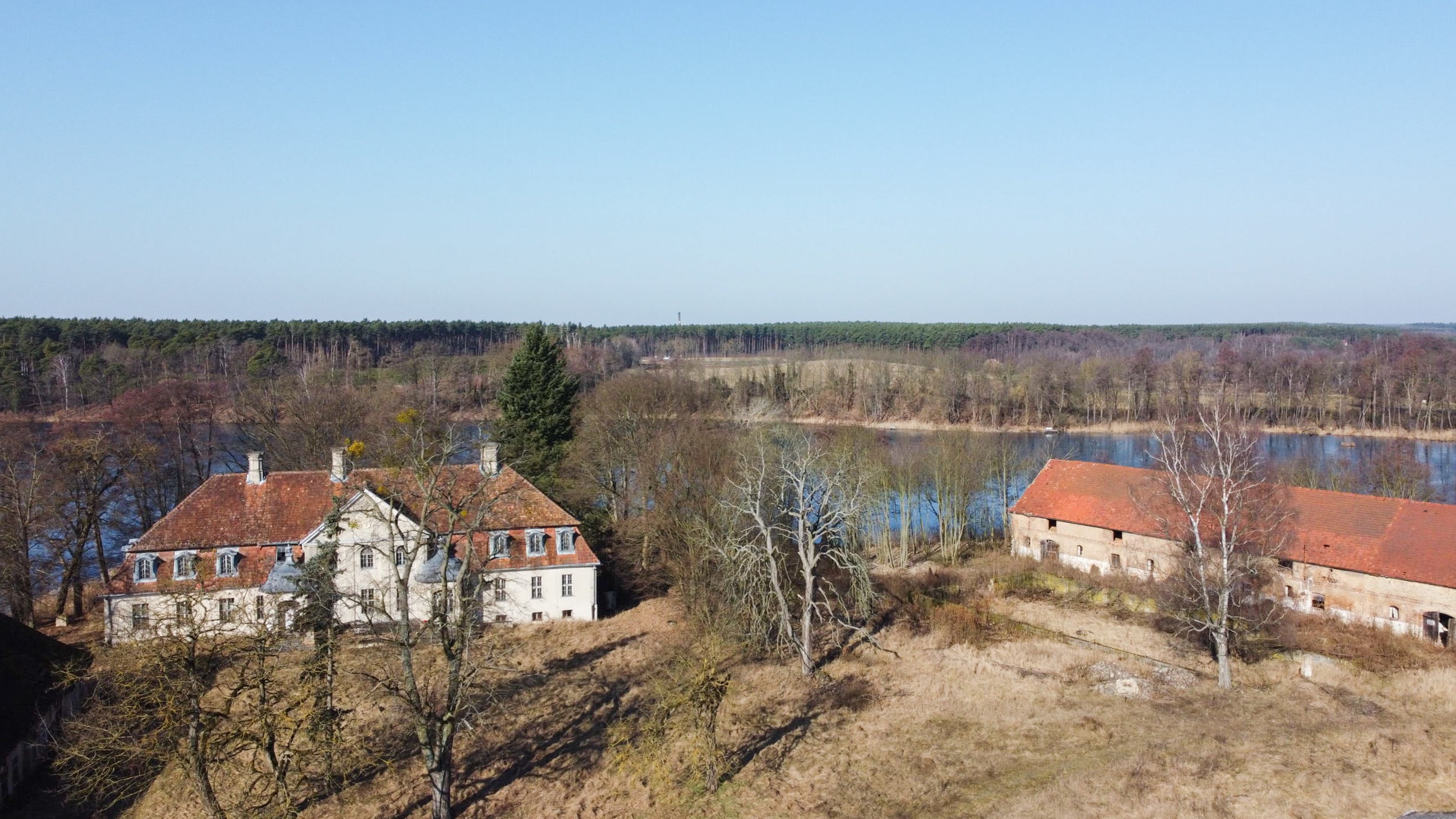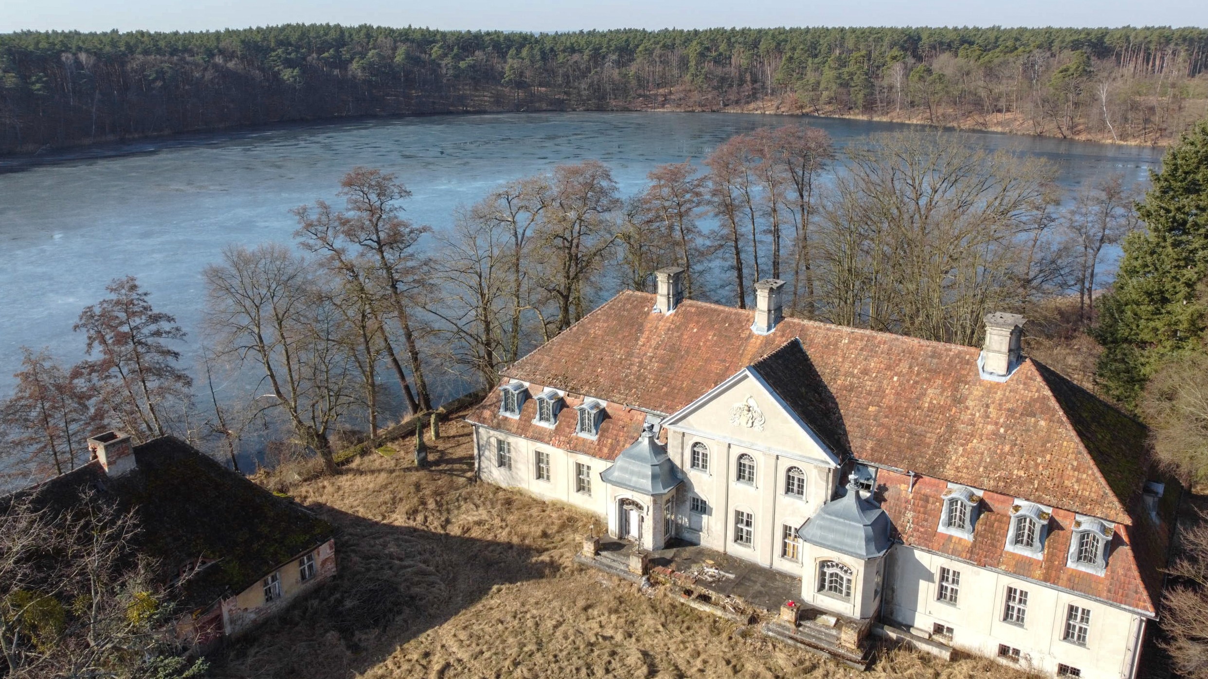 A propriedade senhorial histórica está localizada numa península privada de aproximadamente 30.000 m², na voivodia de Lubusz, diretamente junto a um lago, rodeada por um parque histórico com carvalhos e faias centenárias. As suas origens remontam ao século XIII; em vários pontos podem observar-se diferentes épocas de construção, incluindo abóbadas góticas e um portal barroco. Na década de 1980, os tetos e escadas foram renovados em betão. Desde então, os interiores permanecem em estado de obra bruta, necessitando de uma renovação completa.