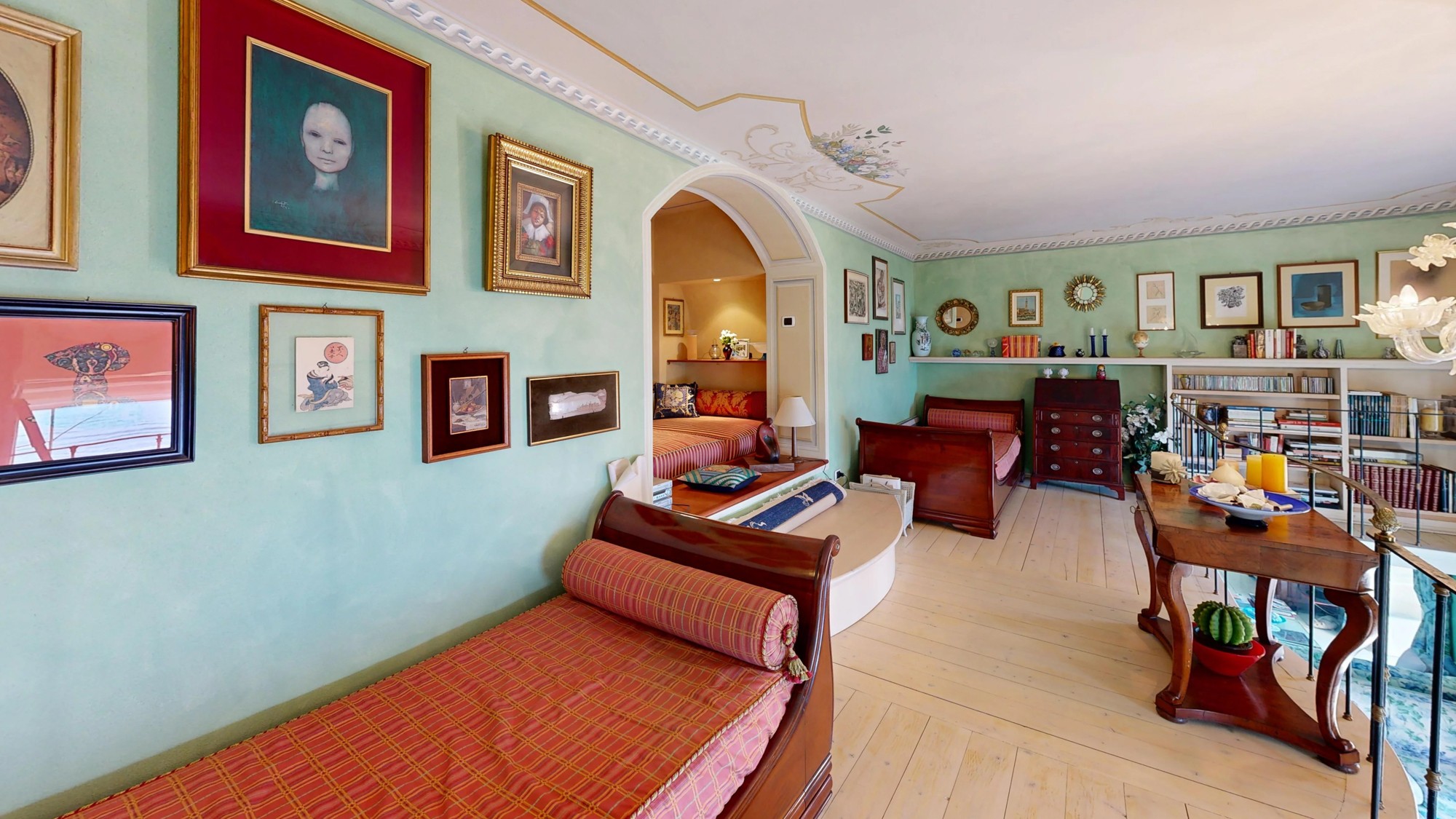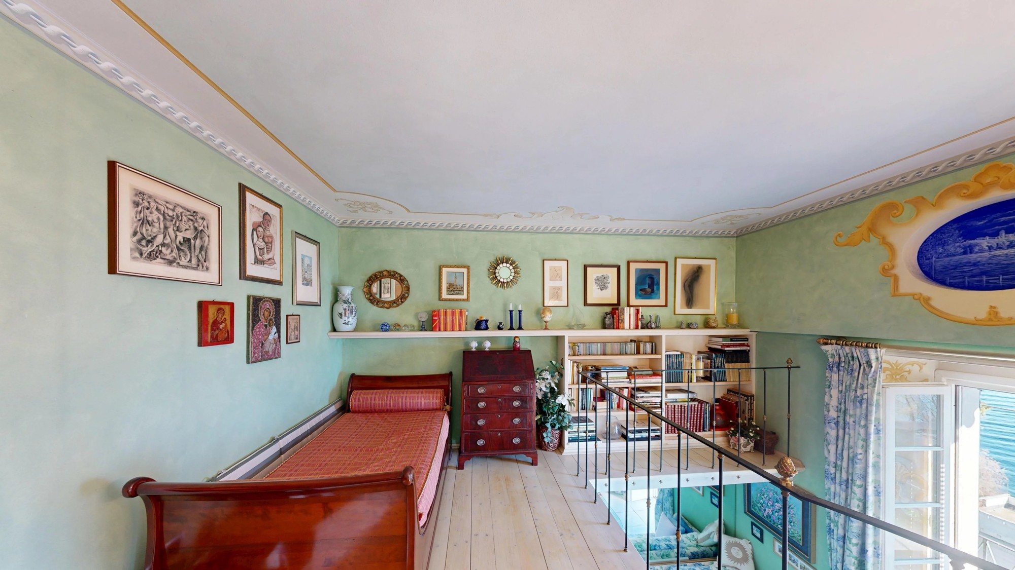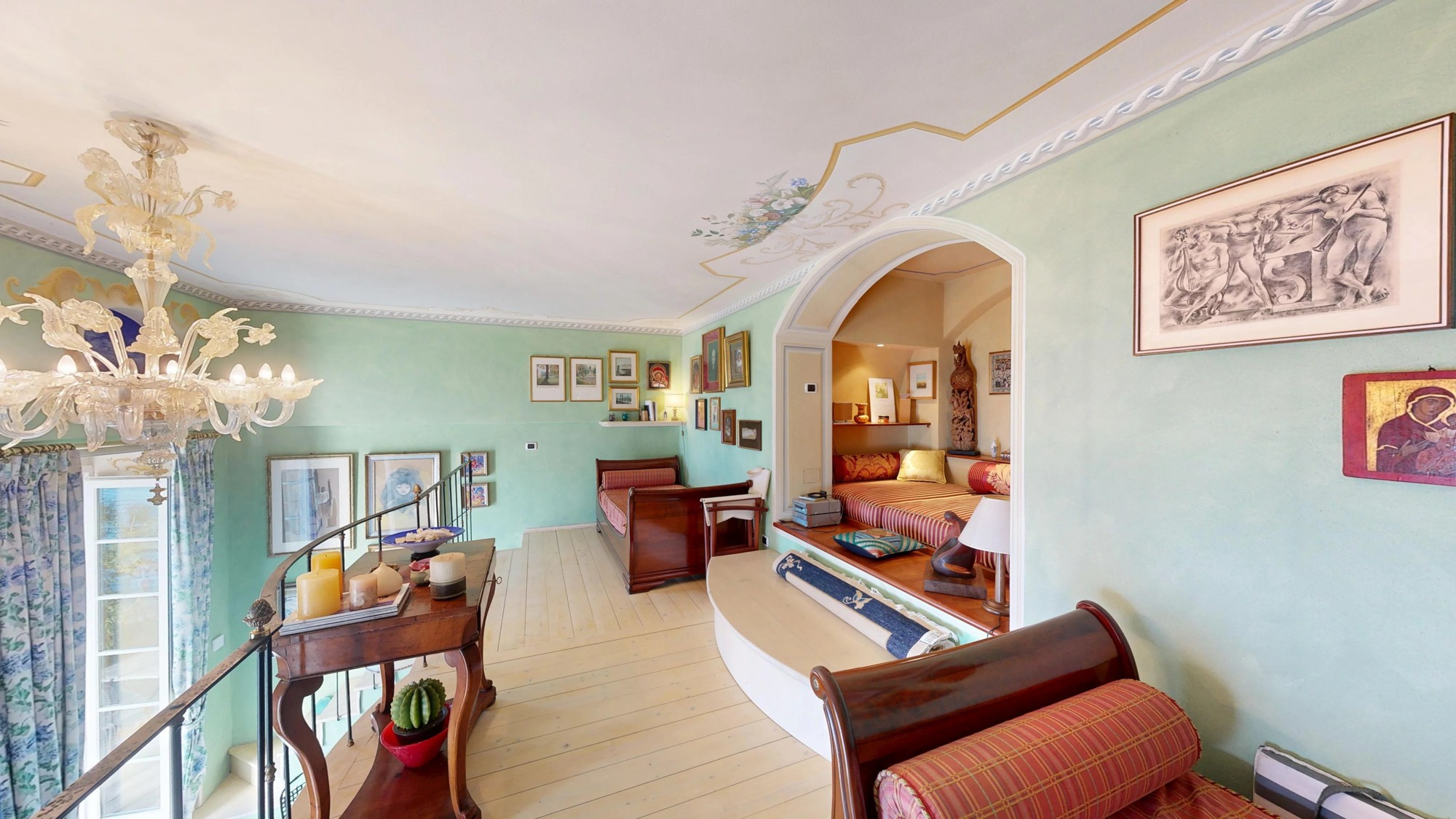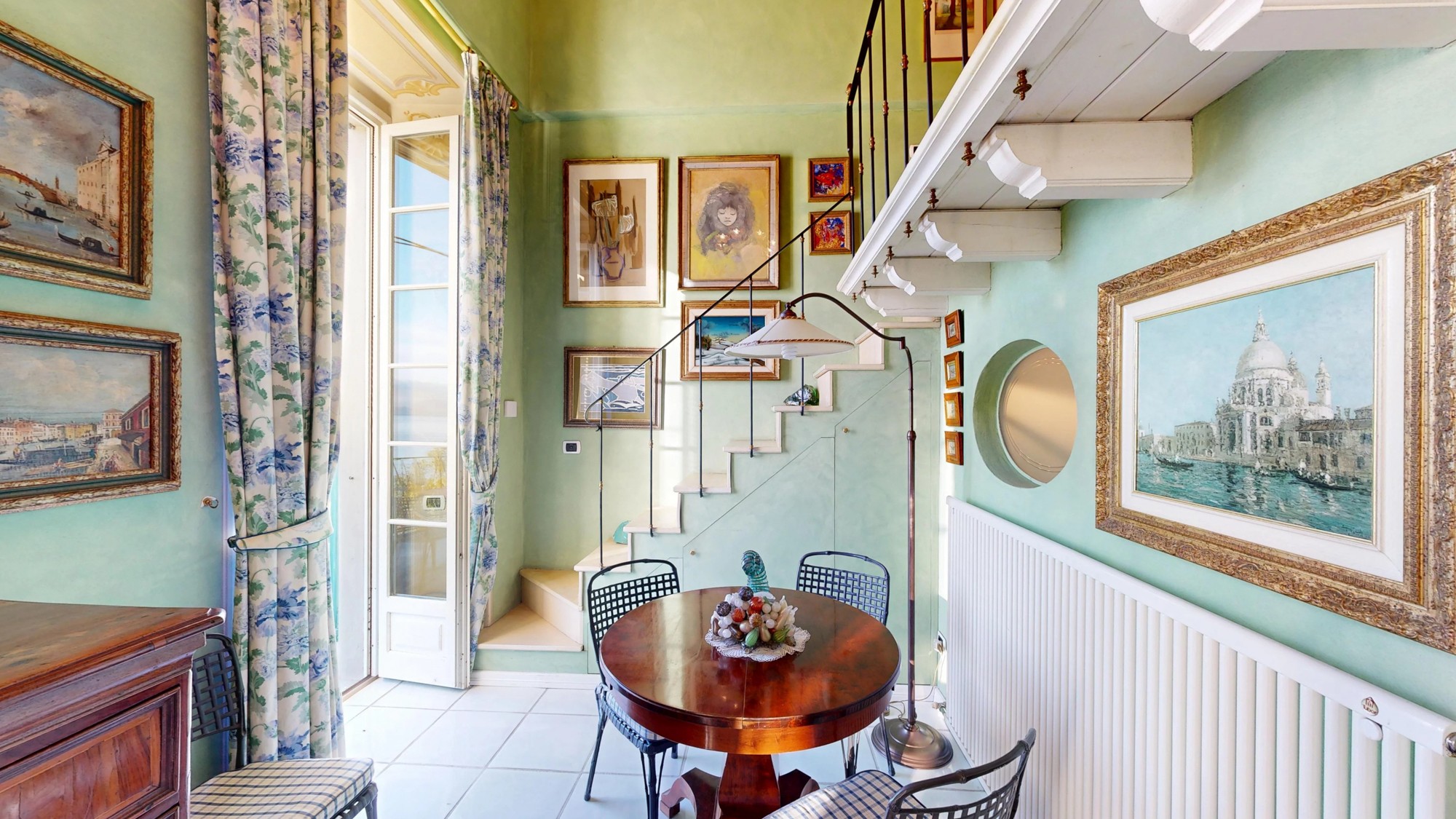 A Villa Azalea é uma das residências mais emblemáticas do século XIX na Via Striscie, Meina. O estúdio de aproximadamente 75 m² distribui-se por dois níveis, aproveitando ao máximo a altura original dos tetos da villa.