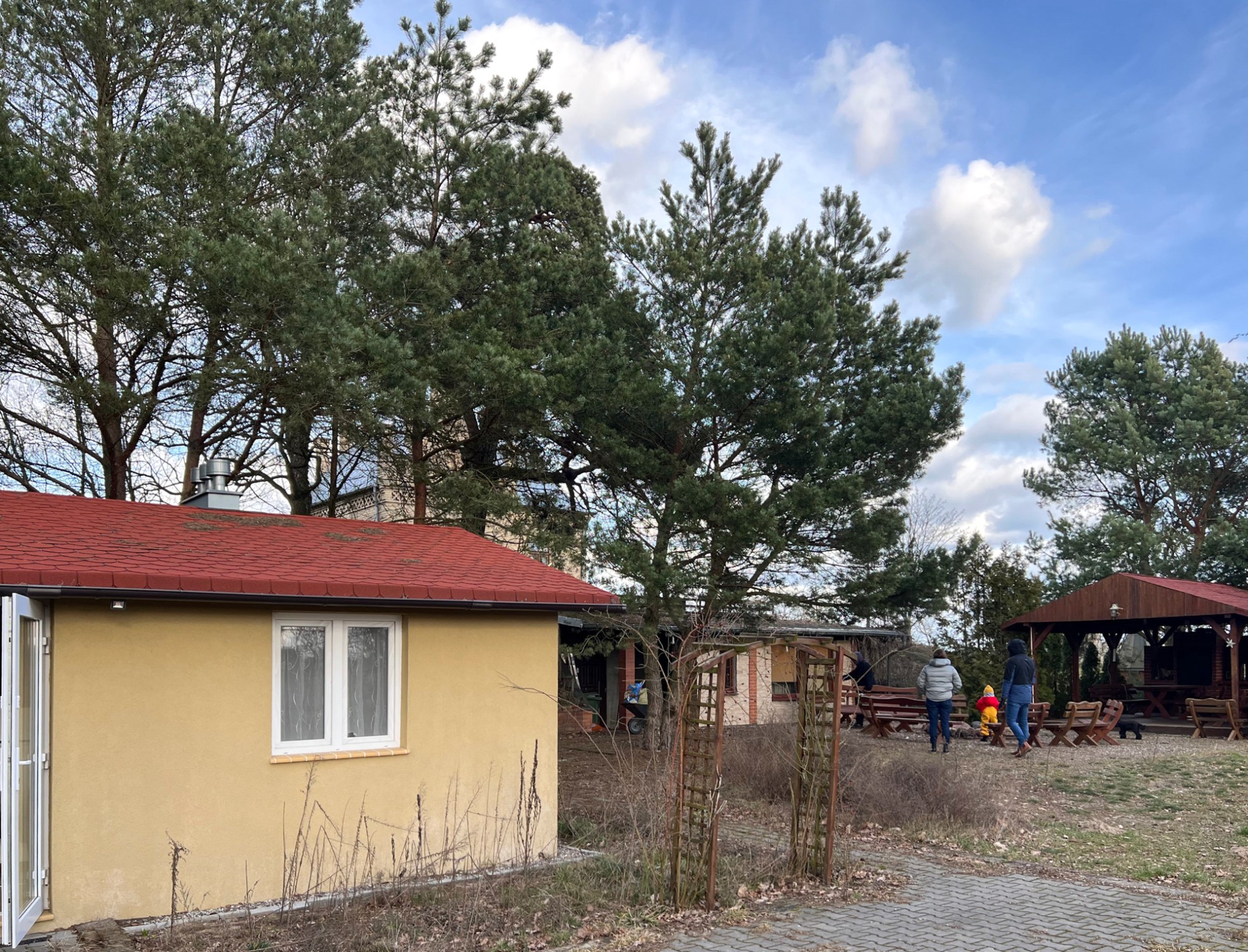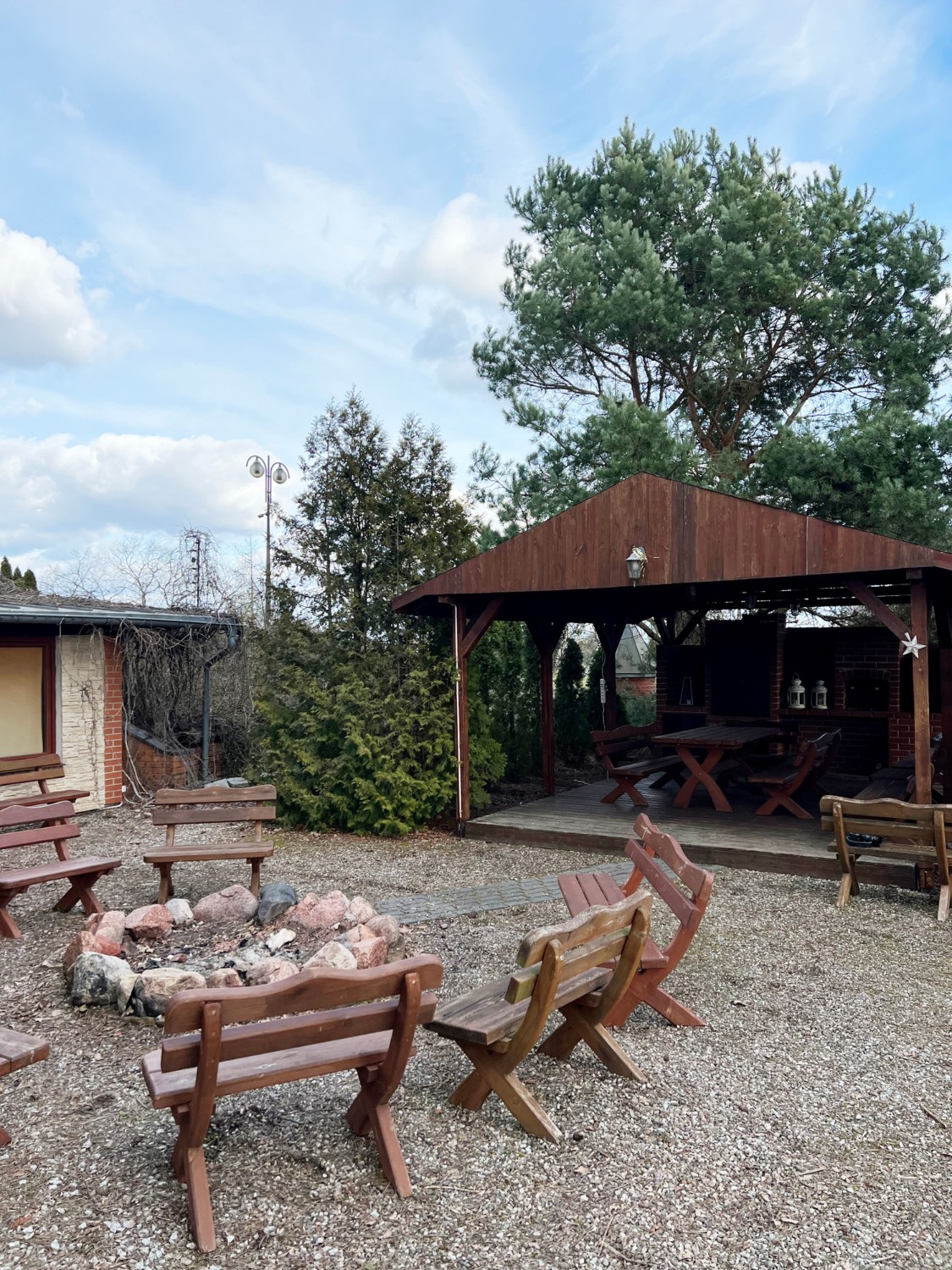 Nos terrenos vedados, encontra-se um pavilhão com churrasqueira e fumeiro, uma área de fogo ao ar livre e um anexo separado com quarto, casa de banho, cozinha e sala de estar.
