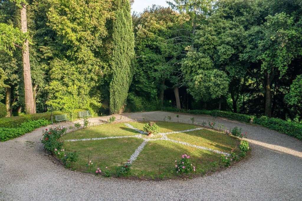 O jardim paisagístico inglês, com árvores centenárias e espécies raras, inclui caminhos, escadas, grutas e fontes. Uma limonaia independente de cerca de 150 m² mostra influências arquitetónicas da tradição Buontalenti-Del-Moro.
