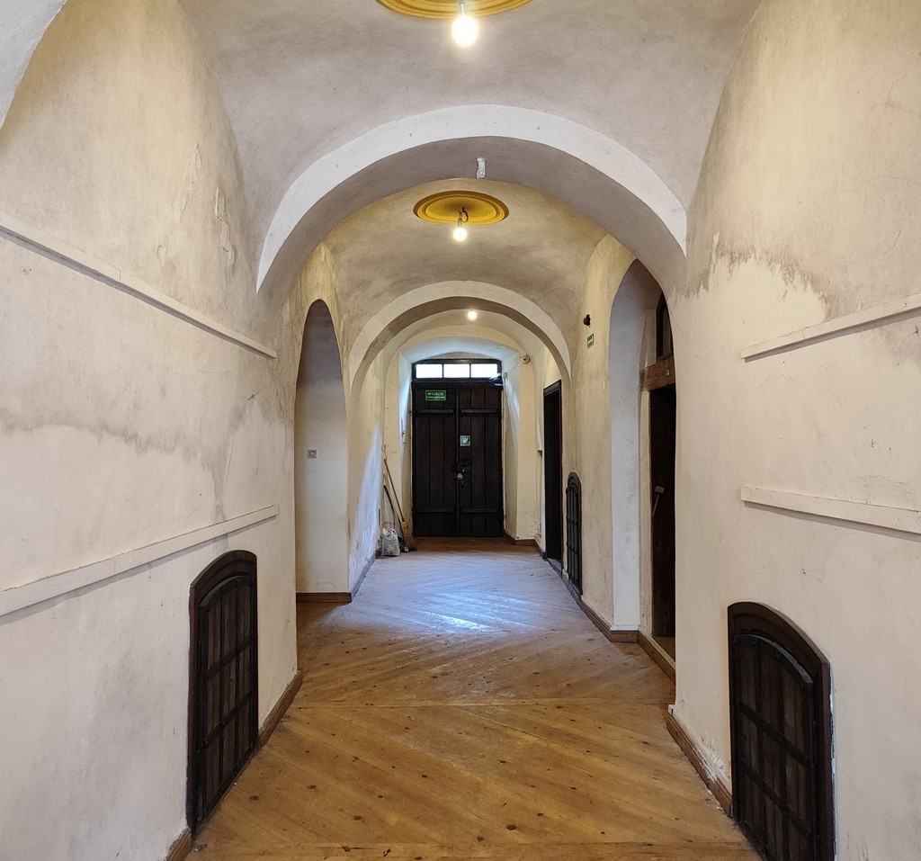 Este sólido edificio de ladrillo y piedra, con fachada enlucida, techo a mansarda y risalito central, combina de forma única elementos barrocos y clásicos de la arquitectura de pequeña ciudad polaca. Conserva detalles históricos como vigas originales, carpintería de madera y elegantes interiores burgueses del siglo XIX.
