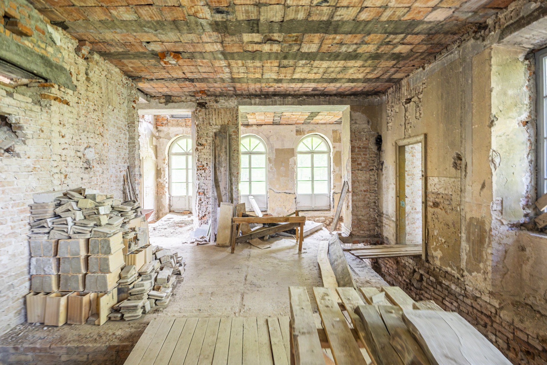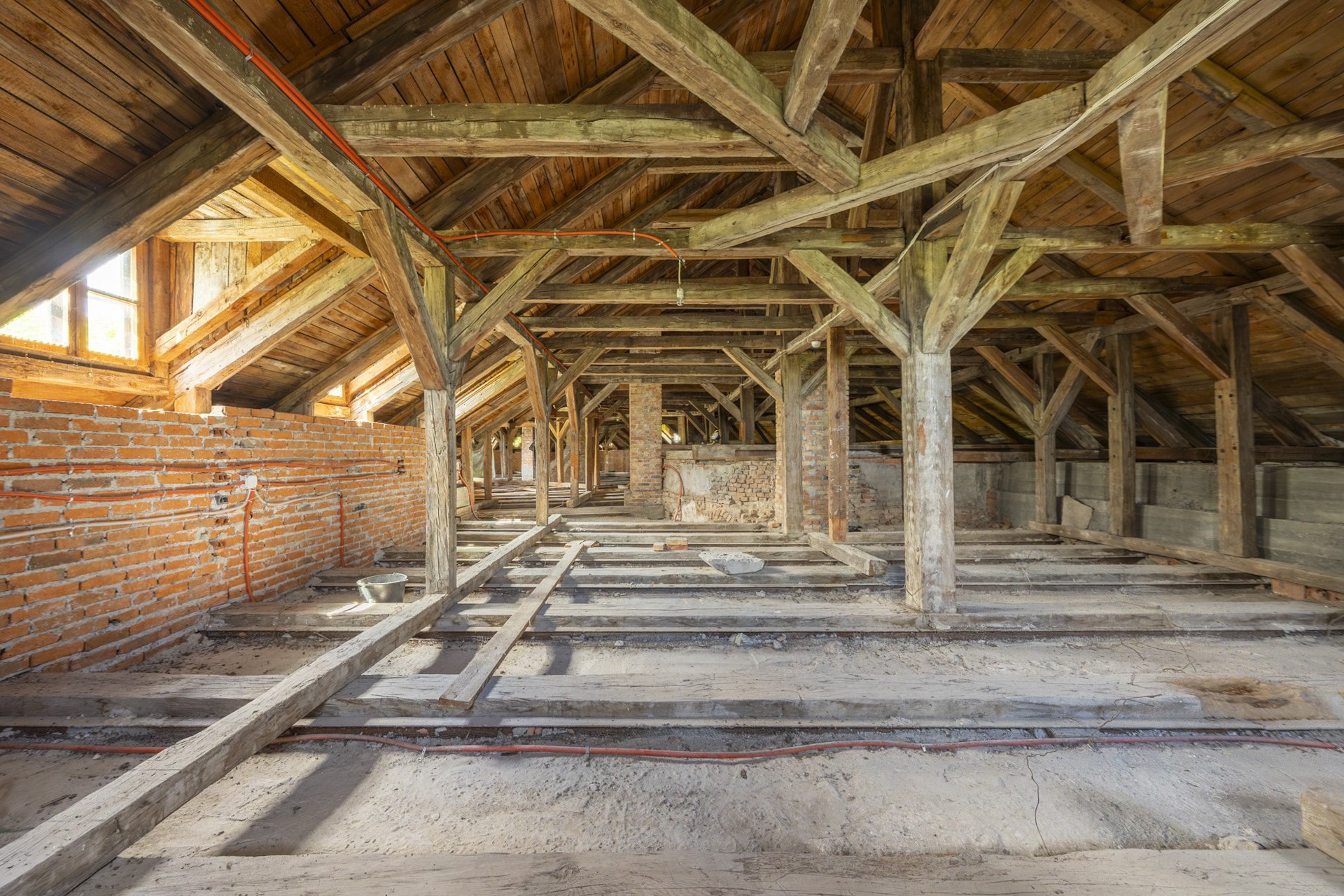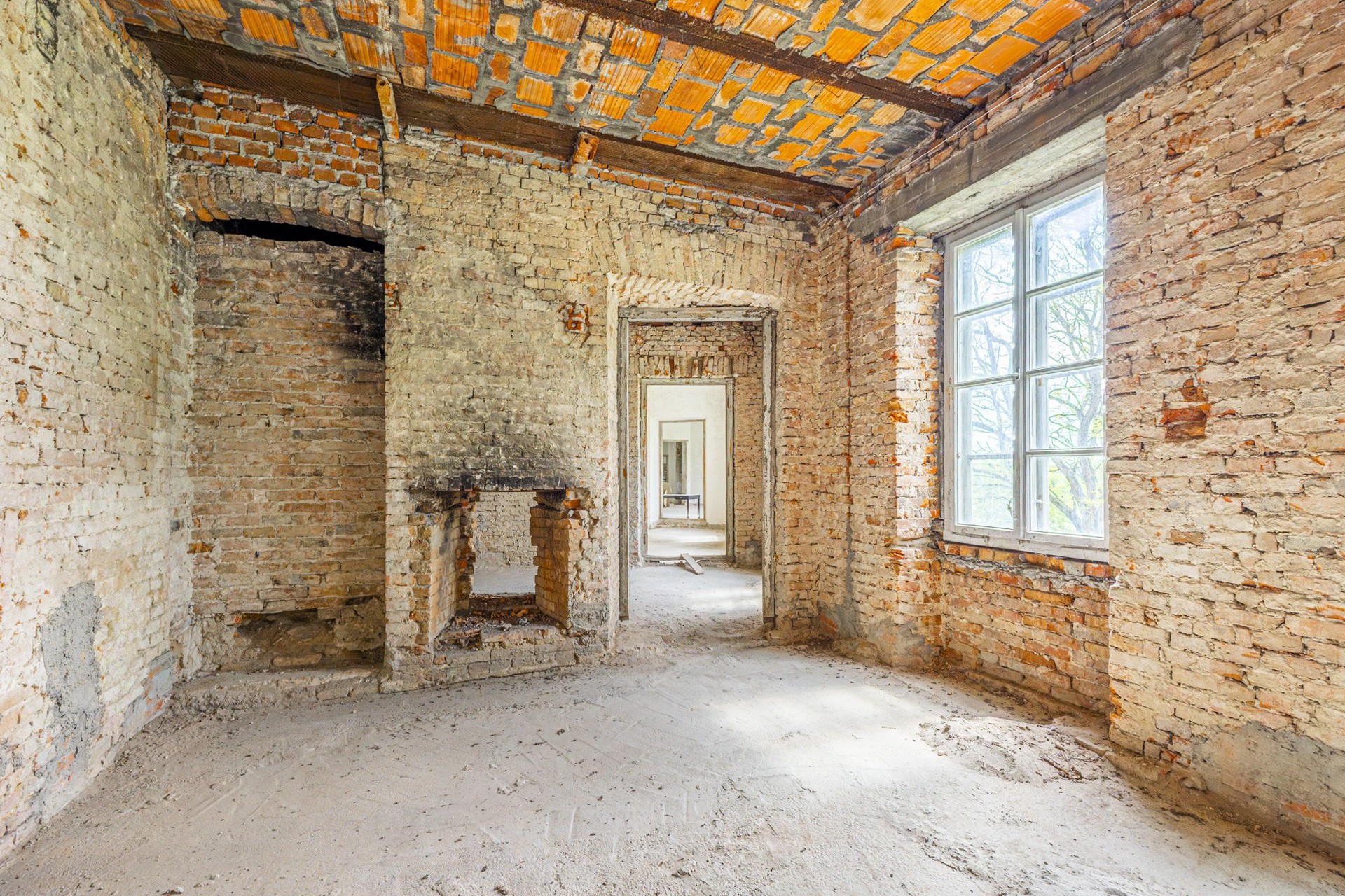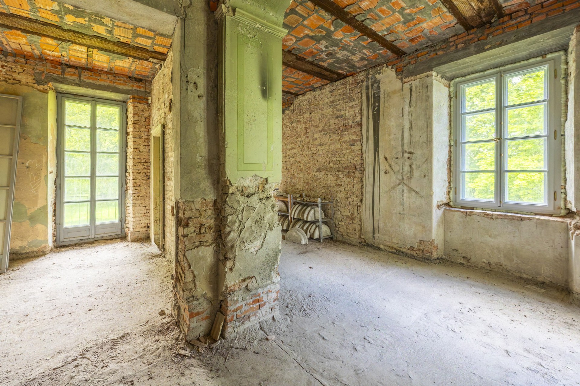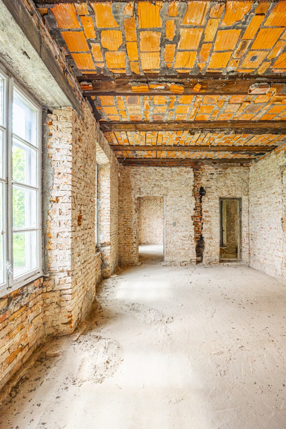A estrutura encontra-se estável, oferecendo uma base sólida para as obras de restauro previstas. Os tetos originais em vigas de madeira foram substituídos por lajes modernas em betão, e dez janelas foram renovadas de forma estilística com aprovação das autoridades de património. O telhado foi reparado e conservado. Além disso, conta com ligação elétrica e abastecimento próprio de água através de um poço.