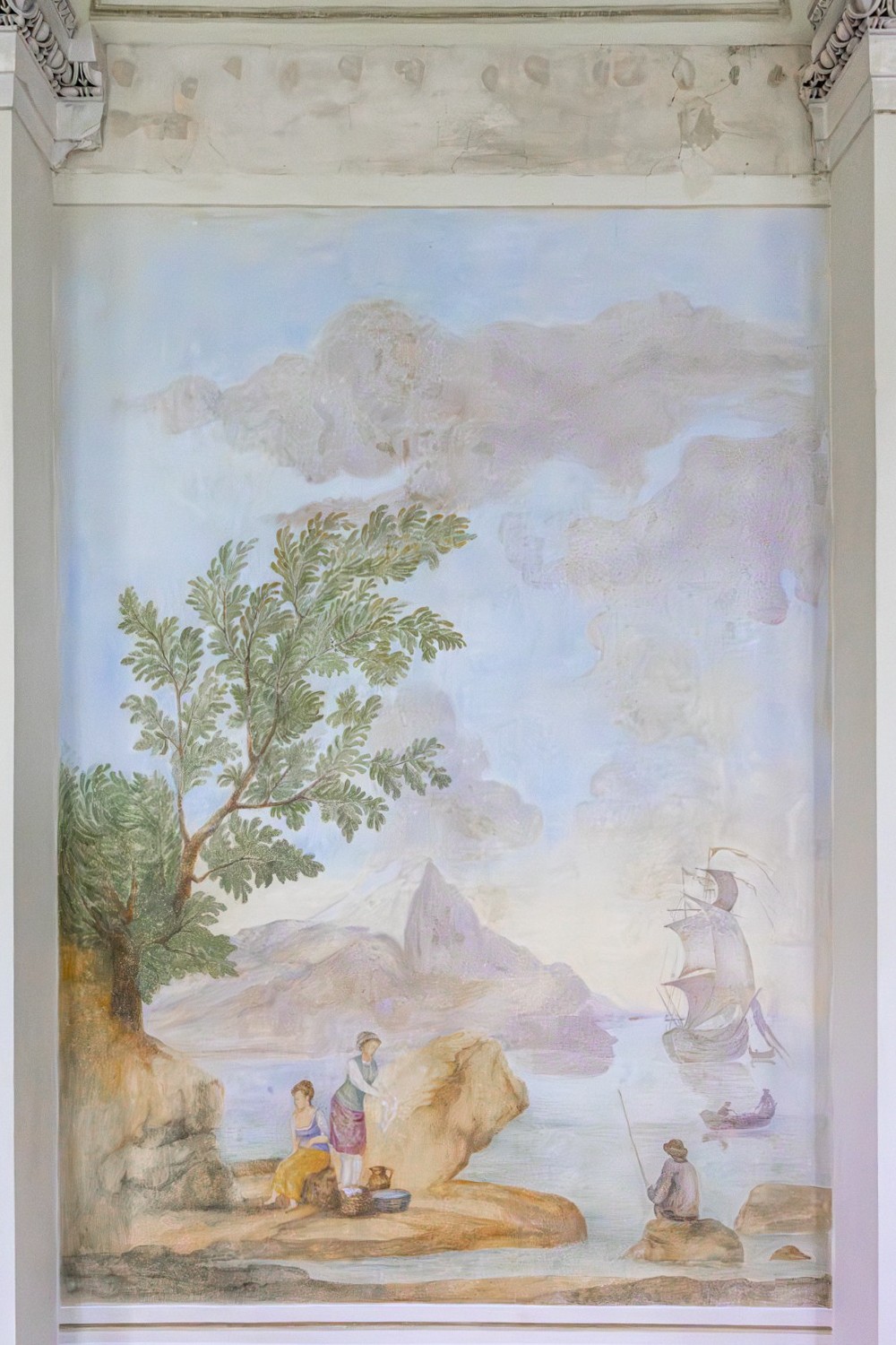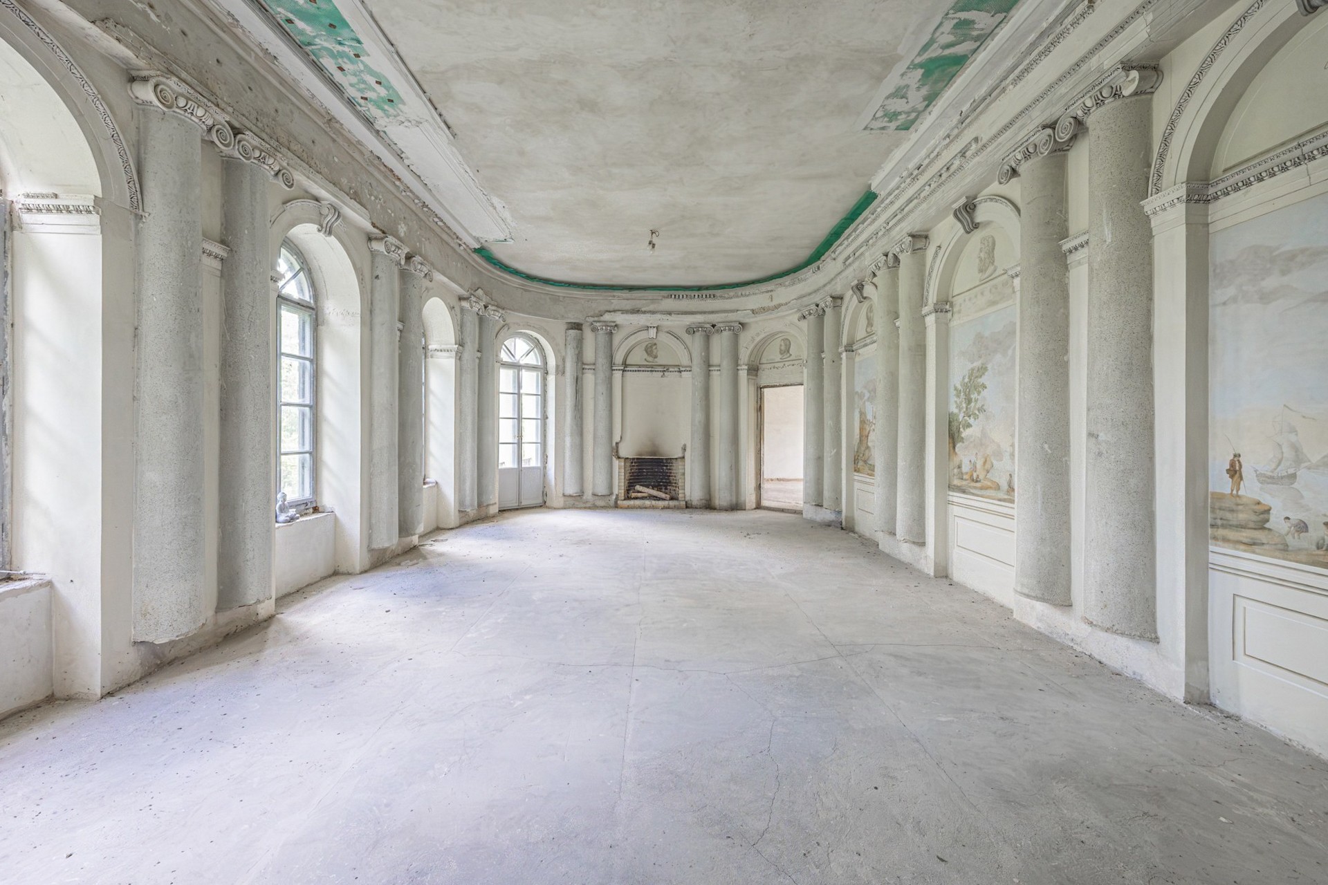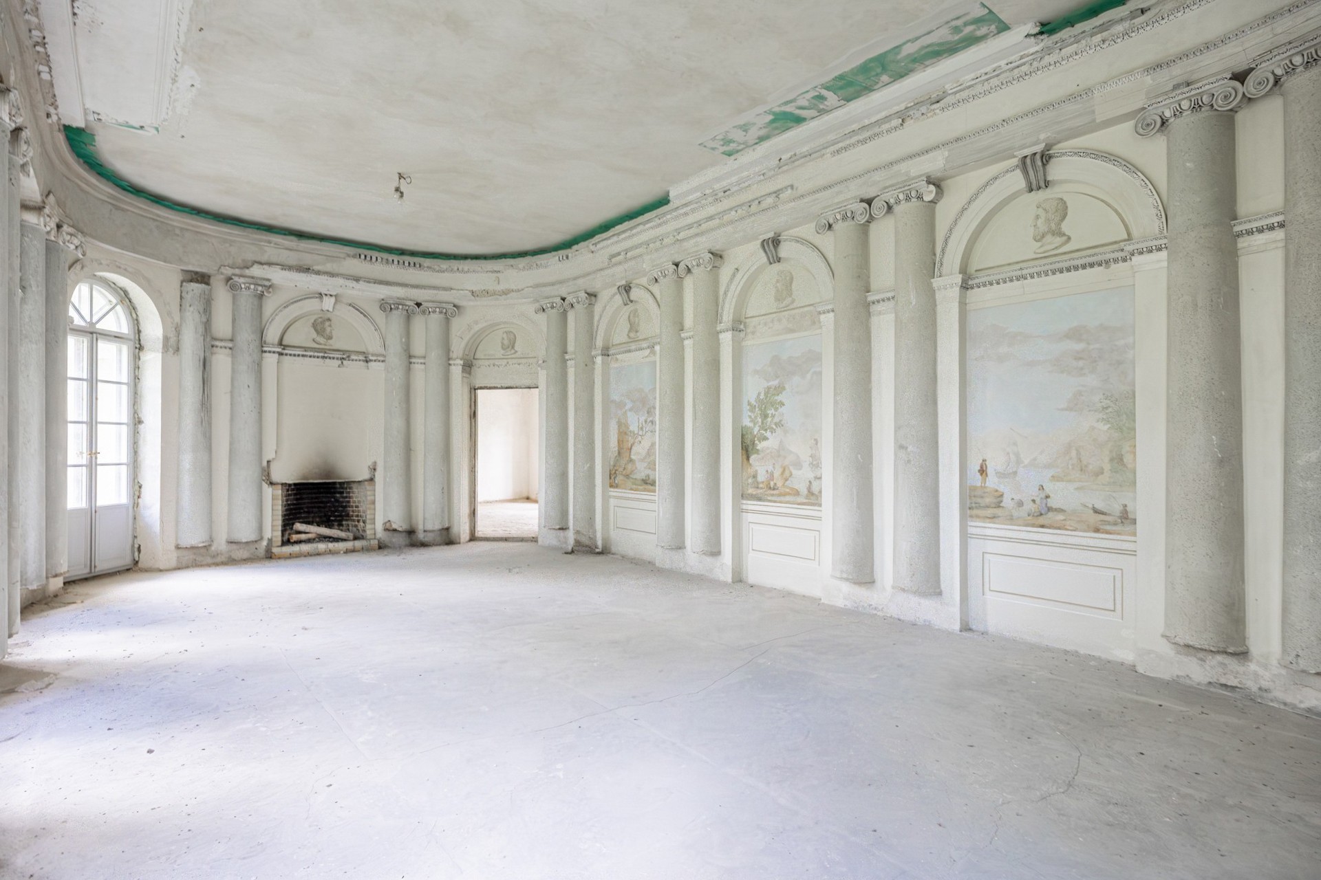 No piso superior encontravam-se as salas representativas, incluindo uma grande sala de jantar e um salão de baile com colunas semicirculares de mosaico. O salão de baile foi parcialmente restaurado, tendo sido renovadas as pinturas murais e substituídas as janelas.