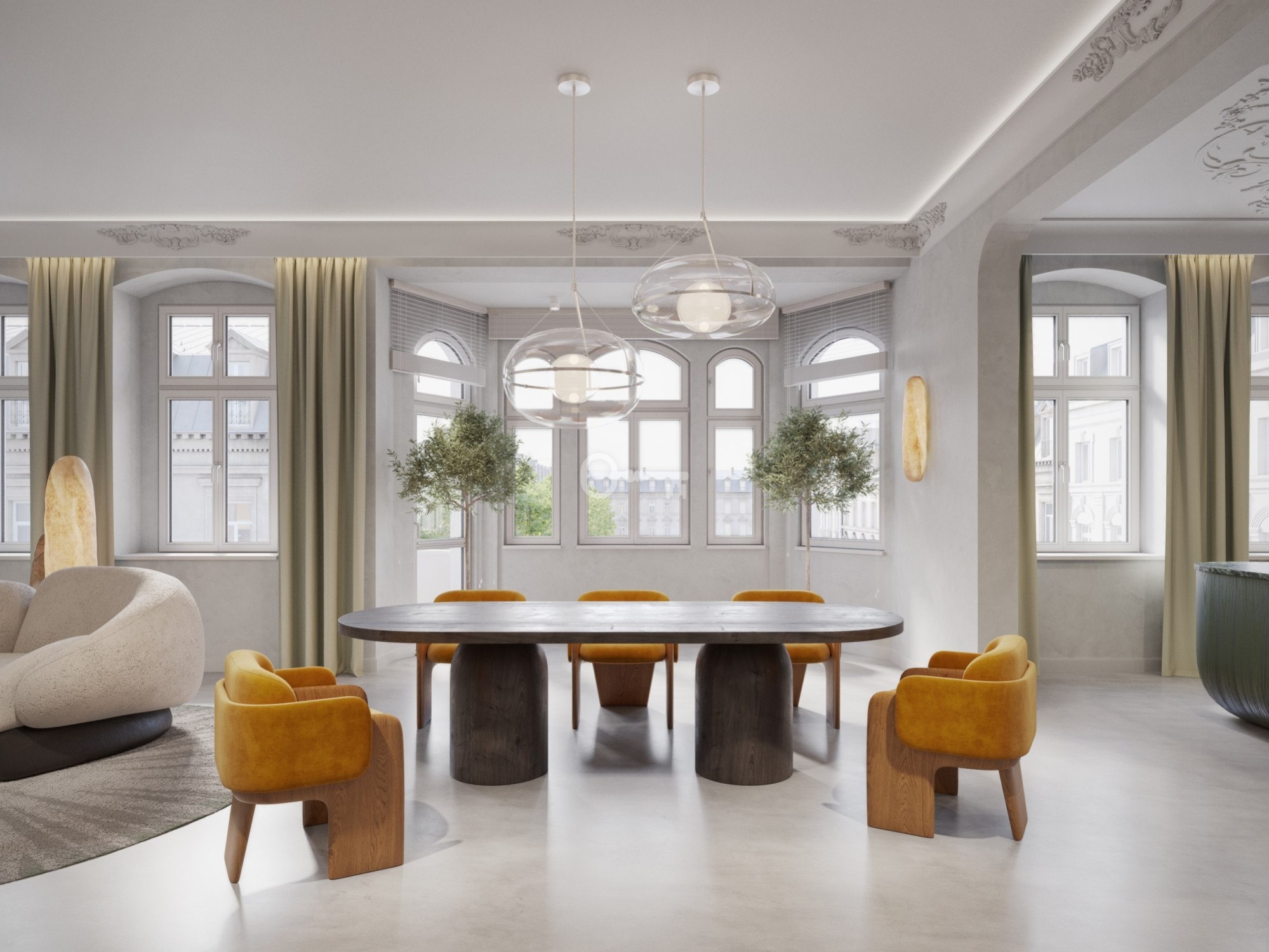 O apartamento de 67 m² está situado num edifício histórico reabilitado de 1899 no centro de Wrocław. A altura do teto atinge até 2,75 m. O imóvel dispõe de dois quartos, varanda, piso radiante, ar condicionado, porta de entrada em carvalho e arrecadação. O aquecimento é fornecido por rede urbana.