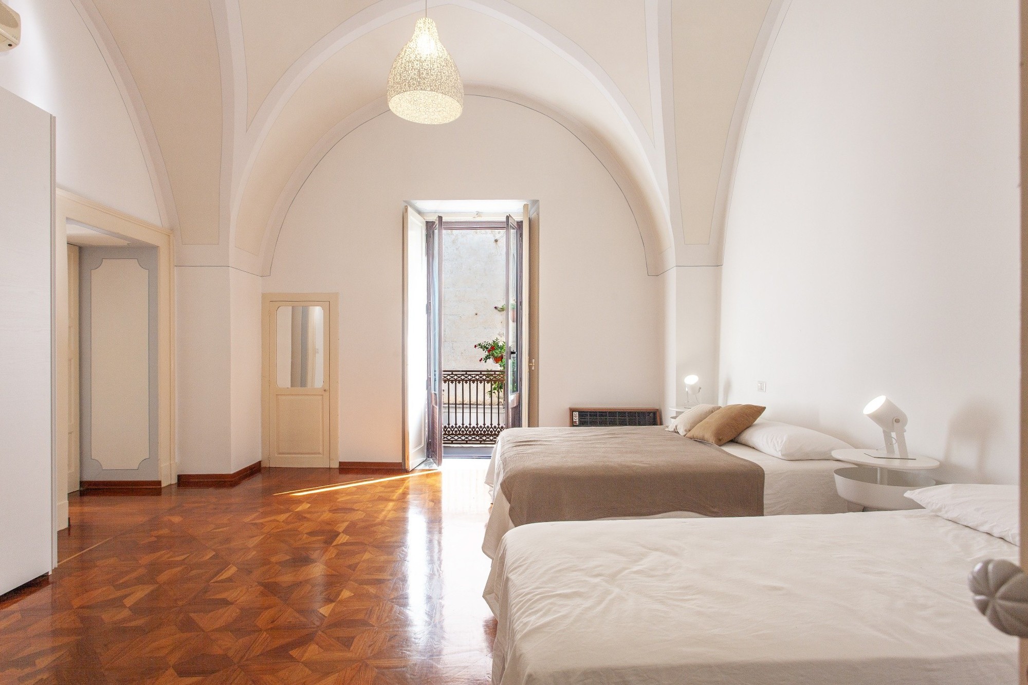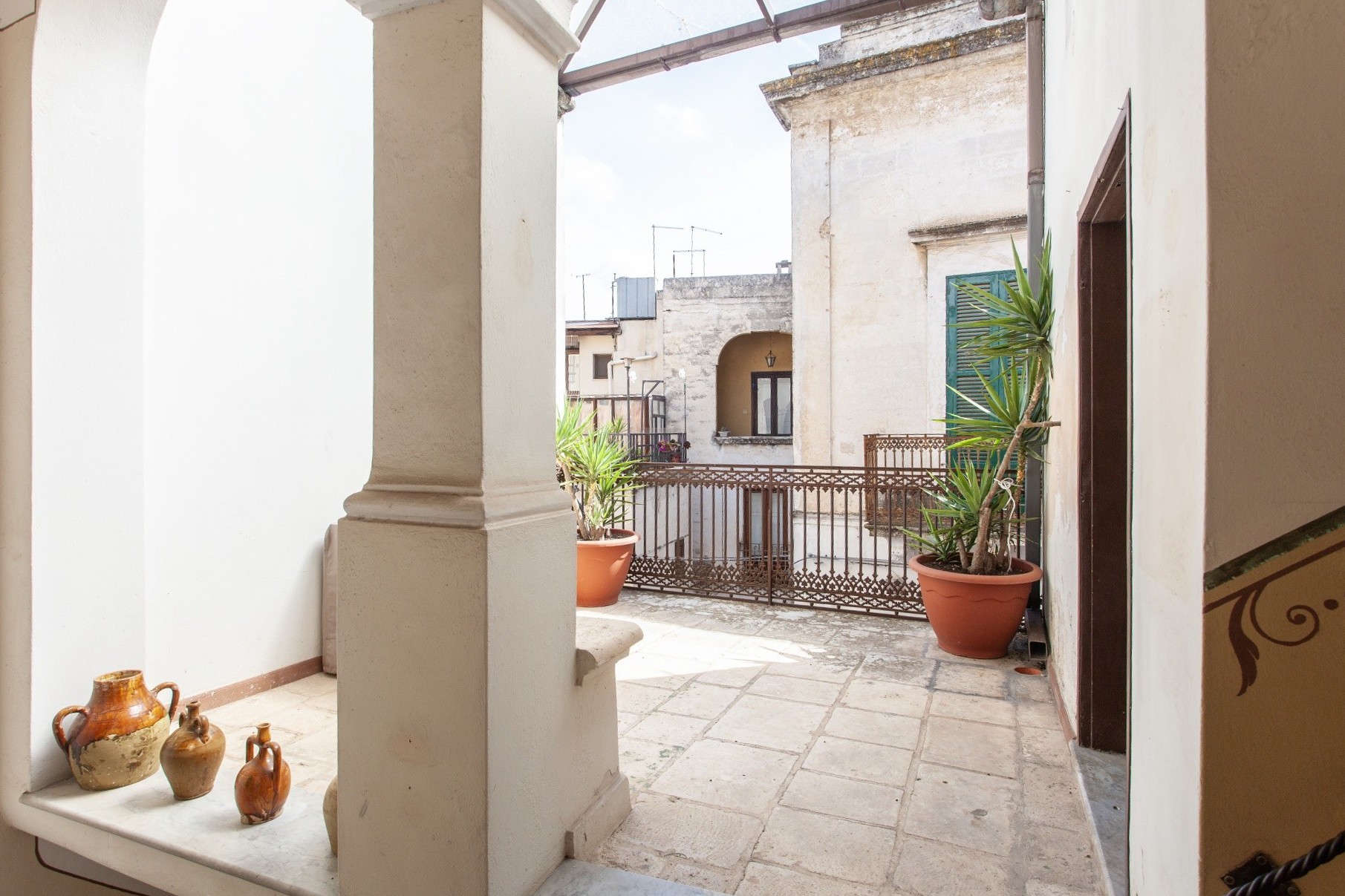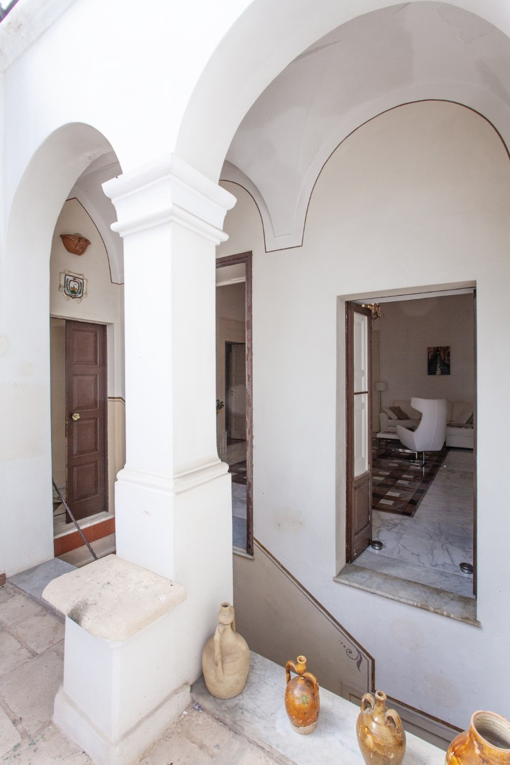 A área de estar abre com uma sala espaçosa com teto abobadado e fresco, ligada a uma sala de jantar luminosa e à cozinha com lavandaria. A zona de descanso dispõe de três quartos e dois casas de banho. Uma pequena varanda coberta oferece vistas sobre o centro histórico, ideal para desfrutar do pequeno-almoço com tranquilidade. Um dos quartos inclui também uma varanda privada.