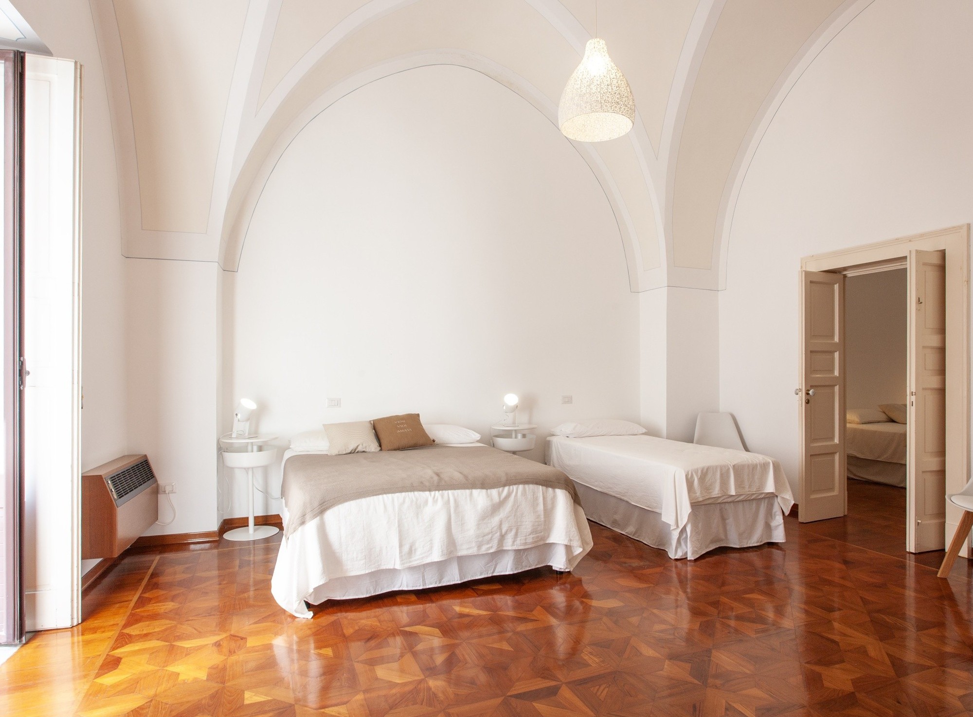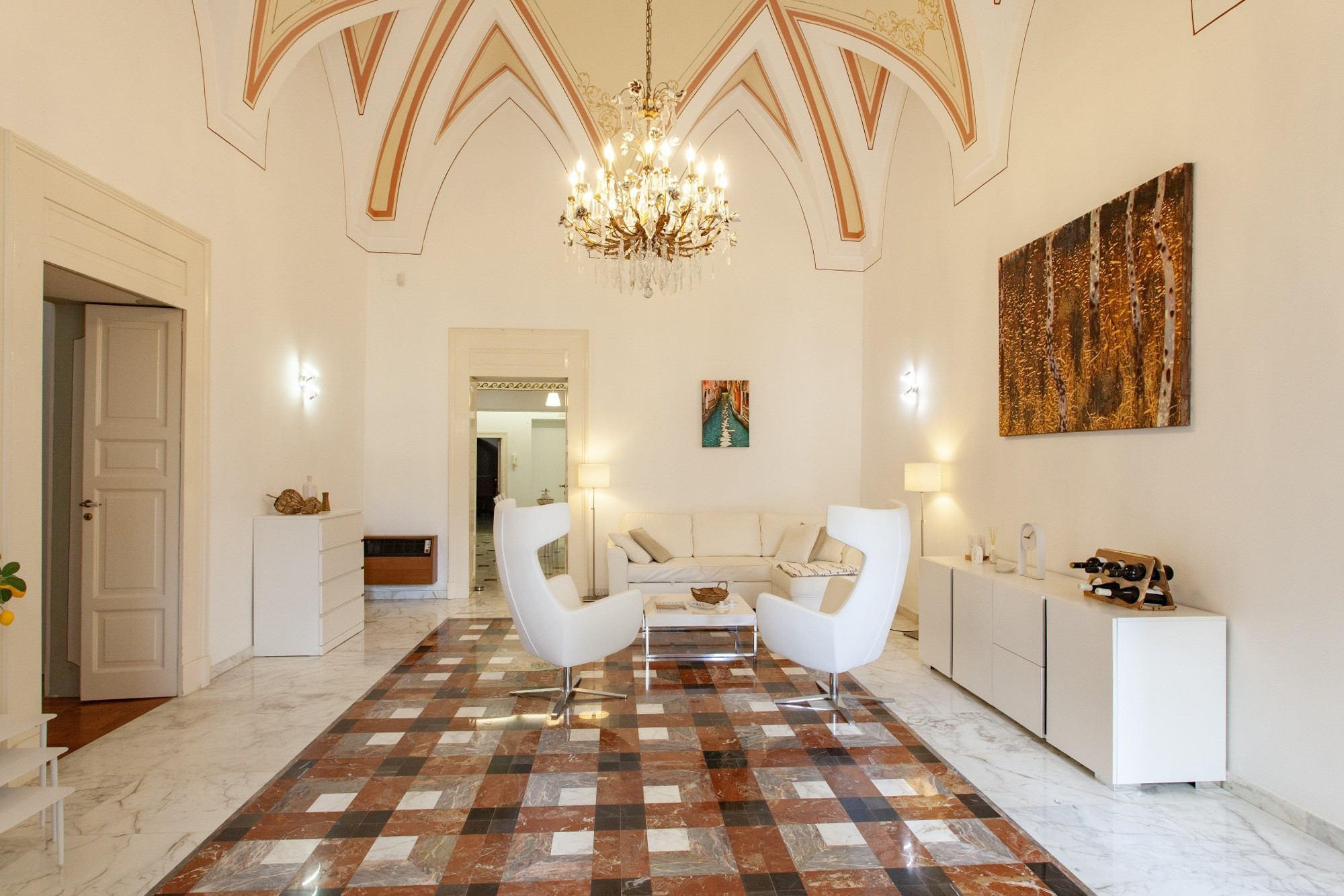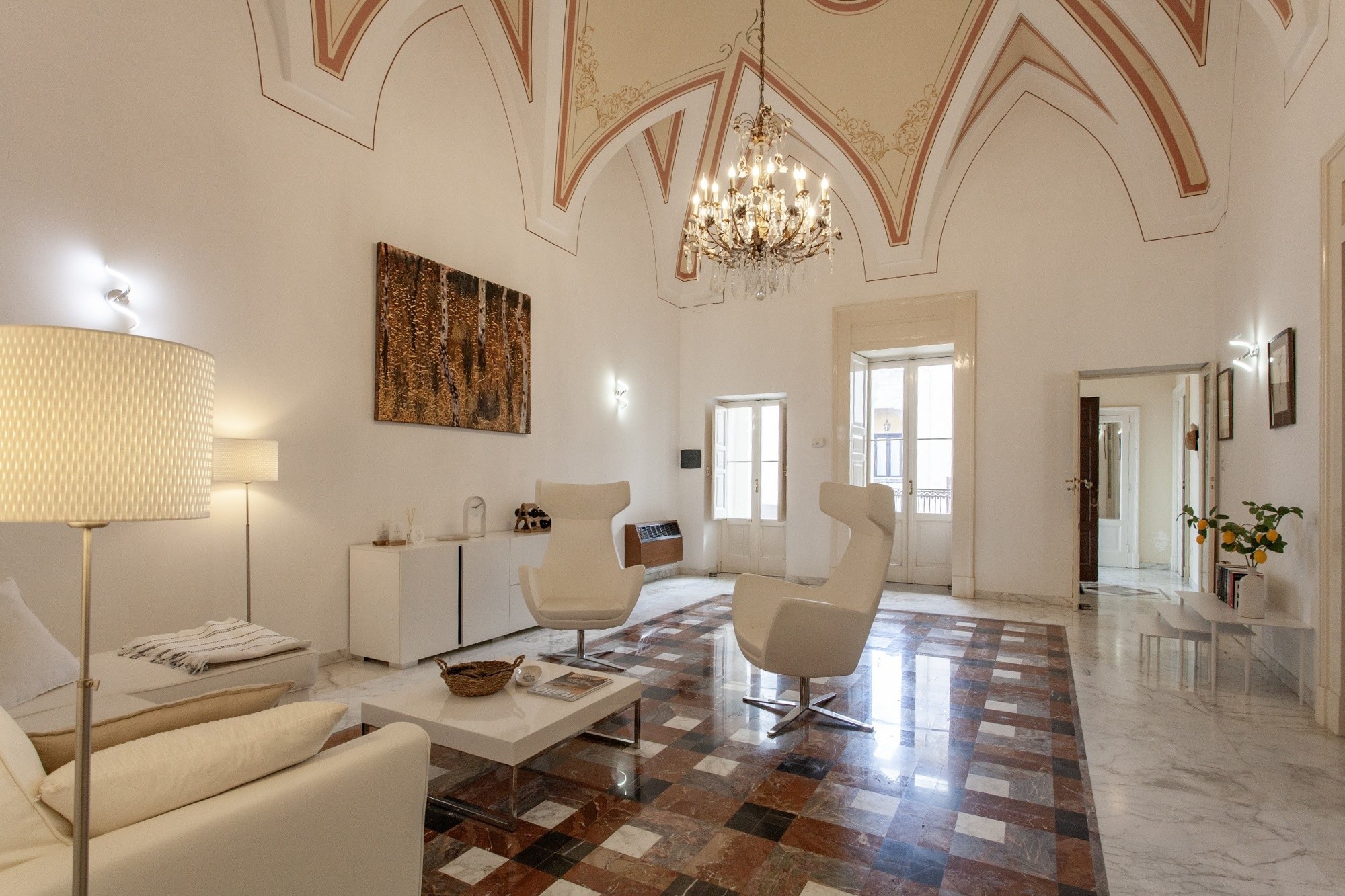 A residência principal situa-se no primeiro andar e tem 167 m² distribuídos num único nível. Os interiores preservam o carácter da arquitetura local, com abóbadas estreladas, de canhão e de luneta, algumas delicadamente decoradas com frescos. A mobília moderna e minimalista complementa os elementos históricos. Os pavimentos combinam mármore colorido e parquet.