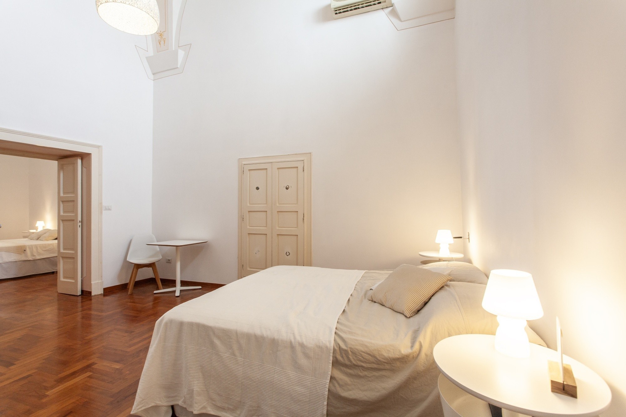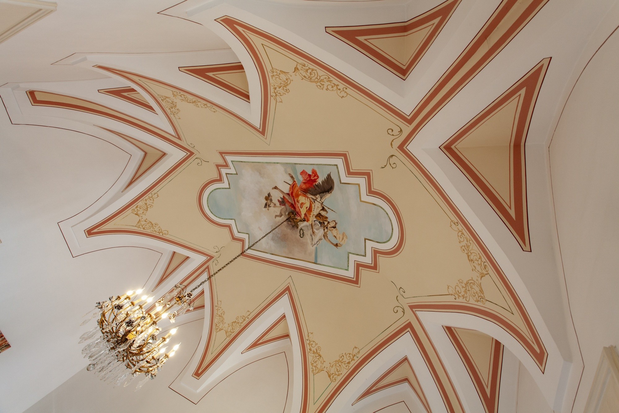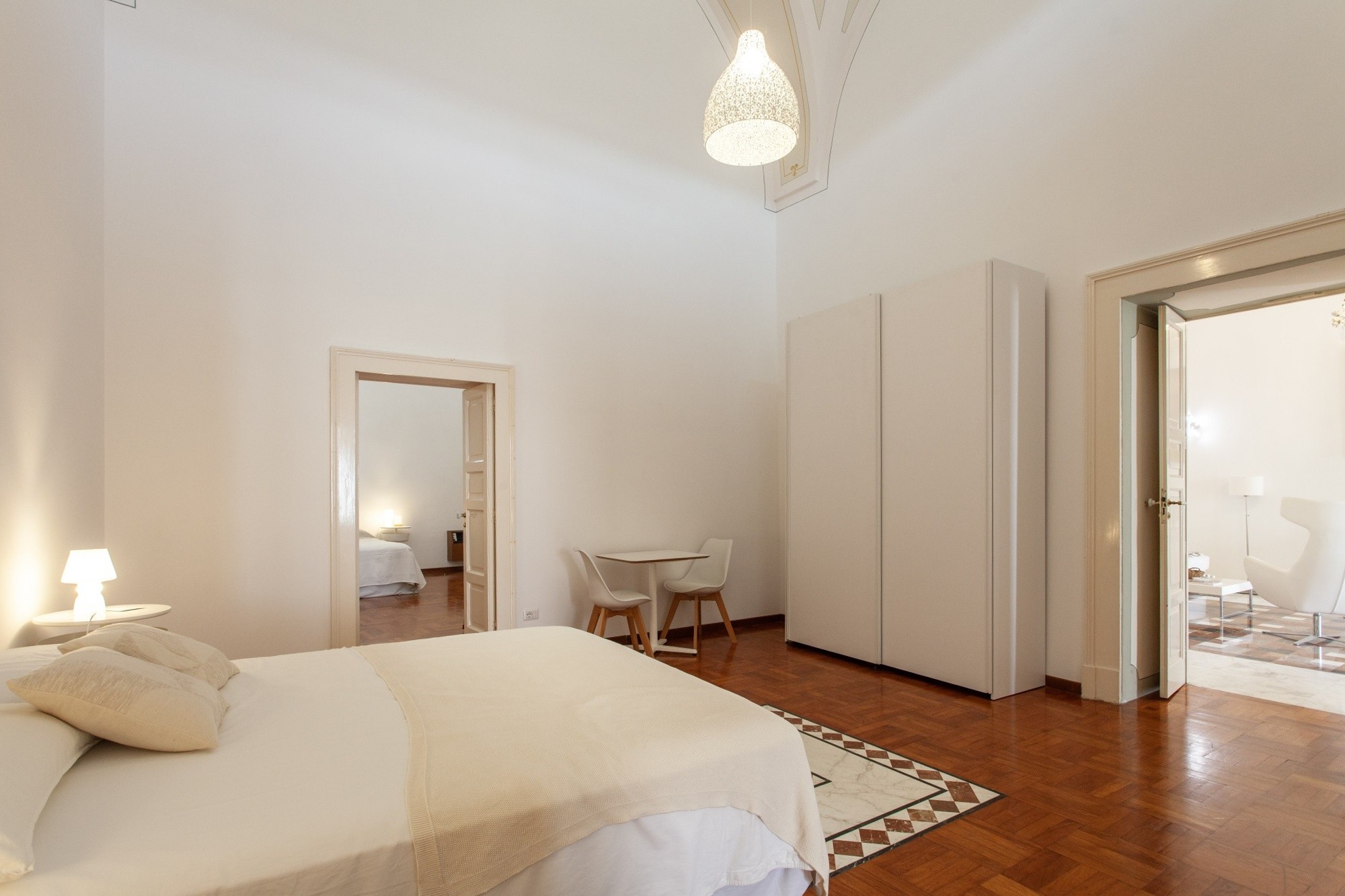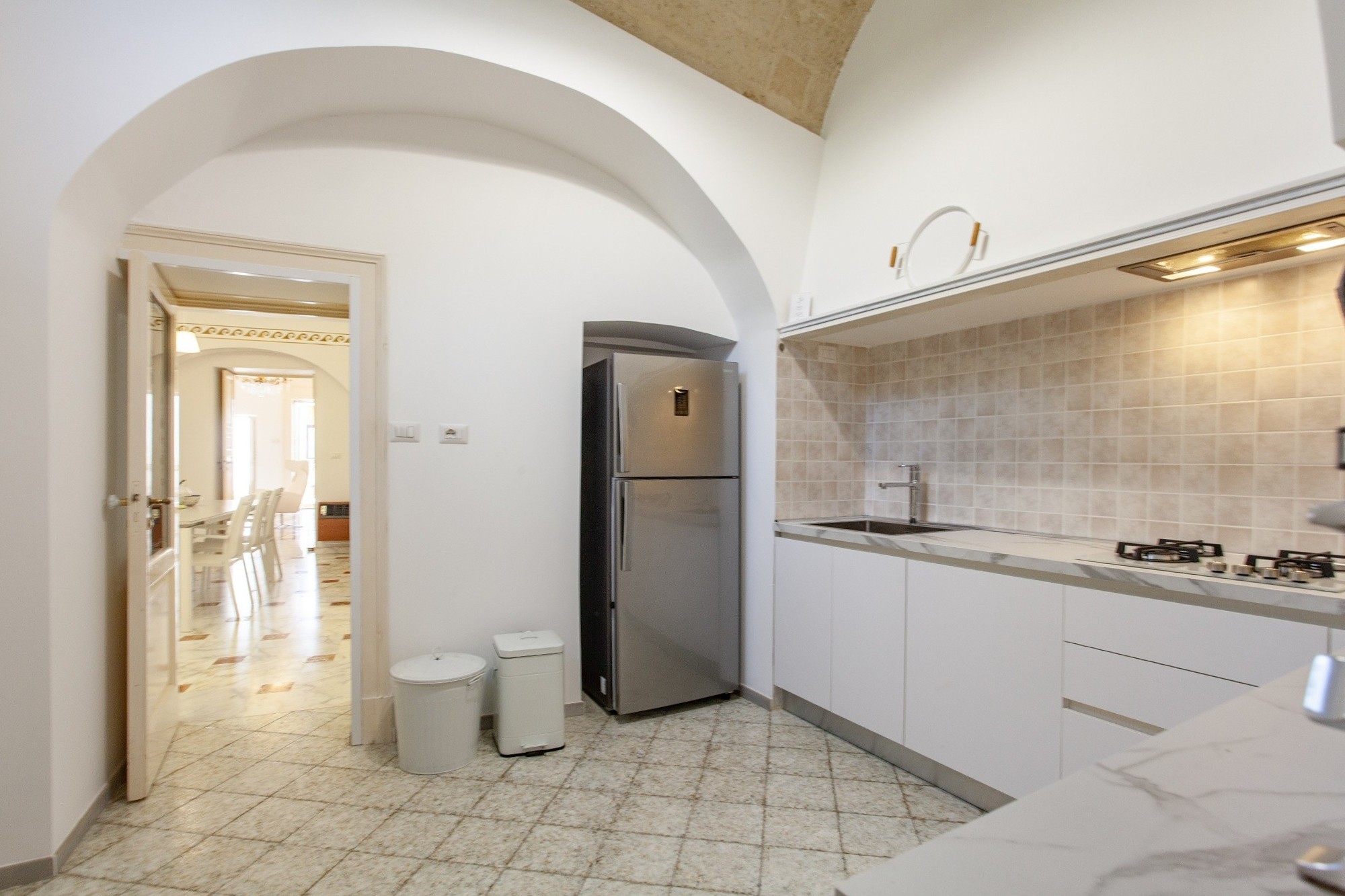 A residência principal situa-se no primeiro andar e tem 167 m² distribuídos num único nível. Os interiores preservam o carácter da arquitetura local, com abóbadas estreladas, de canhão e de luneta, algumas delicadamente decoradas com frescos. A mobília moderna e minimalista complementa os elementos históricos. Os pavimentos combinam mármore colorido e parquet.