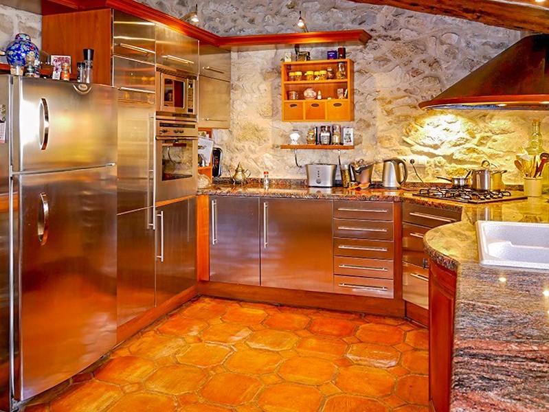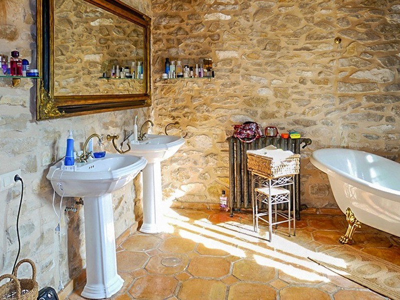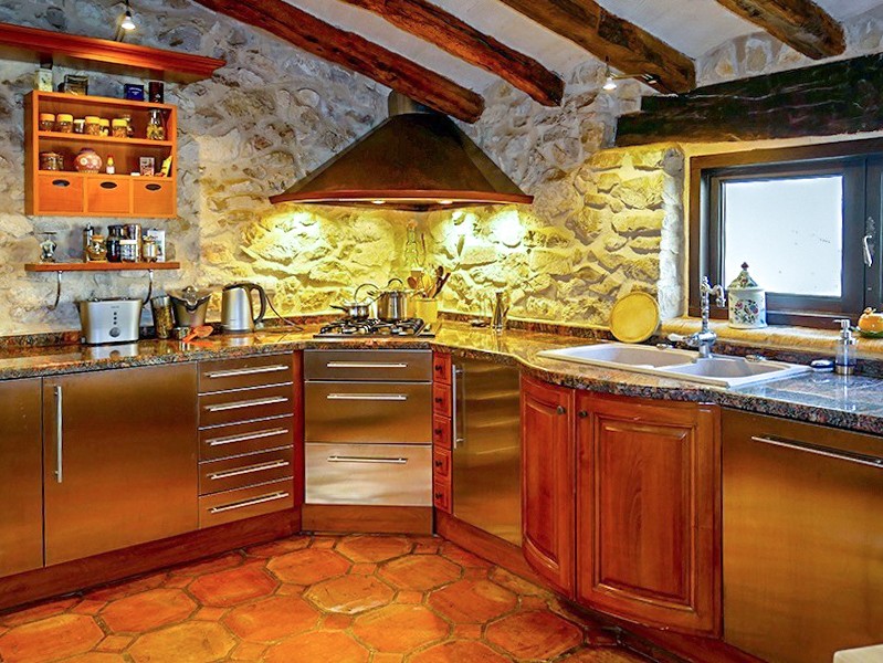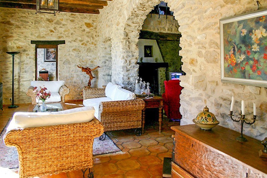 A renovação incluiu a restauração das vigas originais em carvalho, pavimentos artesanais e portas de madeira antigas. O aquecimento central é da marca Roca. As paredes em pedra natural, os tectos altos e os espaços de estar abertos caracterizam o interior.