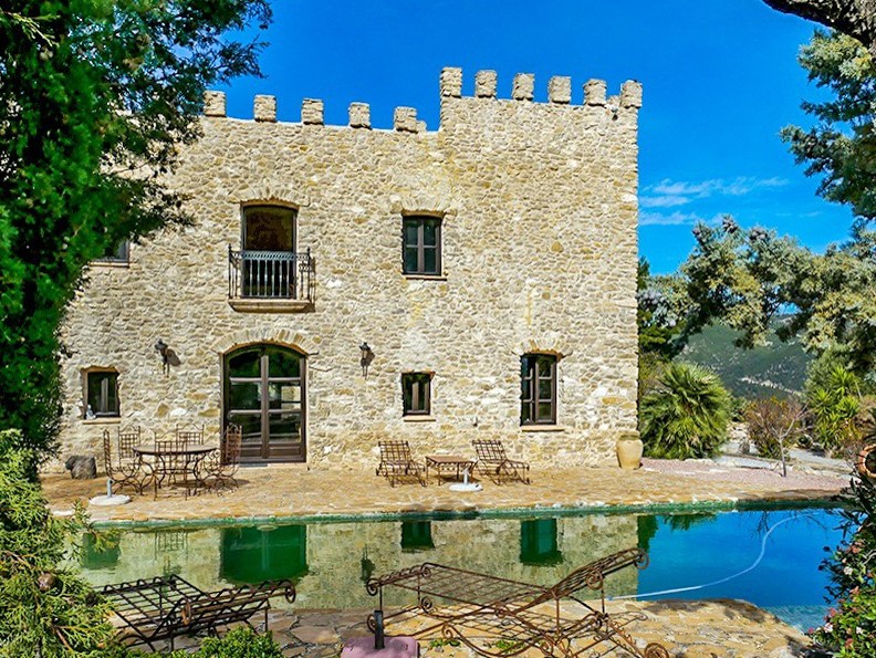 O terreno cobre 40 hectares e inclui um campo de ténis, uma cozinha exterior e uma adega. A utilização comercial – por exemplo como espaço para eventos – ainda não foi autorizada; os procedimentos administrativos necessários são da responsabilidade do comprador.