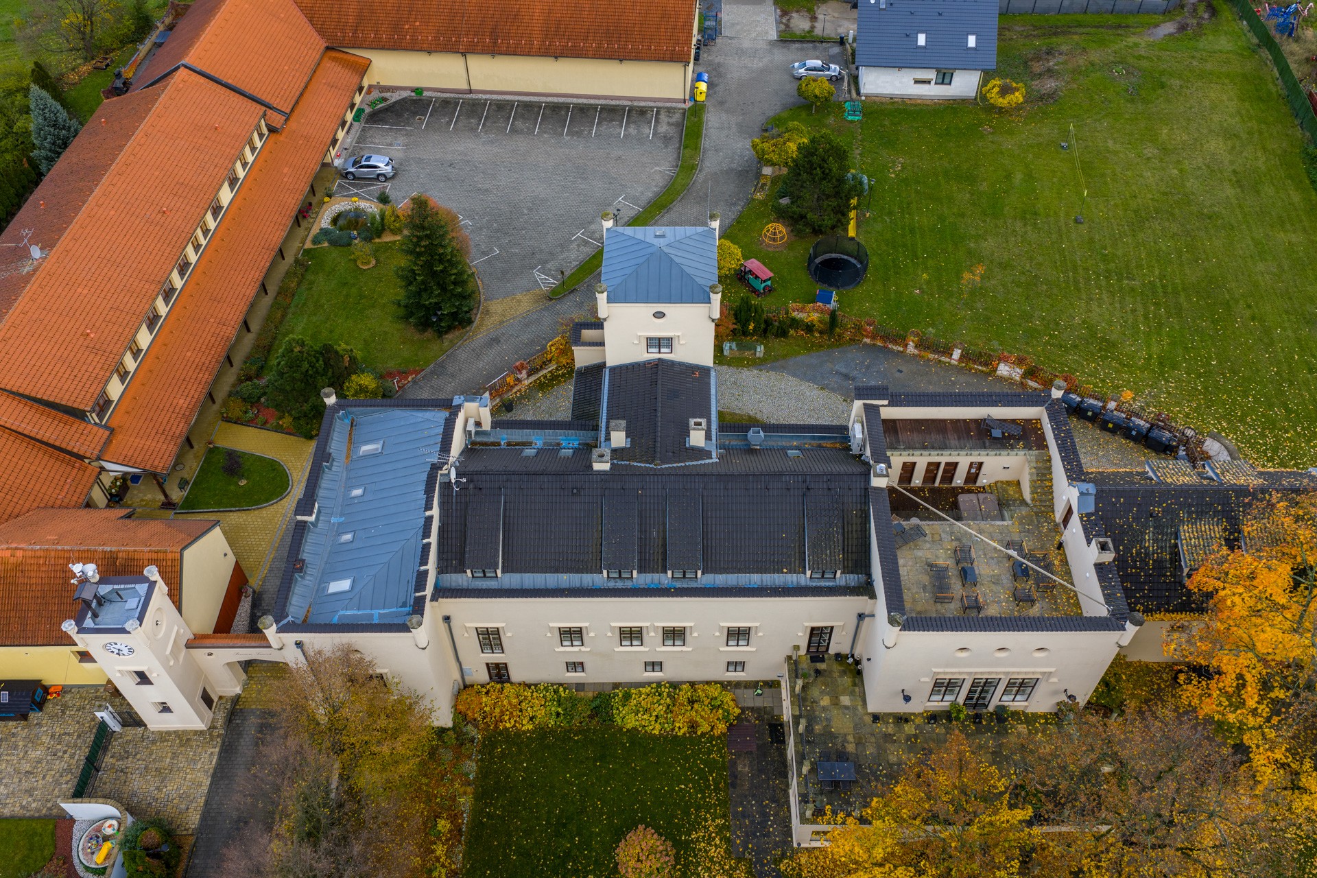 Em 2007, o castelo passou por uma reconstrução completa, visto que se encontrava em estado crítico. Em 2021, realizou-se uma renovação profunda de todos os espaços e da fachada. O castelo está equipado com um sistema de aquecimento moderno e eficiente baseado em bombas de calor ar-água, garantindo operação económica e ecológica. Para situações extraordinárias ou temperaturas extremamente baixas, há caldeiras elétricas de reserva. Na reconstrução foram utilizados materiais da mais alta qualidade, garantindo durabilidade, fácil manutenção e perfeição estética. Parquet de carvalho, azulejos cerâmicos, ladrilhos de tijolo autêntico, vigas de madeira maciça rústica e pavimentos vinílicos (em áreas de manutenção), louças e acessórios premium da marca Bath Deluxe, iluminação personalizada, lustres da mundialmente famosa oficina Wranovský, luminárias espanholas Mantra, mobiliário da icónica marca TON e da dinamarquesa BoConcept criam uma harmonia perfeita entre artesanato tradicional e design escandinavo moderno. Para armazenamento de alimentos, existem três unidades de refrigeração e congelamento adjacentes. Todo o equipamento gastronómico das renomadas marcas Redfox e Electrolux garante qualidade, fiabilidade e longa durabilidade. O imóvel está ligado a um sistema de câmaras de segurança.