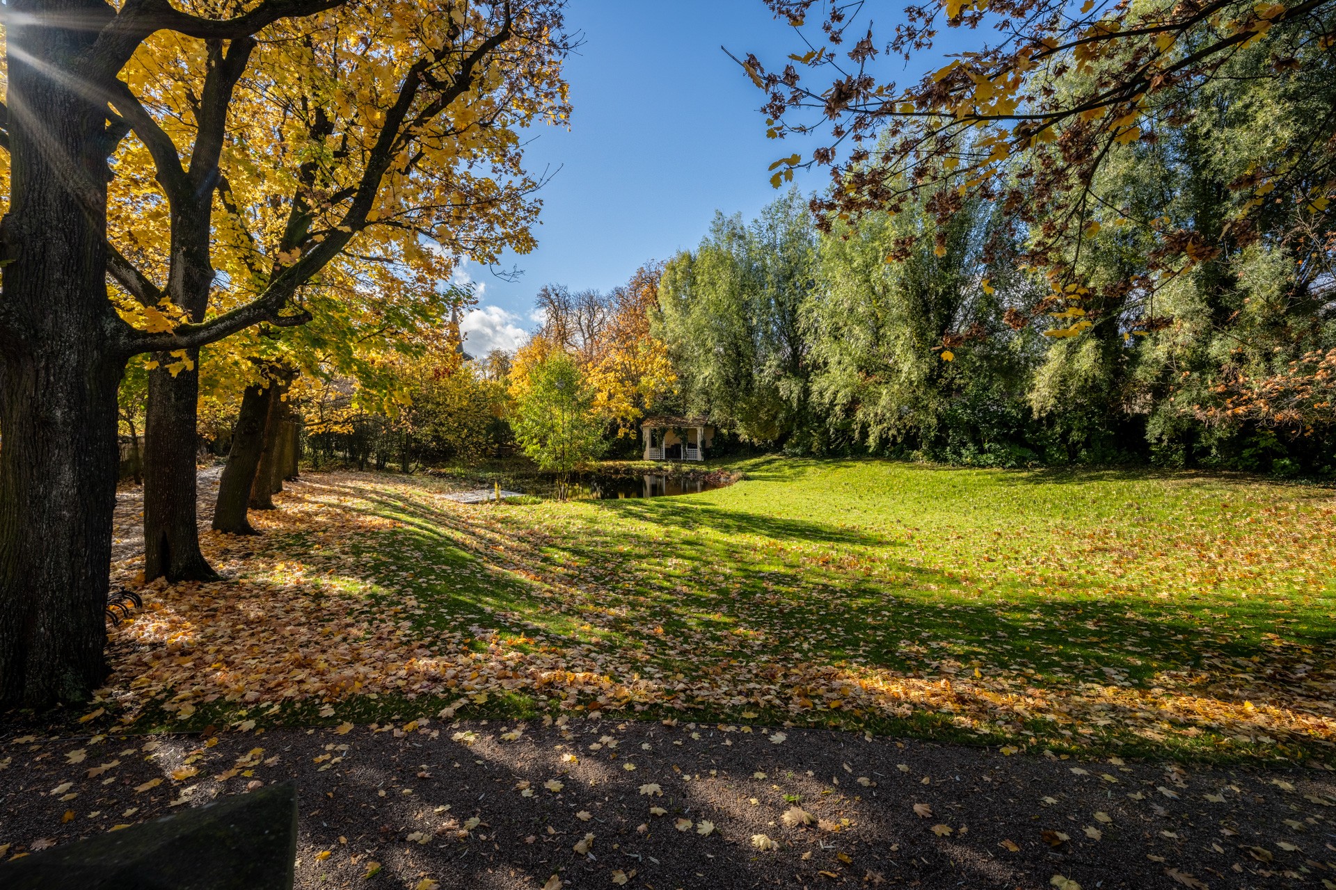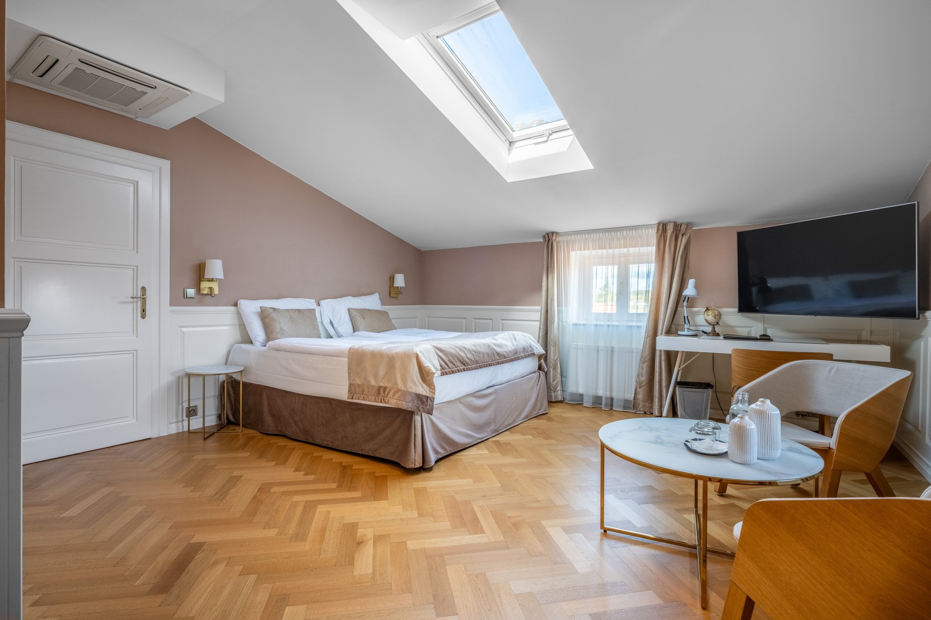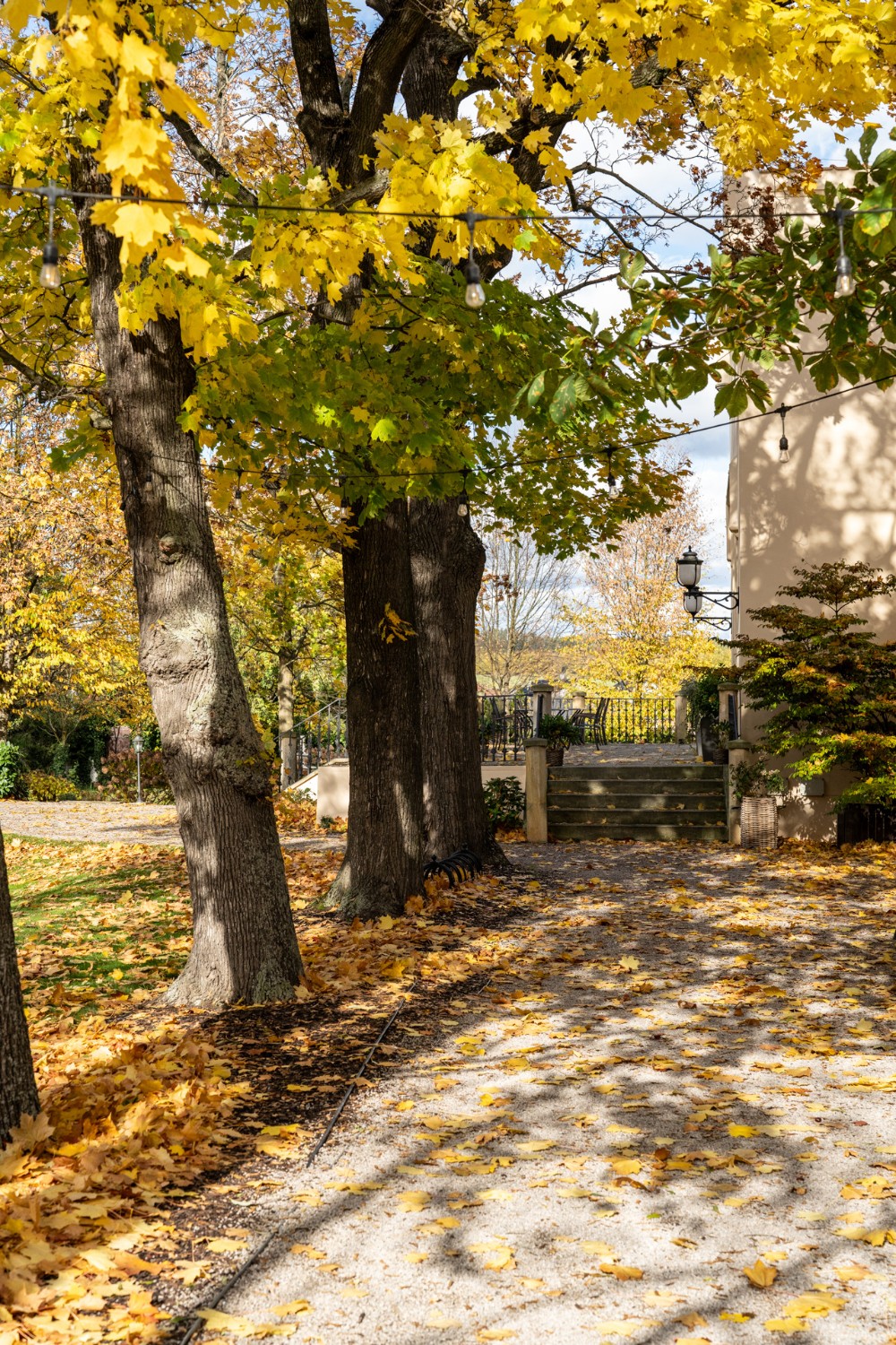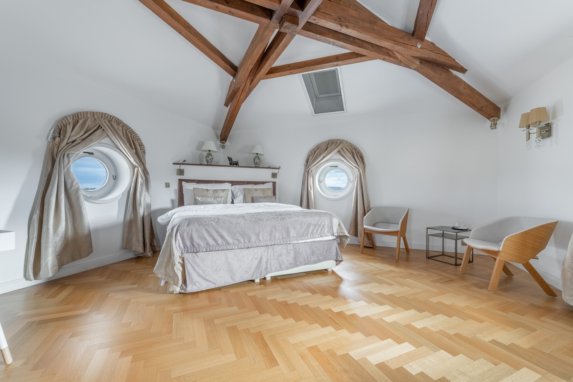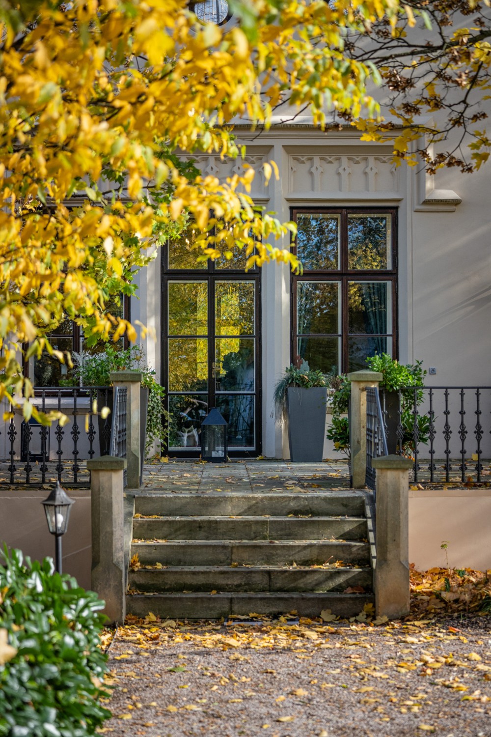 O coração desta magnífica residência, com uma área útil de 1.585 m², apresenta um salão principal nobre com lareira, criando uma atmosfera majestosa e acolhedora, ideal para encontros familiares e sociais. O salão liga-se a um terraço que se prolonga suavemente até ao jardim do castelo (4.253 m²), com lago (1.536 m²), gazebo e fonte. O jardim está dividido em duas partes: a primeira, em estilo inglês romântico, cujo aparente arranjo aleatório das plantas é, na realidade, uma composição cuidadosamente planeada; a segunda, concebida em estilo francês formal e simétrico, transmitindo elegância e ordem.