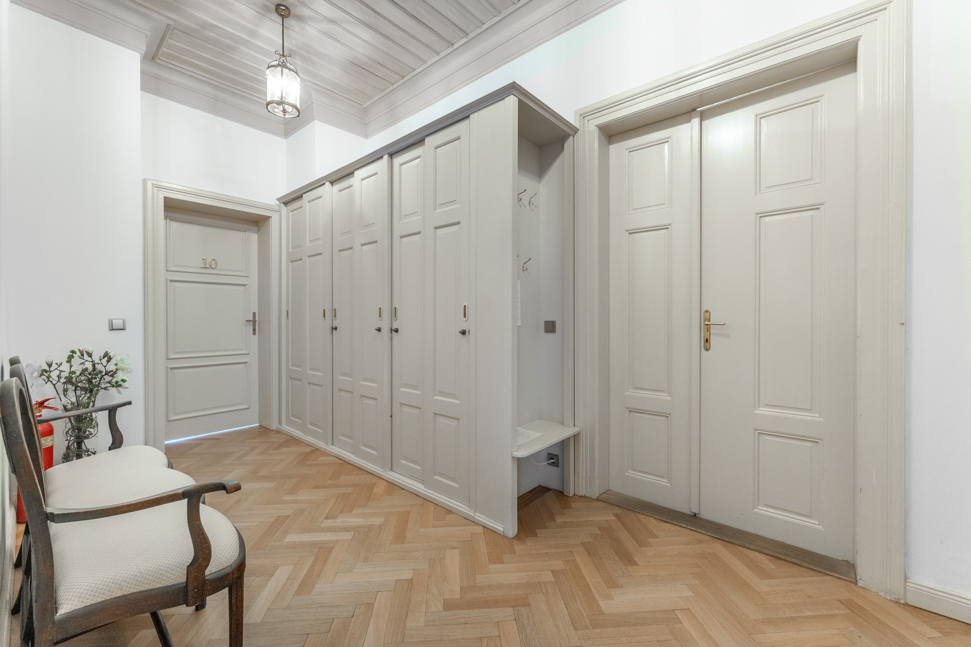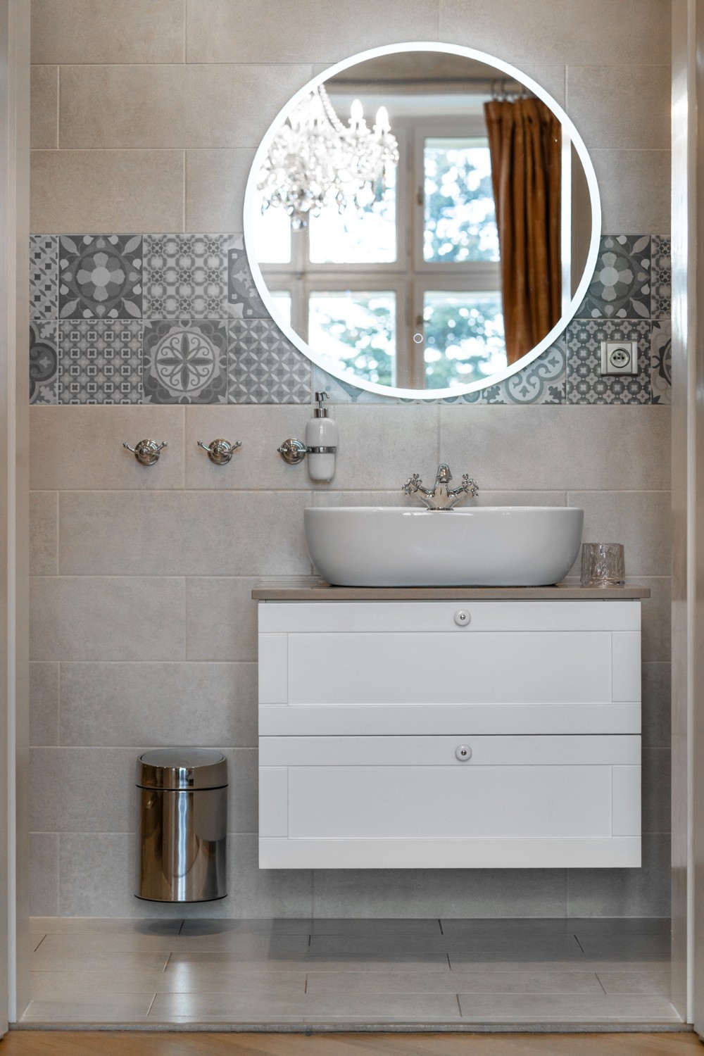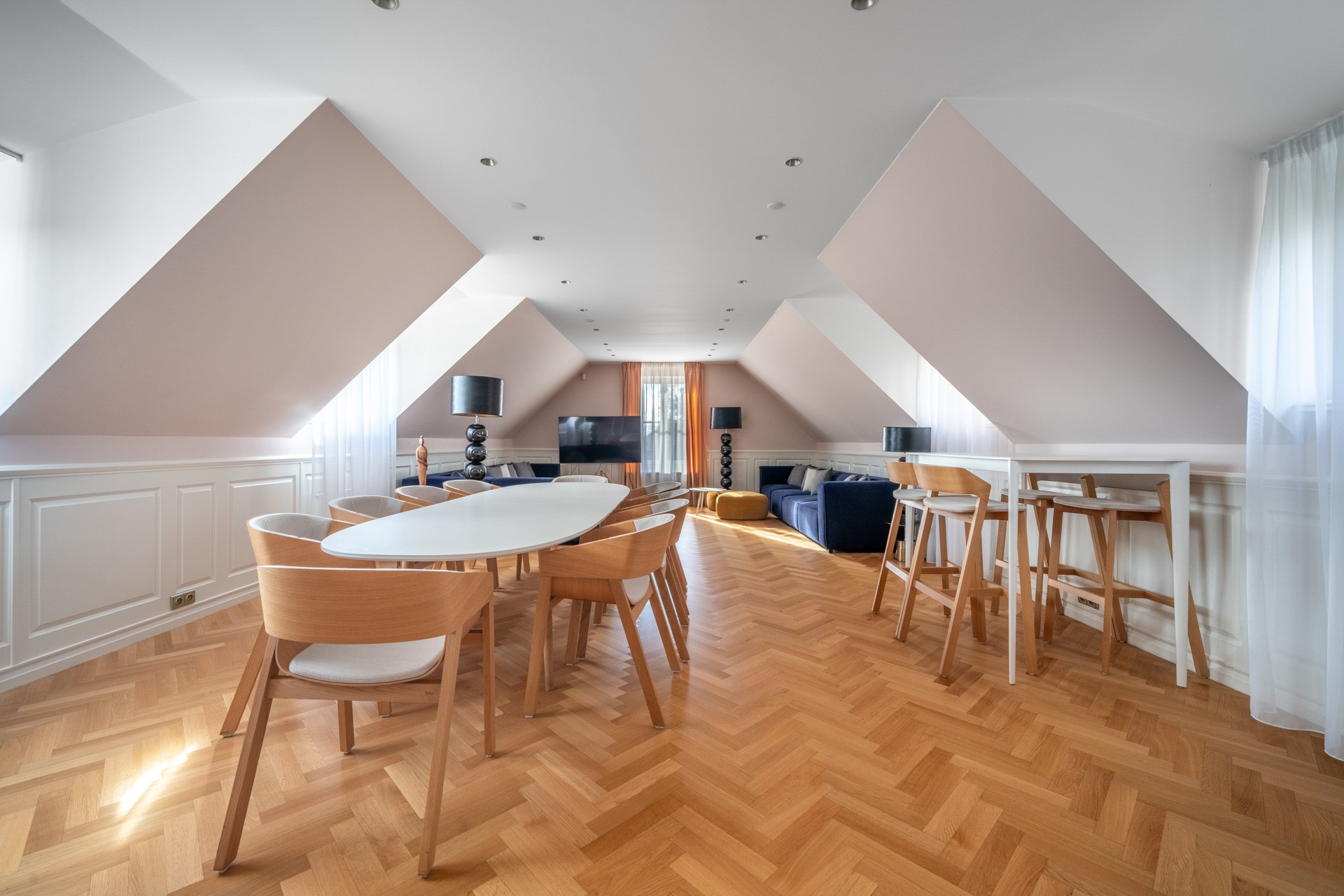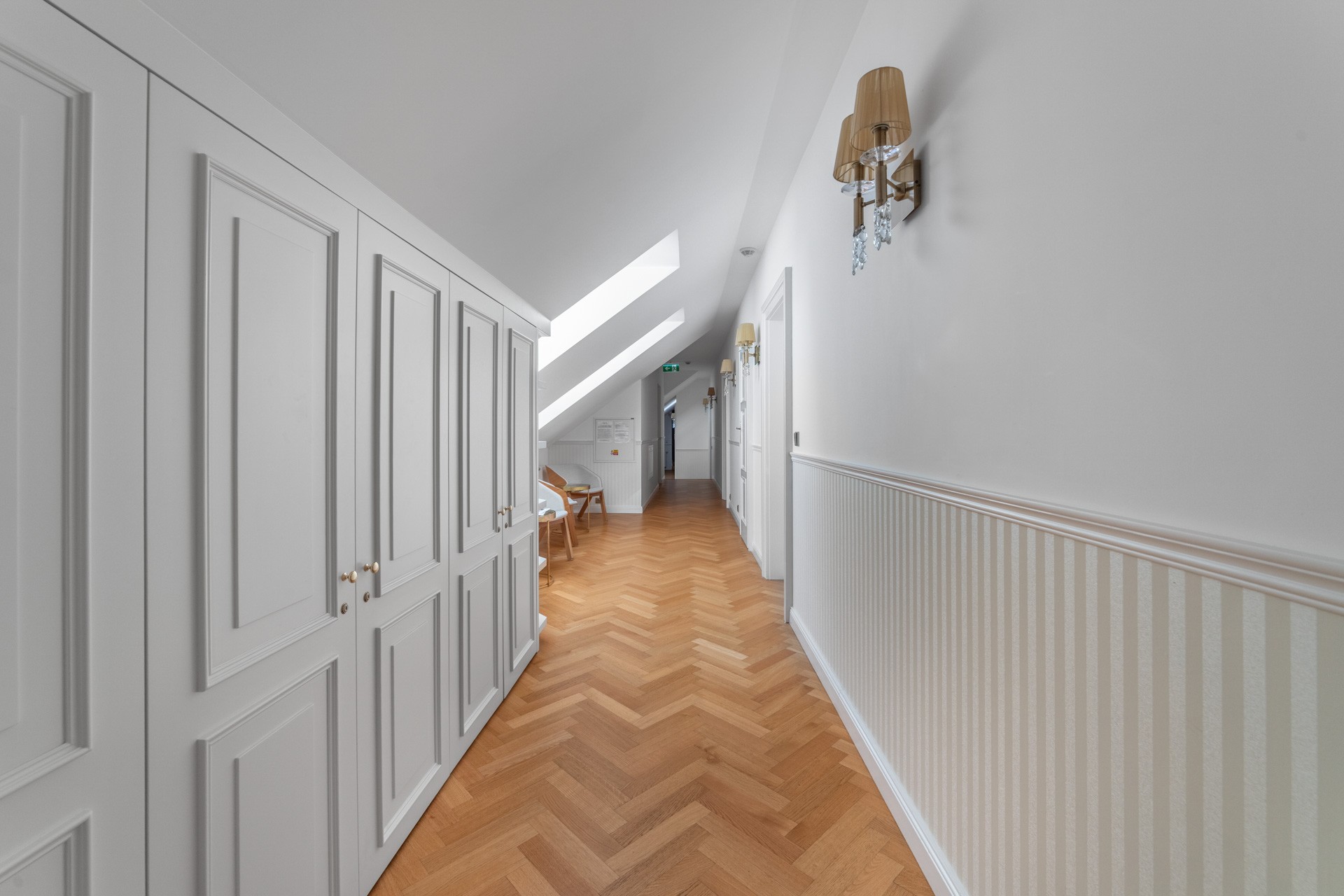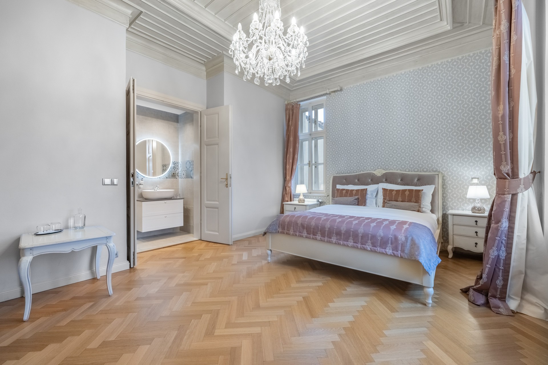 O coração desta magnífica residência, com uma área útil de 1.585 m², apresenta um salão principal nobre com lareira, criando uma atmosfera majestosa e acolhedora, ideal para encontros familiares e sociais. O salão liga-se a um terraço que se prolonga suavemente até ao jardim do castelo (4.253 m²), com lago (1.536 m²), gazebo e fonte. O jardim está dividido em duas partes: a primeira, em estilo inglês romântico, cujo aparente arranjo aleatório das plantas é, na realidade, uma composição cuidadosamente planeada; a segunda, concebida em estilo francês formal e simétrico, transmitindo elegância e ordem.