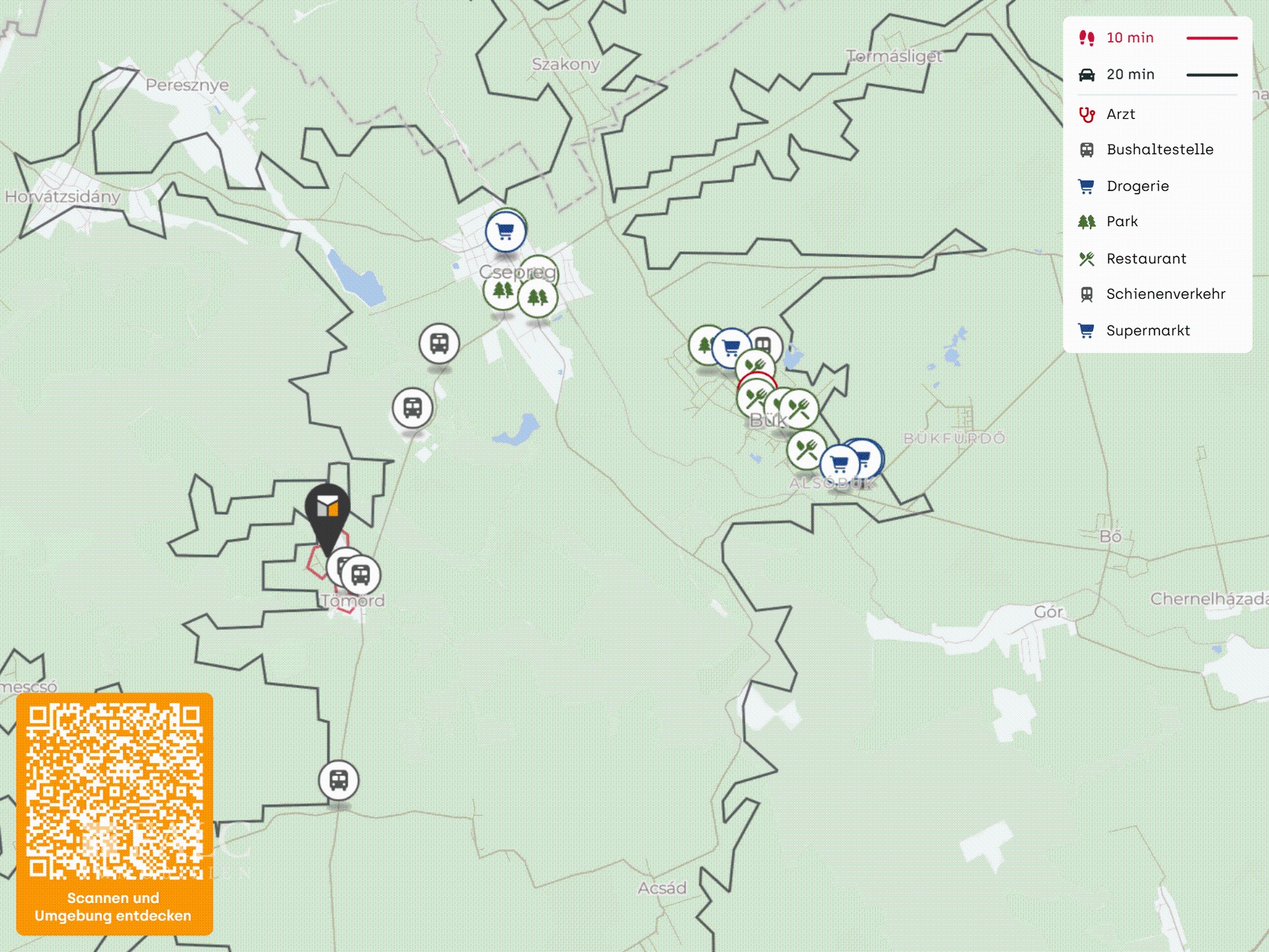 Localização: Tömörd, Vas vármegye, oeste da Hungria. A 9 km da fronteira com a Áustria, estância termal de Bük nas proximidades.
