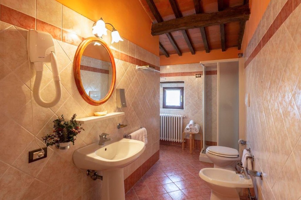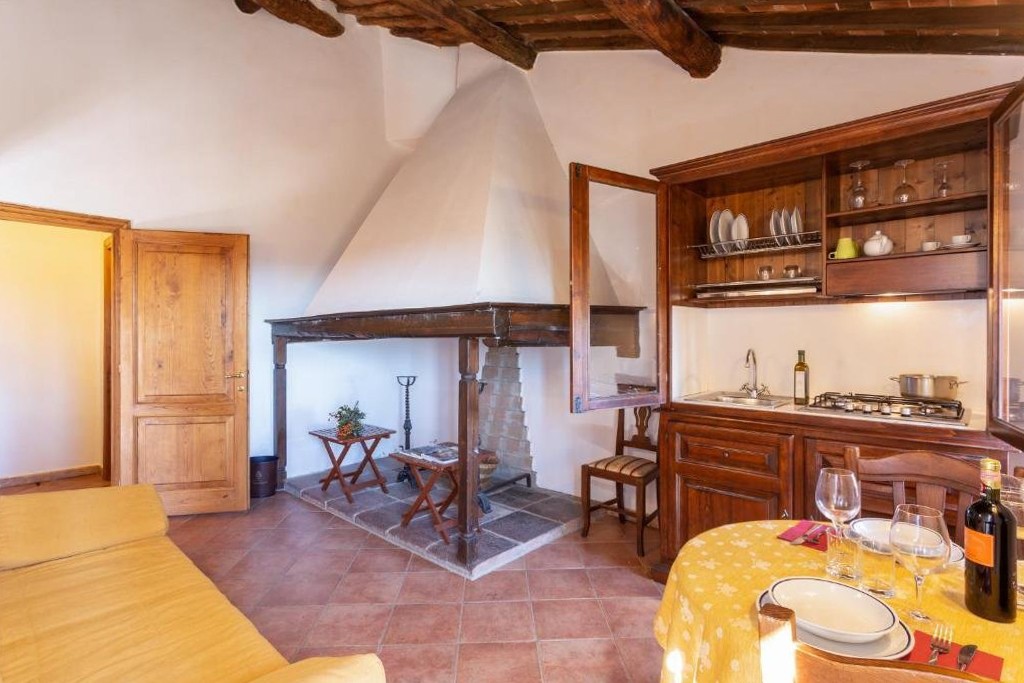 Todas as estruturas encontram-se em excelente estado. A restauração preservou os elementos originais das casas rurais toscanas (pedras à vista, vigas, tijolos, escadas em arenito, ferragens restauradas) e integrou sistemas modernos, eficiência energética e conforto contemporâneo. Os quartos da villa, casa de campo e celeiro estão equipados com tecidos naturais, mobiliário sob medida, iluminação ambiente e acabamentos de alta qualidade.