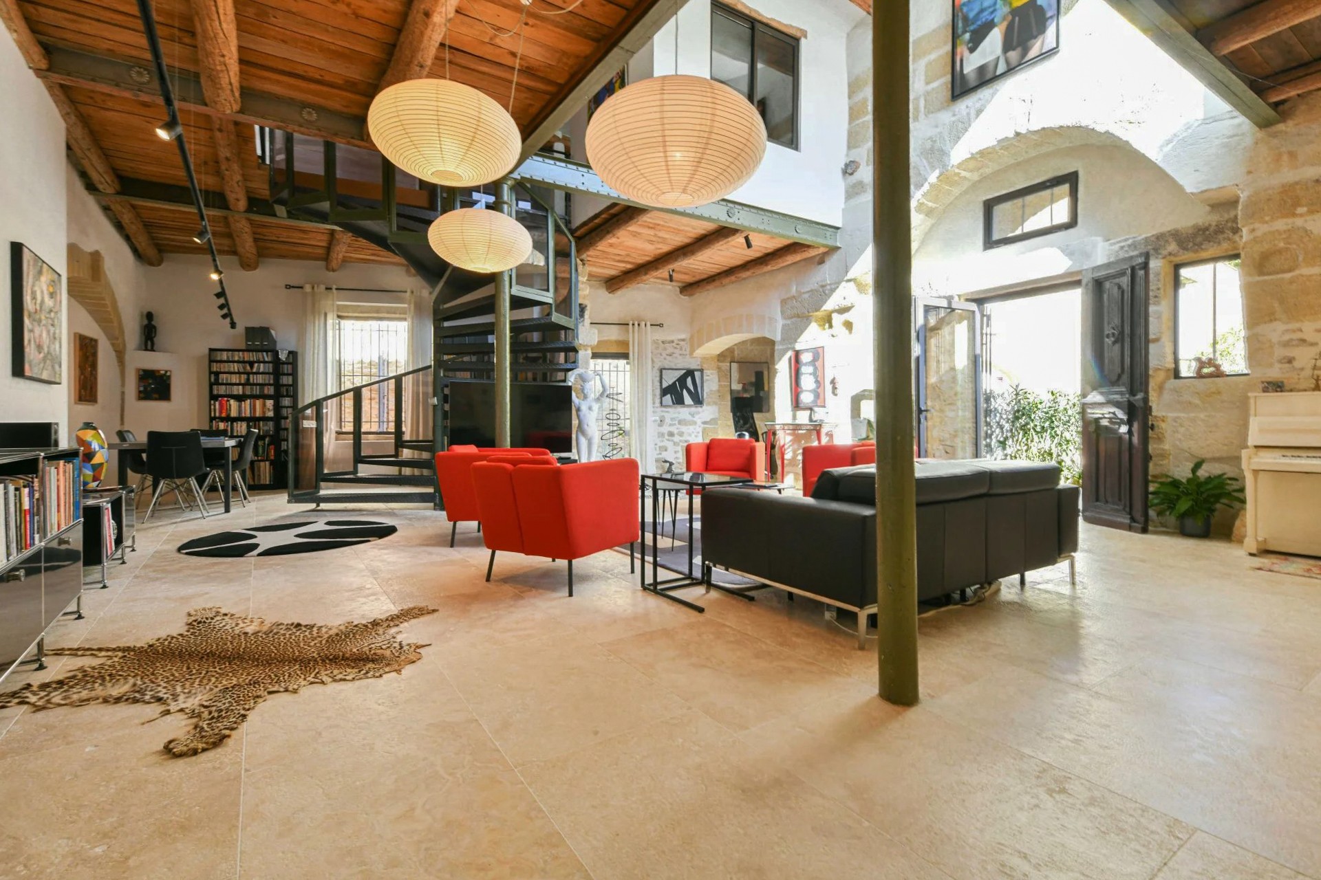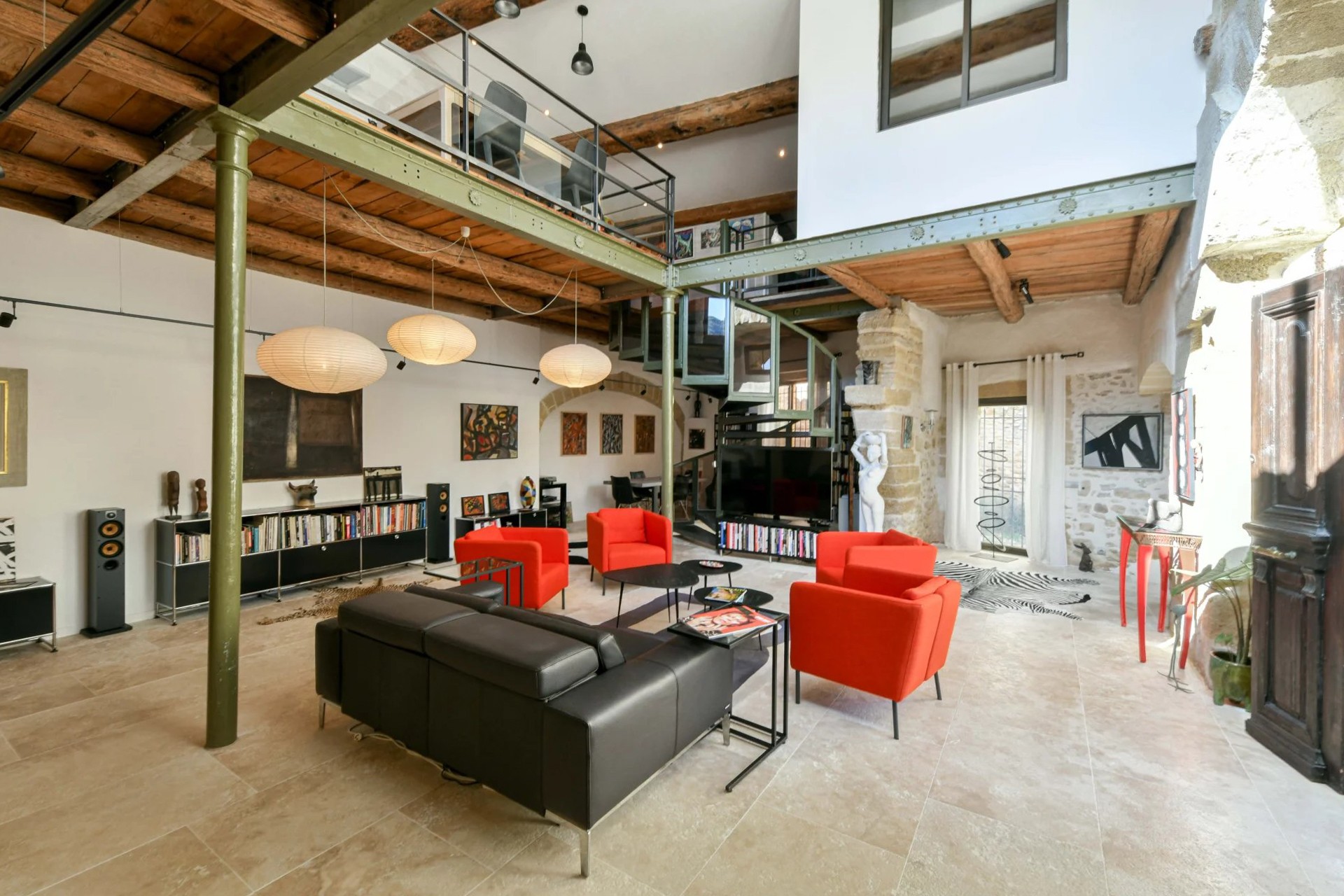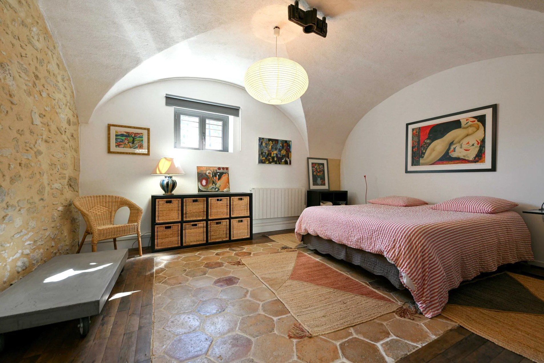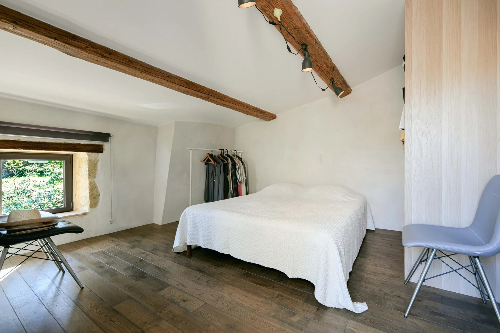 Um antigo lagar de azeite convertido em habitação, localizado a cerca de 17,5 km de Uzès. O edifício desenvolve-se em dois pisos e mantém os volumes característicos da sua arquitetura industrial original.