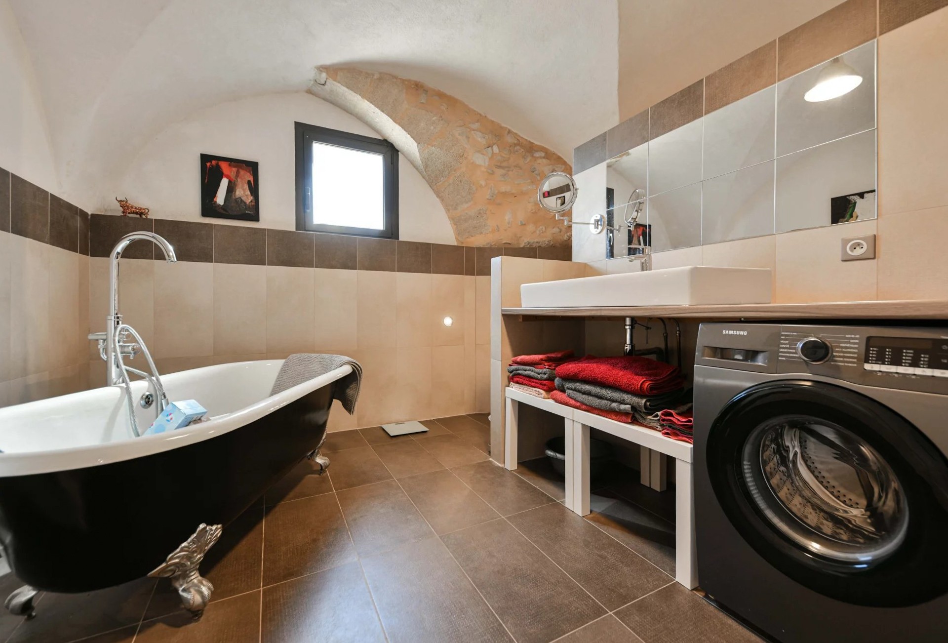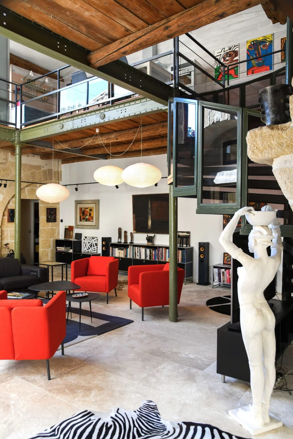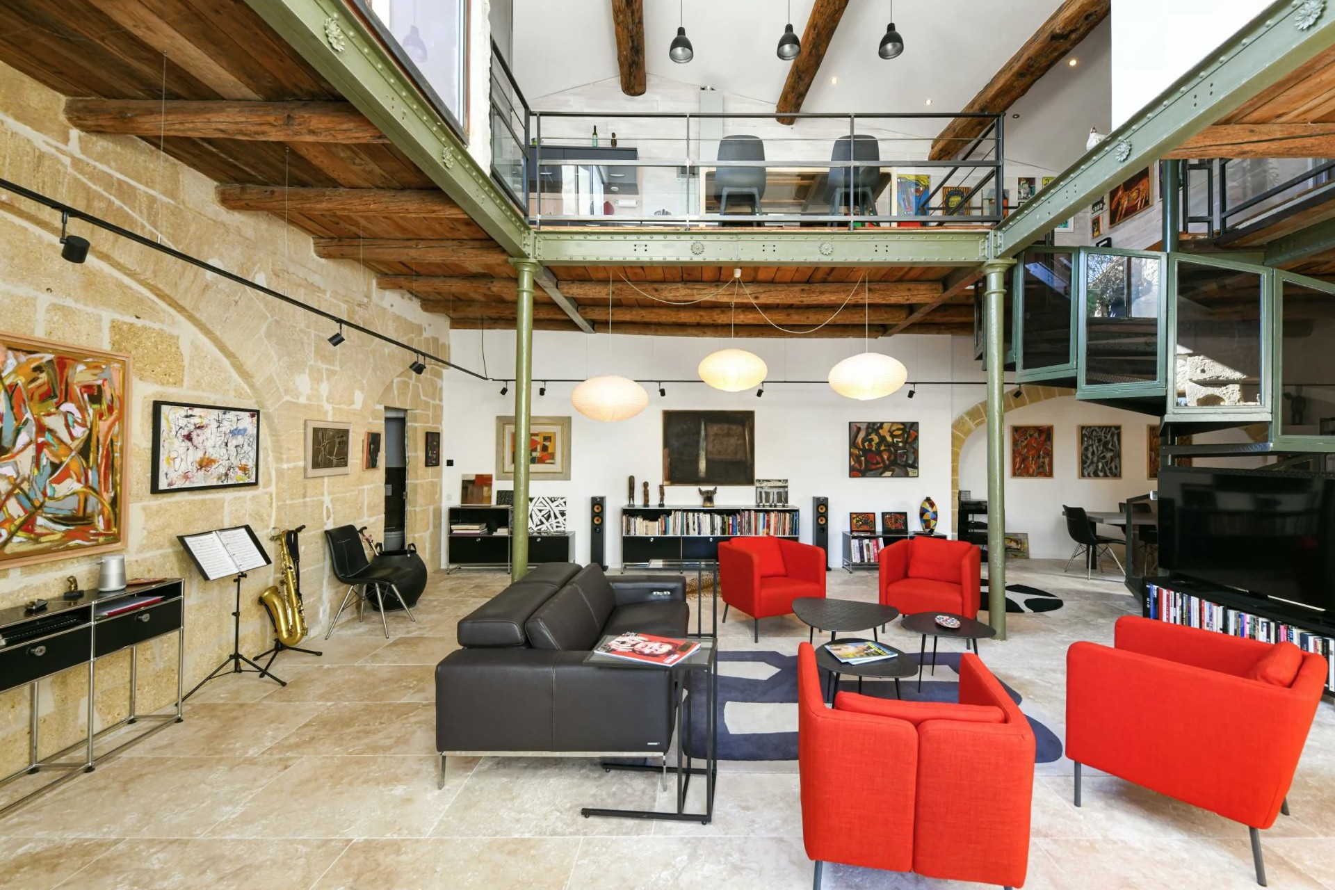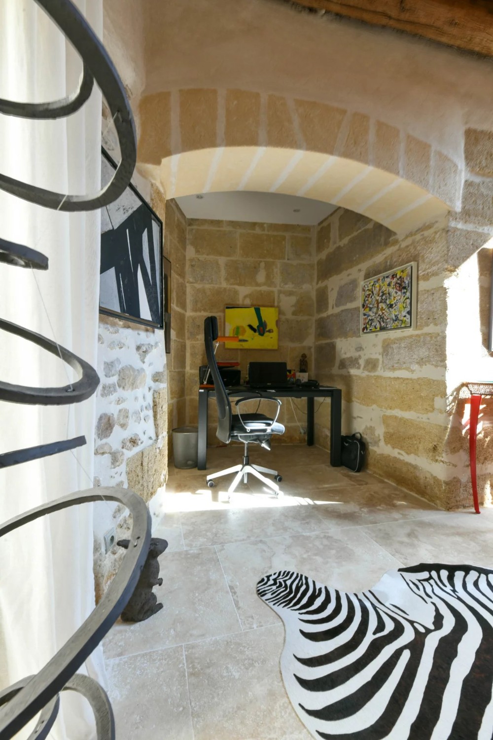 Um antigo lagar de azeite convertido em habitação, localizado a cerca de 17,5 km de Uzès. O edifício desenvolve-se em dois pisos e mantém os volumes característicos da sua arquitetura industrial original.