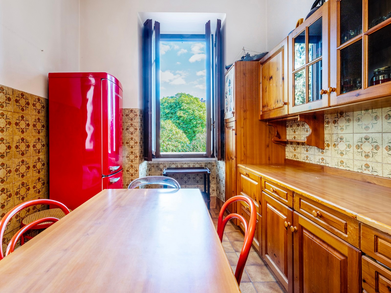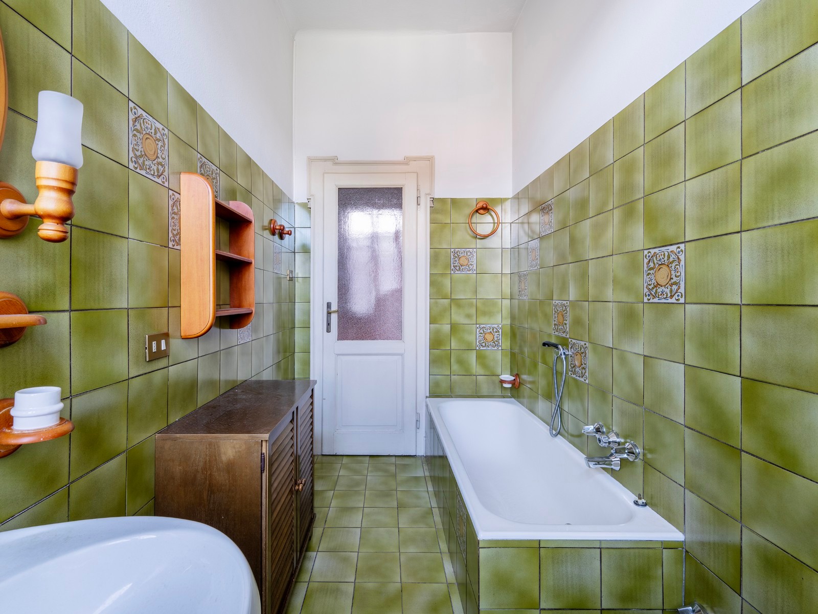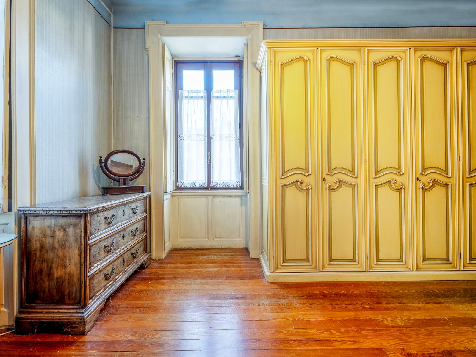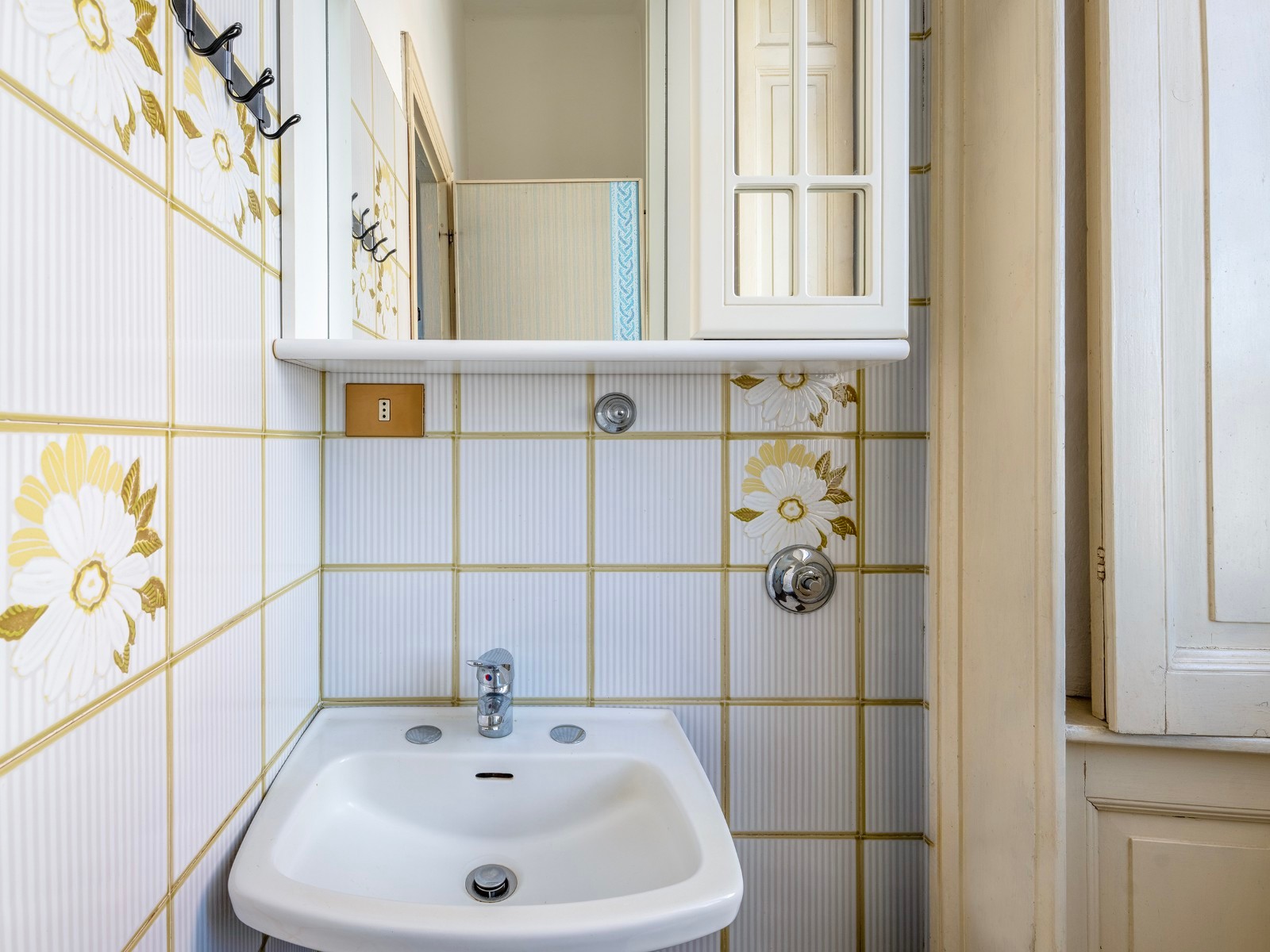 A casa conserva detalhes arquitetónicos e materiais originais, permitindo uma renovação conservadora. A entrada principal apresenta-se de forma representativa.